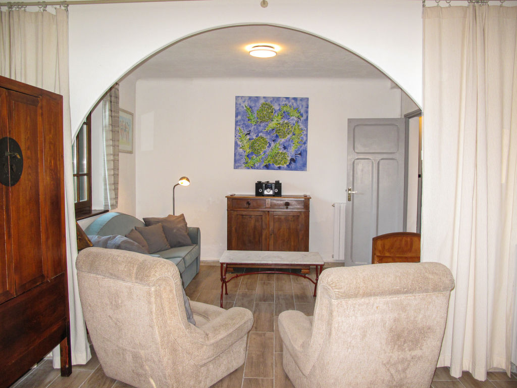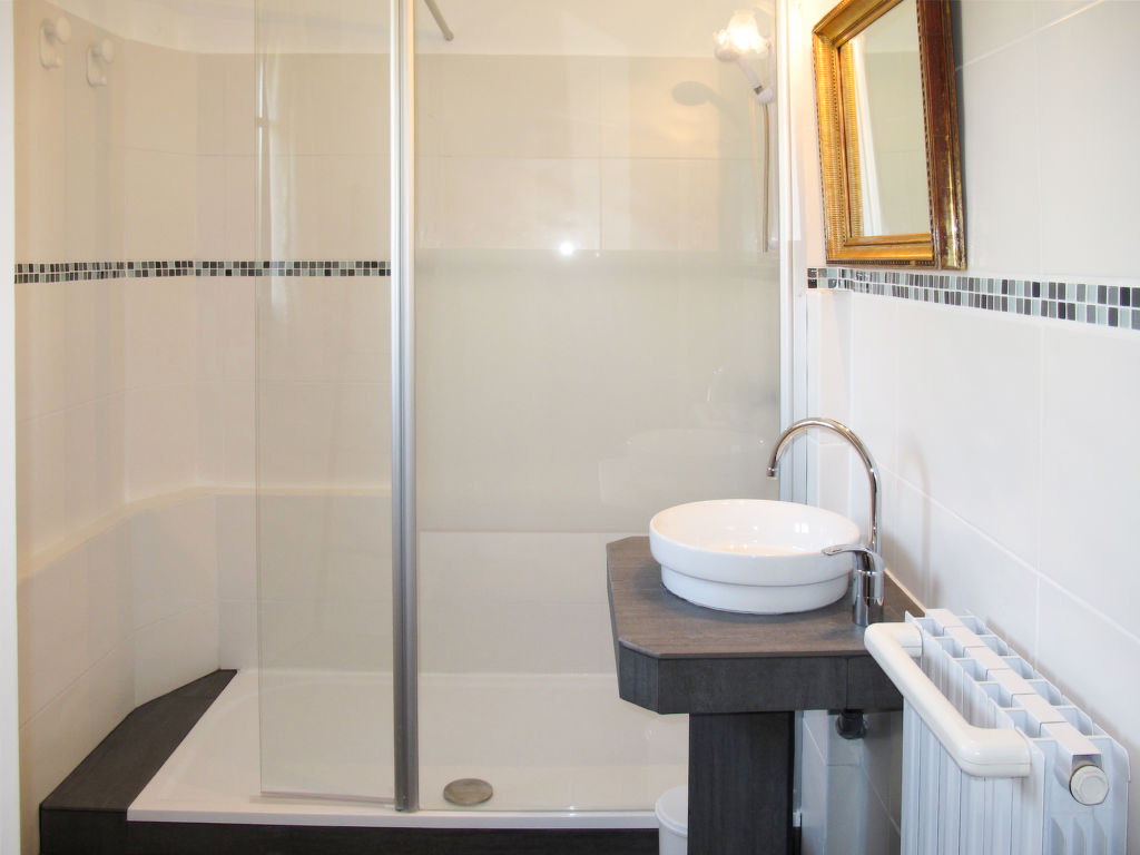 2½-Zimmer-Wohnung, Erdgeschoss, ca. 80 m². Wohn-/Schlafraum mit Sitzcouch, 2 Sesseln, durch Vorhang abgetrennter Schlafbereich mit 2 Einzelbetten und Kamin (nur Dekoration). Küche (2 Ceranfelder, Mikrowelle, Geschirrspüler, Kühl-/Gefrierkombination, Kaffeemaschine, Wasserkocher, Toaster) mit Essplatz (Eckbank). Schlafzimmer mit franz. Bett (1,60 m breit). Dusche. Sep.WC. Inserat einer Privatperson nach Artikel 155, IV, CGI.