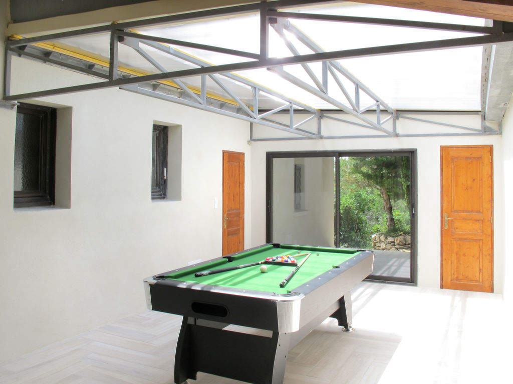 Das zur Saison 2017 renovierte Ferienhaus steht ländlich, inmitten der typischen Garrigue-Landschaft, ca. 500 m von der Ortsmitte von St. Hilaire d'Ozilhan mit Einkaufsmöglichkeit entfernt. Supermarkt in Remoulins, 5 km. Vom Haus direkter Zugang zu Wanderwegen. Ca. 5000 m² großes, teilabgeschlossenes, naturbelassenes Grundstück mit Blick auf das Dorf Castillon du Gard (4 km) und in der Ferne den Pont du Gard. Der Pool (10 x 5 m, 0,40-1,80 m tief, 01.04.-30.09.) mit Terrasse, Außendusche und 8 Sonnenliegen liegt auf dem Grundstück der Besitzer (ca. 50 m), steht den Gästen des Ferienhauses jedoch zur alleinigen Verfügung. Am Ferienhaus 3 Terrassen, davon 2 überdacht. Gartenmobiliar, 8 Liegestühle, Sitzgruppe und Gasgrill. Großer Aufenthaltsraum mit Billard und Tischfußball. Tischtennisplatte. 4 Parkmöglichkeiten auf dem Grundstück. Gepflegte, geschmackvolle Einrichtung. Fliesen- und Steinboden. Sat-TV (deutsche Programme), 2x DVD, Stereoanlage, Radio. Internetzugang (WLAN, inklusive). Waschmaschine, Trockner, Bügeleisen/-brett. Im Obergeschoss (Flur) und im Aufenthaltsraum Klimaanlage. Elektroheizung.