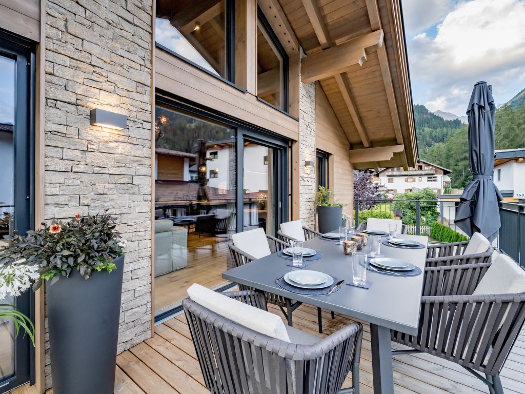 "Alpenchalet", 7-Zimmer-Chalet auf 2 Stockwerken. Objekt geeignet für 8 Erwachsene. Sehr modern und luxuriös eingerichtet: Eingang. Wohn-/Esszimmer mit Essecke und TV. Ausgang zum Garten. 2 Doppelzimmer, jedes Zimmer mit Dusche/WC und TV. Offene Küche (Backofen, Geschirrspüler, 4 Glaskeramikherd Platten, Toaster, Wasserkocher, Mikrowelle, elektrische Kaffeemaschine). Obergeschoss: 1 Doppelzimmer mit Dusche/WC und TV. 1 Doppelzimmer mit Bad/Dusche/WC, Doppelwaschbecken und TV. Galerie mit offenem Kamin und Bibliothek. Ausgang zur Terrasse. Grosses Esszimmer mit Panoramafenster mit TV. Ausgang zur Terrasse. Küche (Backofen, Geschirrspüler, Toaster, Wasserkocher, Mikrowelle, Tiefkühler, elektrische Kaffeemaschine). Sep. WC. Grosse Terrasse 60 m2. Terrassenmöbel. Schöne Sicht auf die Landschaft. Zur Verfügung: Internet (Wireless LAN, gratis). Parkplatz, Garage. Bitte beachten: Nichtraucher-Unterkunft. Ötztal PremiumCard included in summer (https://www.oetztal.com/de/sommer/oetztal-premium-card/oetztal-premium-card.html) Dogs are allowed on request. (Extra).