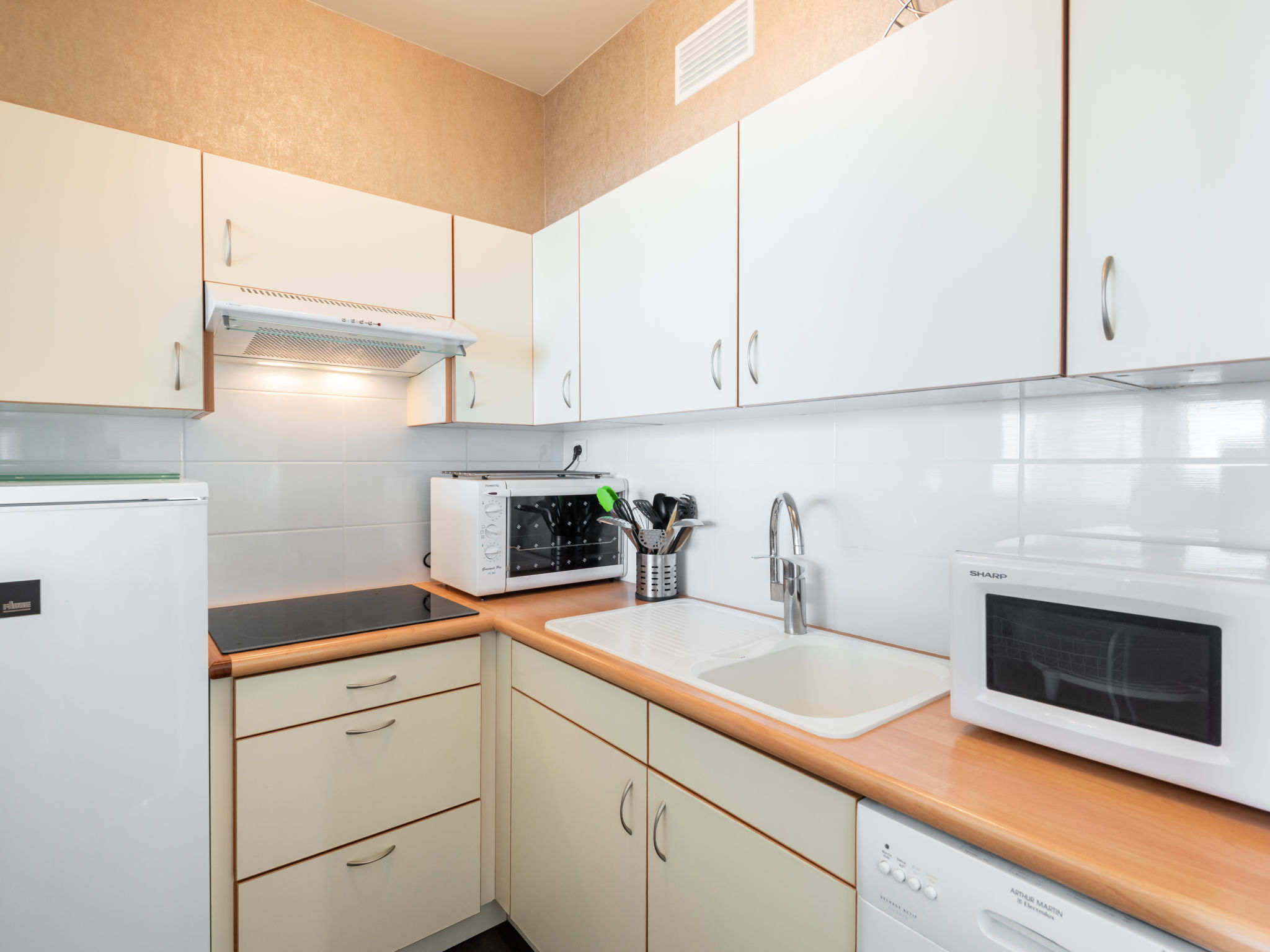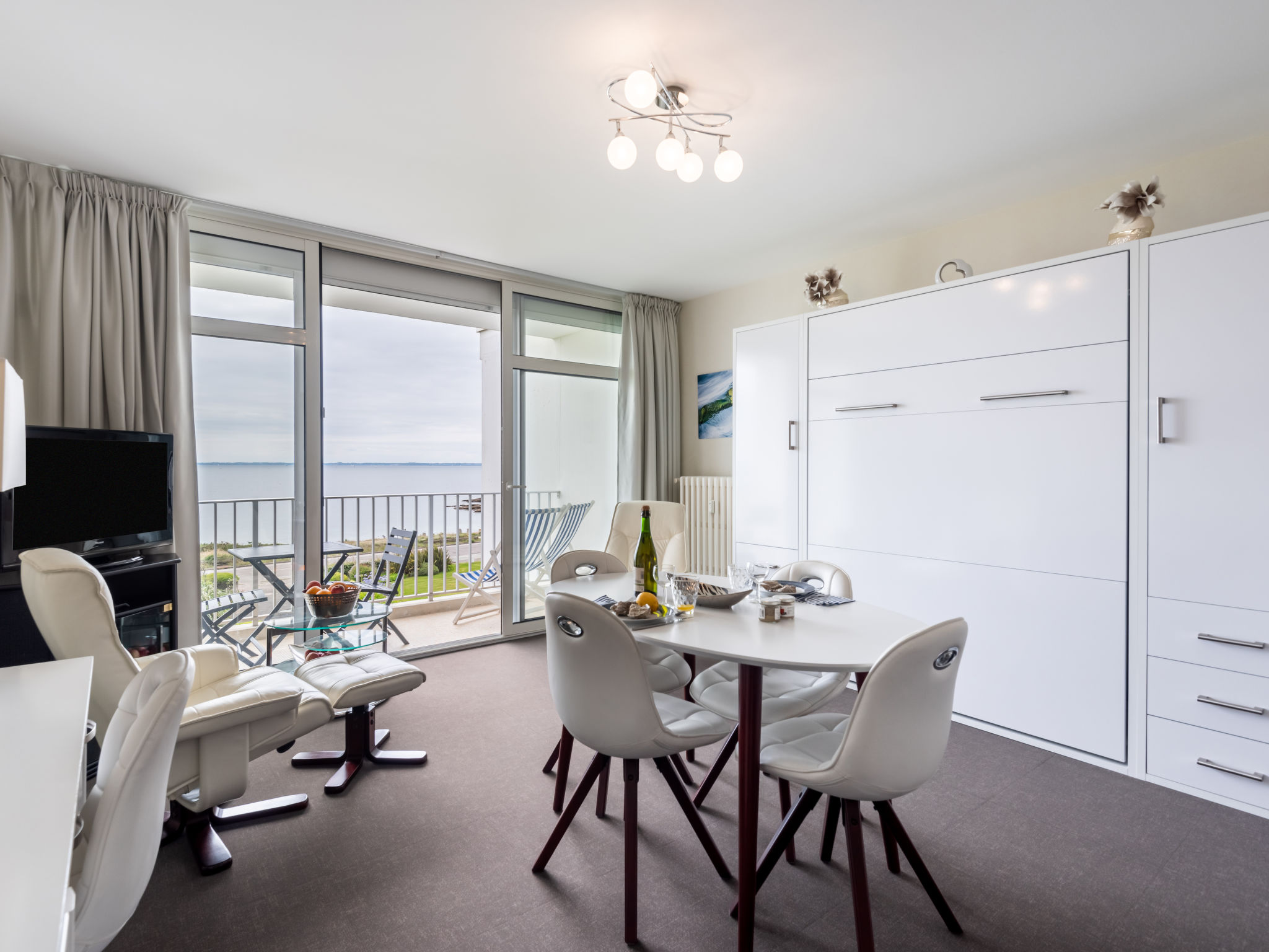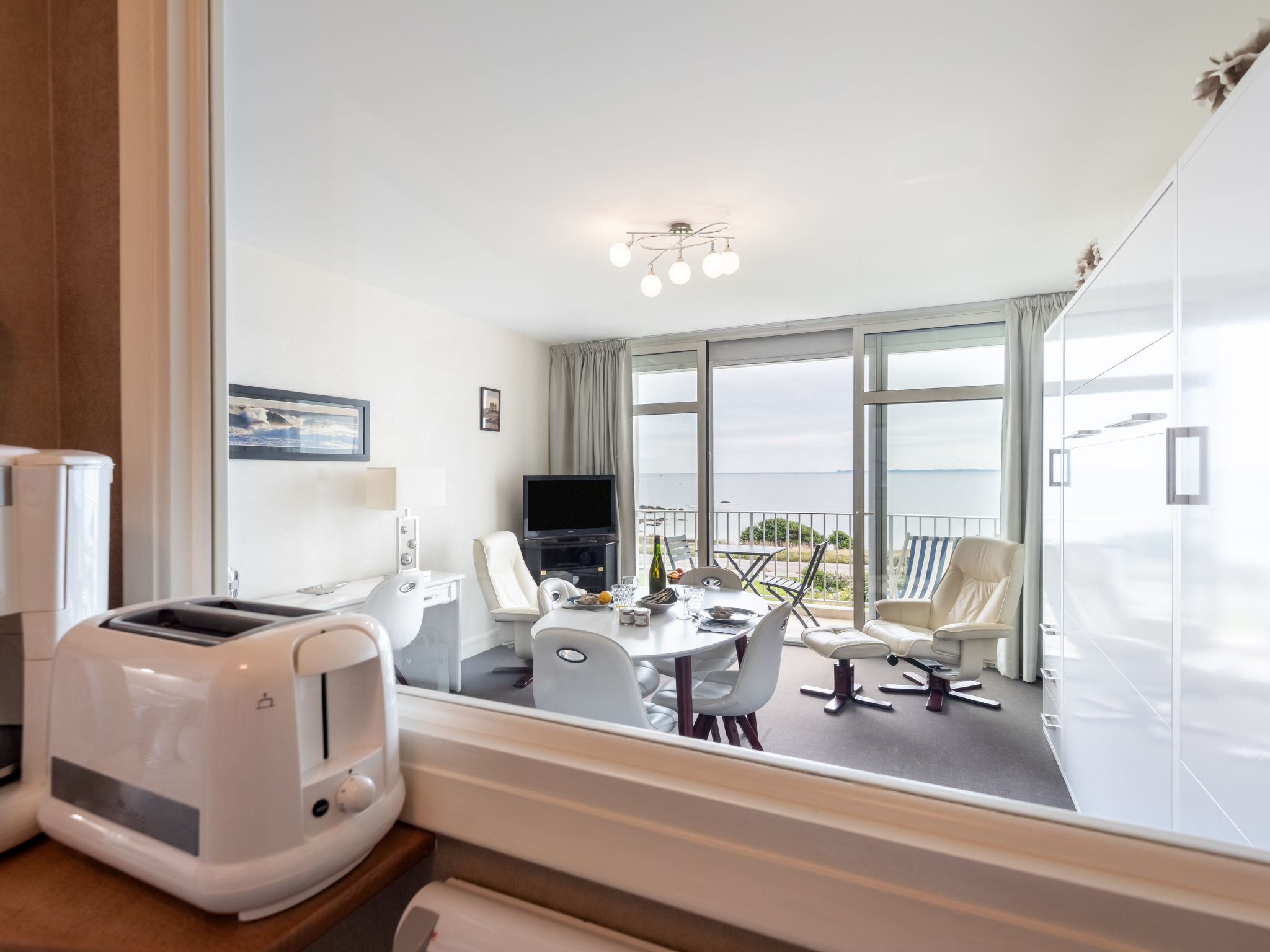 1-Zimmer-Wohnung 33 m2 im 2. Stock. Komfortabel eingerichtet: Wohn-/Esszimmer mit 1 Doppelwandschrankbett (1 x 140 cm, Länge 190 cm), TV (Flachbildschirm). Ausgang zum Balkon. Küche (Geschirrspüler, 3 Induktionskochplatten, Wasserkocher, elektrische Kaffeemaschine). Dusche/WC. Heizung. Balkon. Balkonmöbel. Schöne Sicht auf das Meer. Zur Verfügung: Waschmaschine. Internet (Wireless LAN, gratis). Parkplatz. Bitte beachten: Rauchmelder. Inserat einer Privatperson nach Artikel 155, IV, CGI.