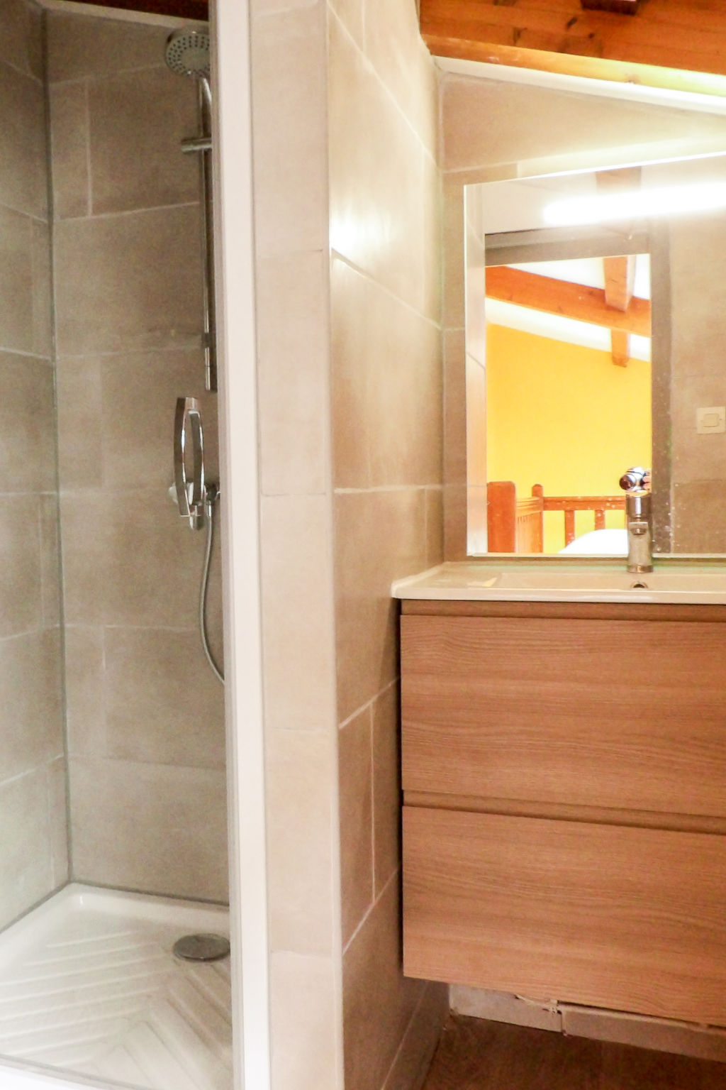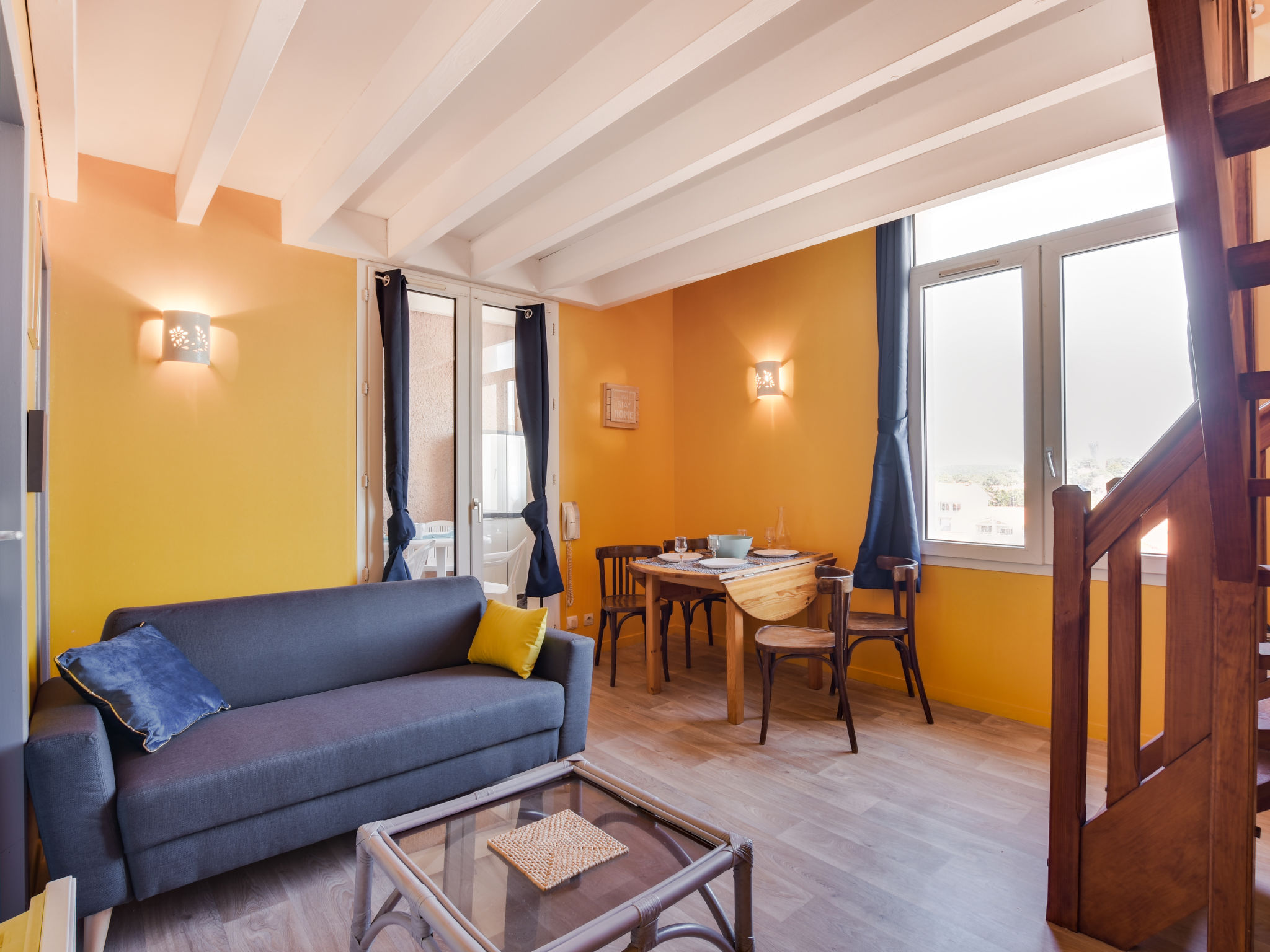 1-Zimmer-Studio 35 m2 auf 2 Stockwerken im 1. Stock. Objekt geeignet für 2 Erwachsene + 2 Kinder. Offenes kleines Wohn-/Esszimmer 17 m2 mit TV (Flachbildschirm). Ausgang zur Loggia. Schlafnische mit 1 x 2 Etagenbetten (80 cm, Länge 190 cm). Kochnische (2 Kochplatten, Mikrowelle, elektrische Kaffeemaschine). Sep. WC. Obergeschoss: abgeschrägte, offene Galerie mit 2 Betten (90 cm). Dusche. Terrassenmöbel, Liegestühle (2), Loggia. Eingeschränkte Sicht auf das Meer. Bitte beachten: Maximal 1 Haustier/Hund erlaubt. TV nur FR. Rauchmelder. Inserat einer Privatperson nach Artikel 155, IV, CGI.