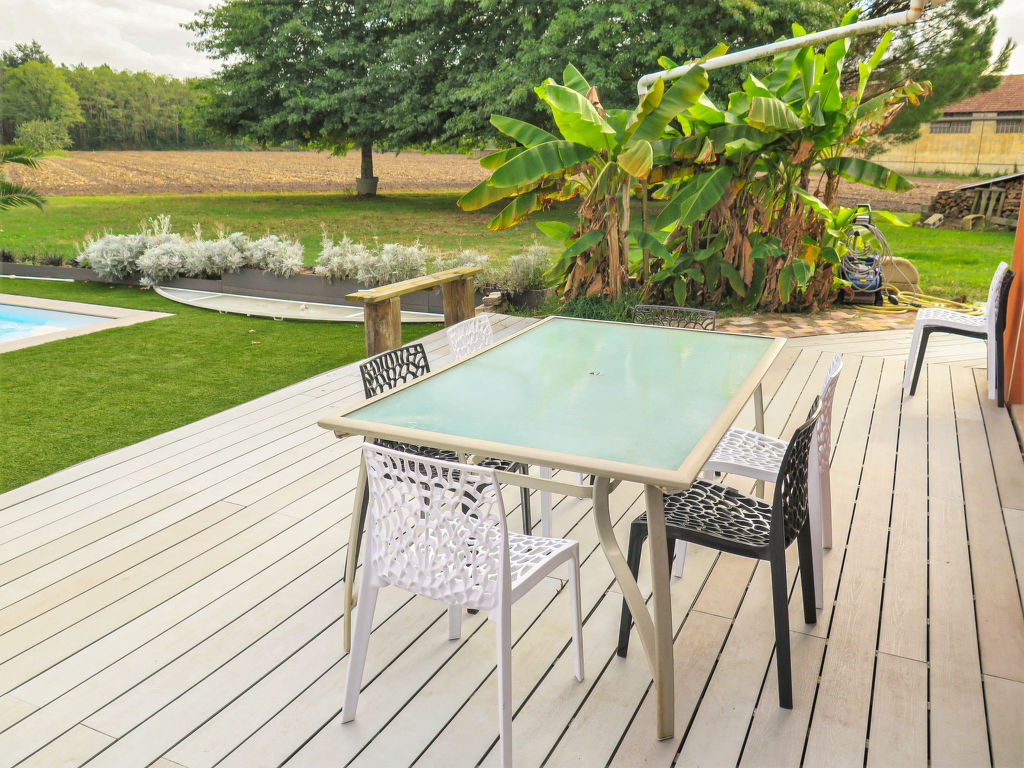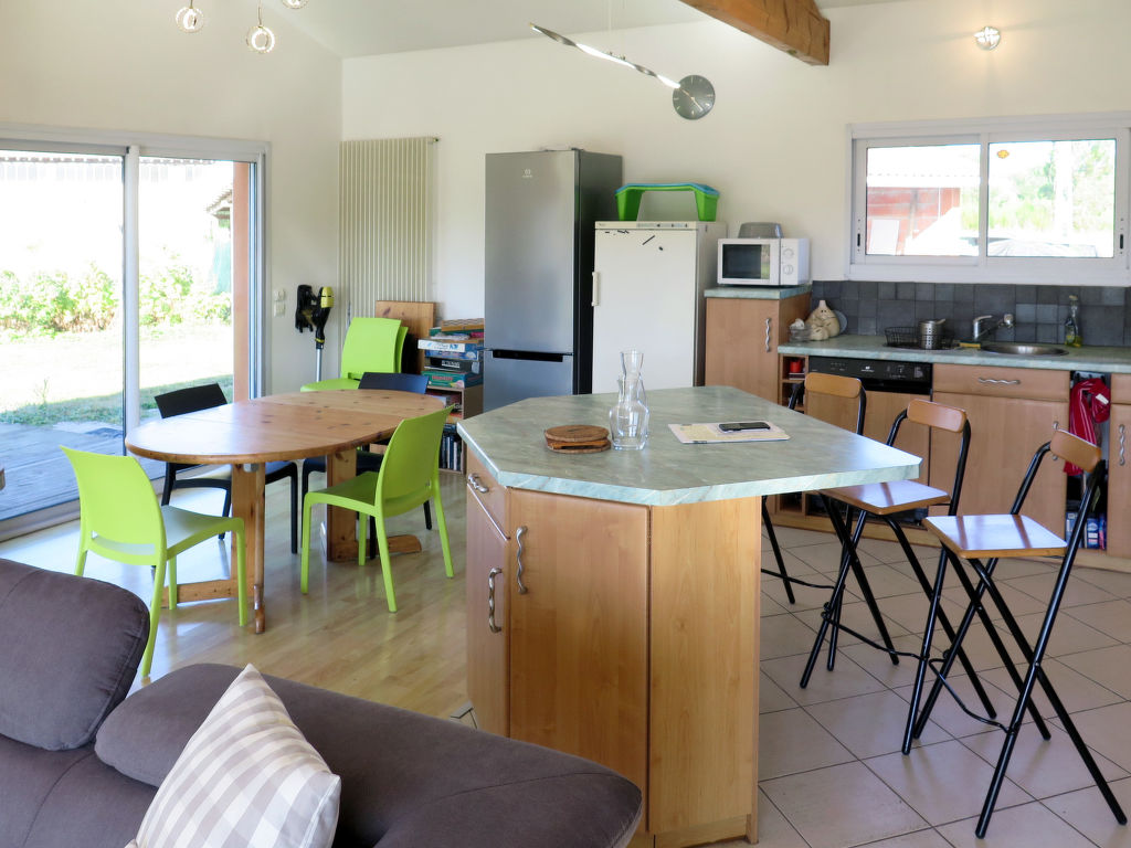 Das Ferienhaus MAROYE steht angrenzend an das Haus des Vermieters, in ländlicher Umgebung, 4 km von der Ortsmitte von Soustons mit Einkaufsmöglichkeiten entfernt. Zum Strand am See von Soustons 4 km, zu den Atlantikstränden Soustons-plage und Vieux-Boucau 11,5 km. Golf in Seignosse 11 km. Ca. 1000 m² großes, offenes Grundstück mit Kunstrasen und Blick ins Grüne. Große umlaufende Holzterrasse mit Markise, Sitzgruppe (Polyrattan), Gartenmöbeln, transportablem Grill und Sonnenschirm. Pool (10 x 4 m, 1,40 m tief, gesamte Saison geöffnet, Salzelektrolyse) mit mobiler Überdachung, Außendusche und 8 Sonnenliegen. Billard im Haus. 2 überdachte Parkmöglichkeiten auf dem Grundstück. Angenehme, feriengerechte Einrichtung. Fliesen-und Laminatböden. Sat-TV (deutsche Programme), Radio. Internetzugang (WLAN, inklusive). Waschmaschine im Abstellraum. Bügeleisen/-brett. Elektroheizung, Klimaanlage mit Kühl-/Heizfunktion. Hinweis: Rauchen ist im Haus nicht gestattet.