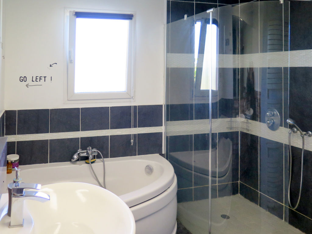 5-Zimmer-Haus, ca. 120 m². Wohnraum mit Sitzgruppe, Kamin, Essplatz und offener Küche (3 Induktionsfelder, Backofen, Mikrowelle, Geschirrspüler, Kühl-/Gefrierkombination, Kaffeemaschine, Kaffeepadmaschine, Wasserkocher, Toaster) mit Essplatz für 3 Personen (Barhocker), Terrassenausgänge. Schlafzimmer mit franz. Bett (1,60 m breit), Ausgang ins Freie. 3 Schlafzimmer, jeweils mit franz Bett. Bad/Dusche/Doppelwaschbecken. 2x sep.WC. Inserat einer Privatperson nach Artikel 155, IV, CGI. 40310000080XT