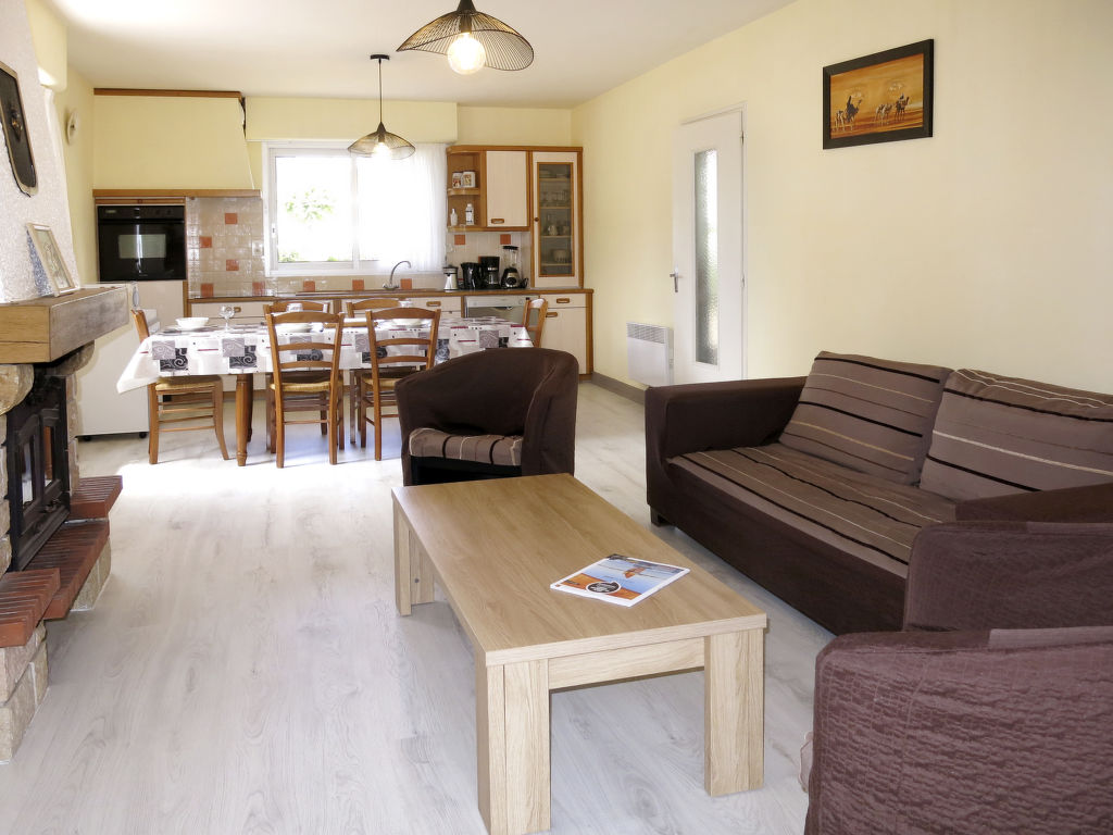 Typisch bretonisches Ferienhaus auf der Halbinsel Rhuys im Ortsteil Kerfontaine, 5 km südlich von Sarzeau. Das an ein Nachbarhaus angrenzende Ferienhaus steht rückversetzt von der kleinen, zum 300 m entfernten Strand führenden Straße (Plage de Kerfontaine). Nächste Einkaufsmöglichkeit in St. Jacques, 1,5 km (Juli/August). Geschäfte, Supermarkt und Restaurants in Sarzeau. Teilweise von hoher Hecke umgebenes, ca. 400 m² großes Grundstück. Hinter dem Haus Rasenfläche, große überdachte Terrasse mit Gartenmöbeln und gemauertem Grill. Parkmöglichkeit auf einem Privatweg beim Haus. Feriengerechte, teilweise rustikale Einrichtung. Fliesen- und Linoleumböden. TV. Internetzugang (WLAN, inklusive). Waschmaschine. Bügeleisen/-brett. Elektroheizung.