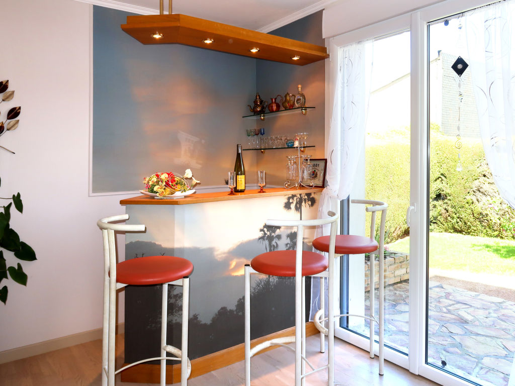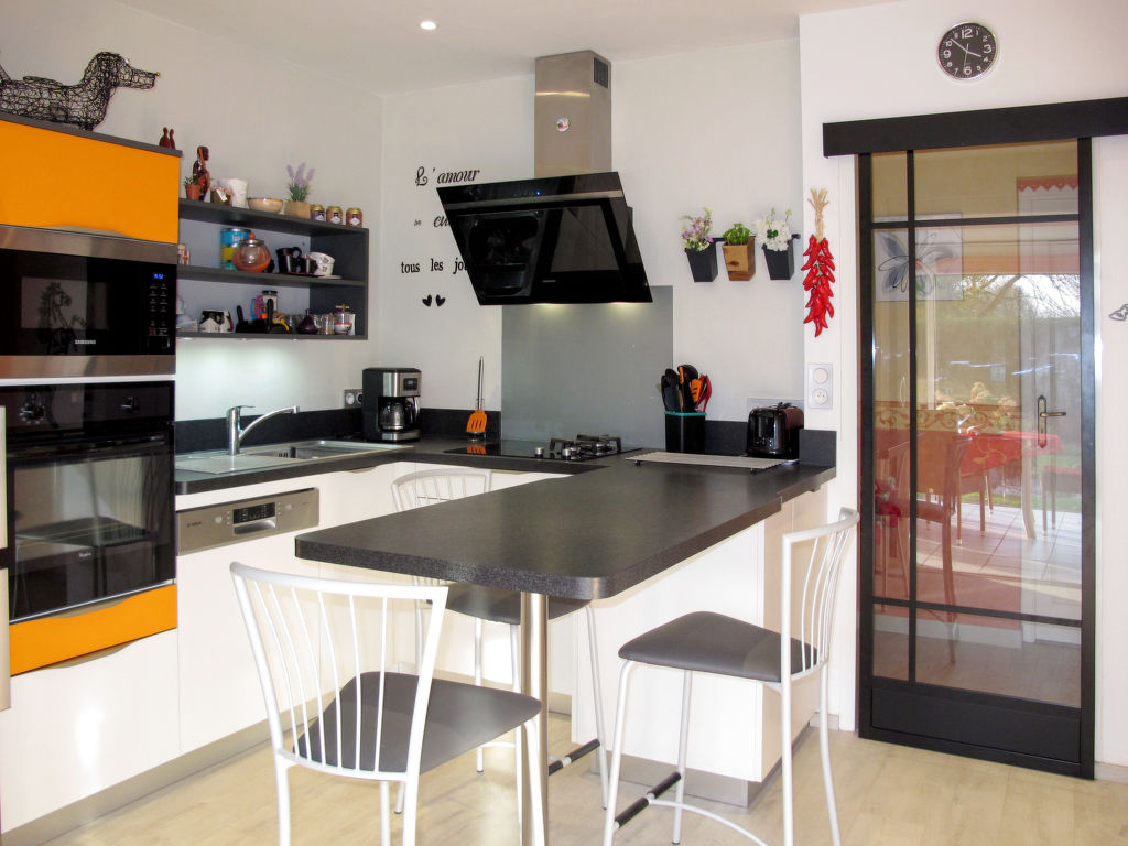 4½-Zimmer-Haus, 2 Etagen, ca. 120 m². Erdgeschoss: Wohnraum mit Sitzgruppe, Holzofen (nur Dekoration), Essplatz, Theke mit 3 Barhockern und 2x Terrassenausgang. Küche (2 Induktionsfelder, 2 Flammen, Backofen/Mikrowelle, Geschirrspüler, amerikanischer Kühlschrank, Kaffeemaschine, Wasserkocher, Toaster) mit Essplatz für 4 Personen und Zugang zu Wintergarten in Südlage mit Sitzgruppe, Essplatz und Glasschiebetüren zu Terrasse und Garten. Sep.WC. Obergeschoss (Dachschräge, teils eingeschränkte Stehhöhe): 3 Schlafzimmer, jeweils mit franz. Bett. Dusche/Doppelwaschbecken/WC. Inserat einer Privatperson nach Artikel 155, IV, CGI.