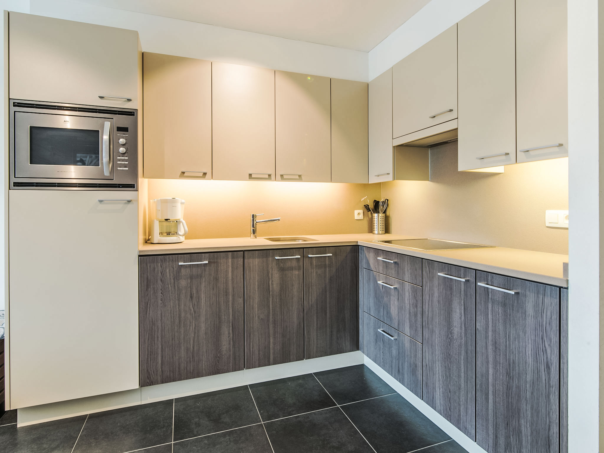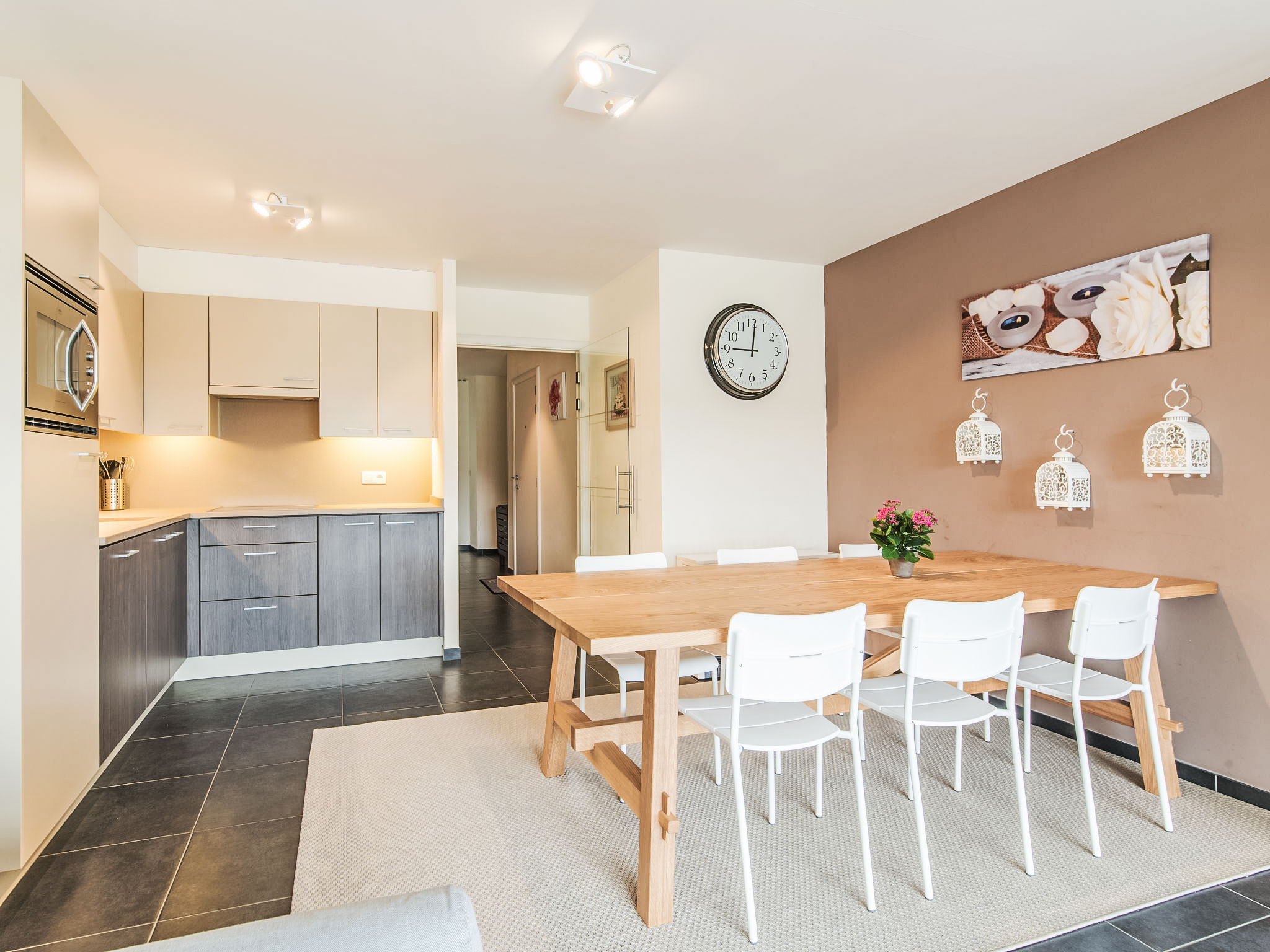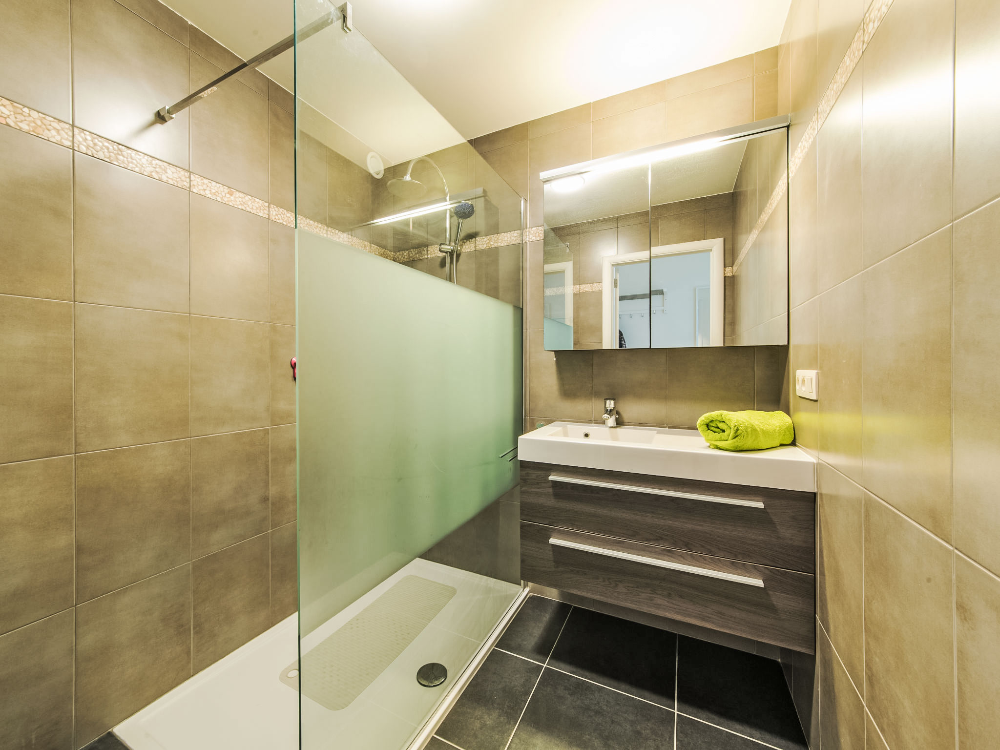 "Res. Albatros 301", 3-Zimmer-Wohnung 67 m2 im 3. Stock. Objekt geeignet für 2 Erwachsene + 4 Kinder. Wohn-/Esszimmer mit Digital-TV. Ausgang zum Balkon. 1 Doppelzimmer mit 1 Doppelbett (1 x 180 cm, Länge 200 cm). 1 Zimmer mit 2 x 2 Etagenbetten (90 cm, Länge 200 cm). Ausgang zum Balkon. Offene Küche (Geschirrspüler, 4 Glaskeramikherd Platten, Toaster, Wasserkocher, elektrische Kaffeemaschine, Kombinationsmikrowelle). Bad, Dusche, sep. WC. E-Heizung. Kleiner Balkon. Balkonmöbel. Zur Verfügung: Waschmaschine. Internet (Wireless LAN, gratis). Flexibilität bei der Bettenaufteilung: Es stehen mehr Schlafmöglichkeiten zur Verfügung als die maximal zugelassene Personenzahl, diese darf dennoch nicht überschritten werden.