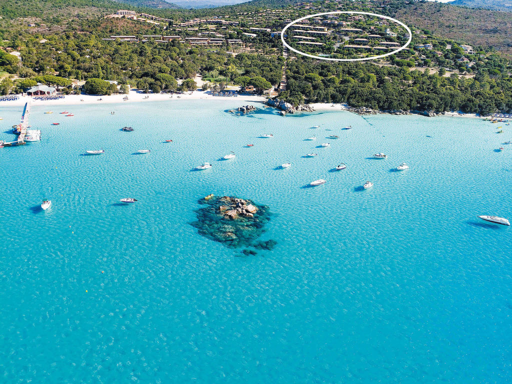 Santa Giulia 8 km von Porto Vecchio: Schöne, gemütliche Ferienanlage "Les Hameaux de Santa Giulia", umgeben von Bäumen. 59 Häuser in der Residenz. Im Ortsteil Santa Giulia, 8 km vom Zentrum von Porto Vecchio, 30 km vom Zentrum von Bonifacio, 143 km vom Zentrum von Bastia, sonnige, erhöhte Lage am Hang, 500 m vom Meer, direkter Zugang zum Strand. Zur Mitbenutzung: Terrassengarten, 4 ha mit Pflanzen und Bäumen, Naturgarten, Schwimmbad beheizt, eingezäunt (15 x 8 m, saisonale Verfügbarkeit: 01.Apr.-30.Sep.). Aussendusche, Tennis, Terrasse. In der Anlage: Empfang, Wireless LAN. Parkplatz beim Haus auf dem Grundstück. Einkaufsgeschäft 400 m, Supermarkt 8 km, Restaurant, Bar 400 m, Sandstrand "Santa Giulia" 500 m. Bitte beachten: Fahrzeug empfohlen. Die Residenz wird durch elektrische Tore geschlossen. Am Strand Santa Giulia findet jährlich Ende August ein Musikfestival statt. WLAN nur bei der Rezeption.