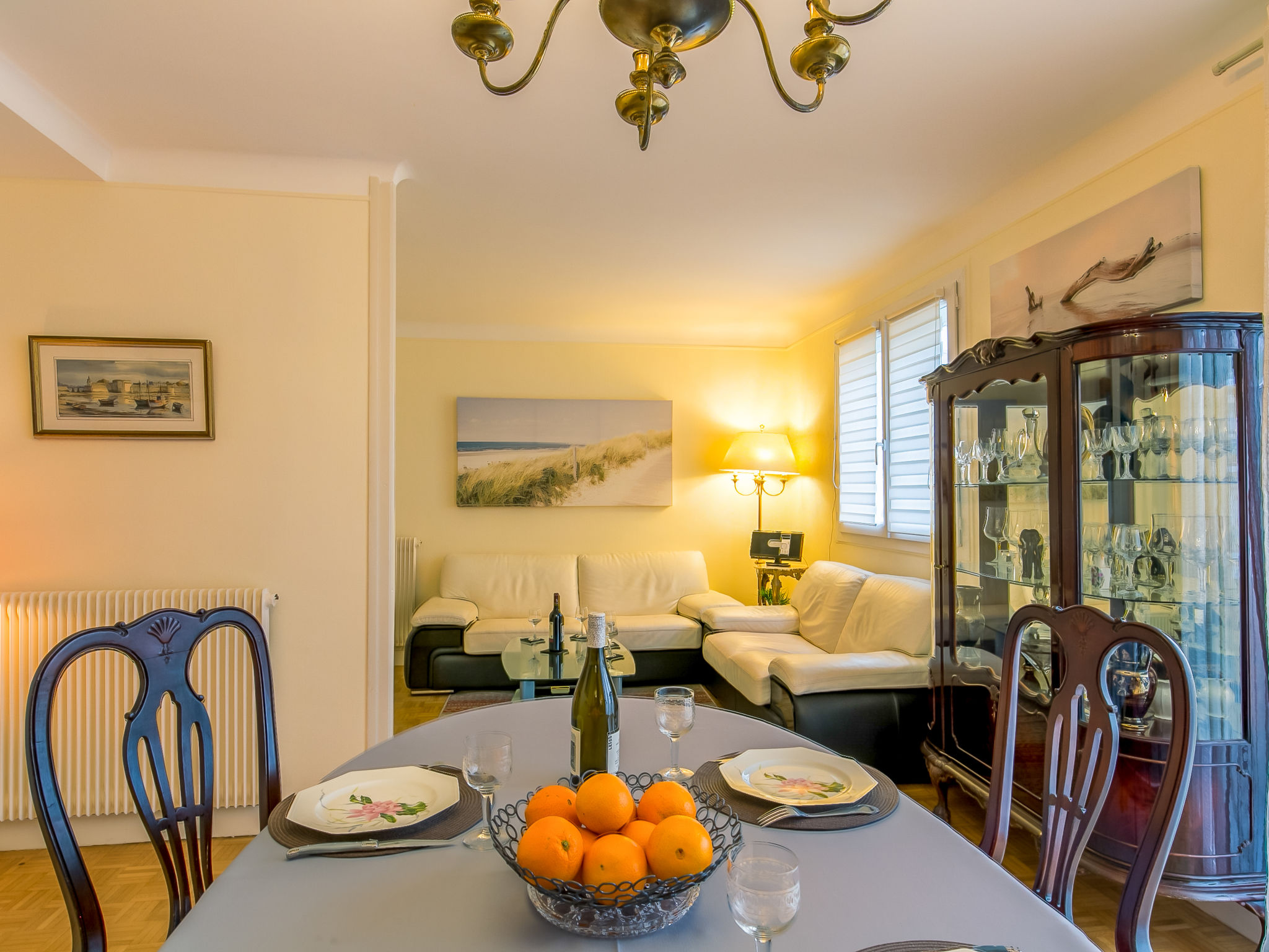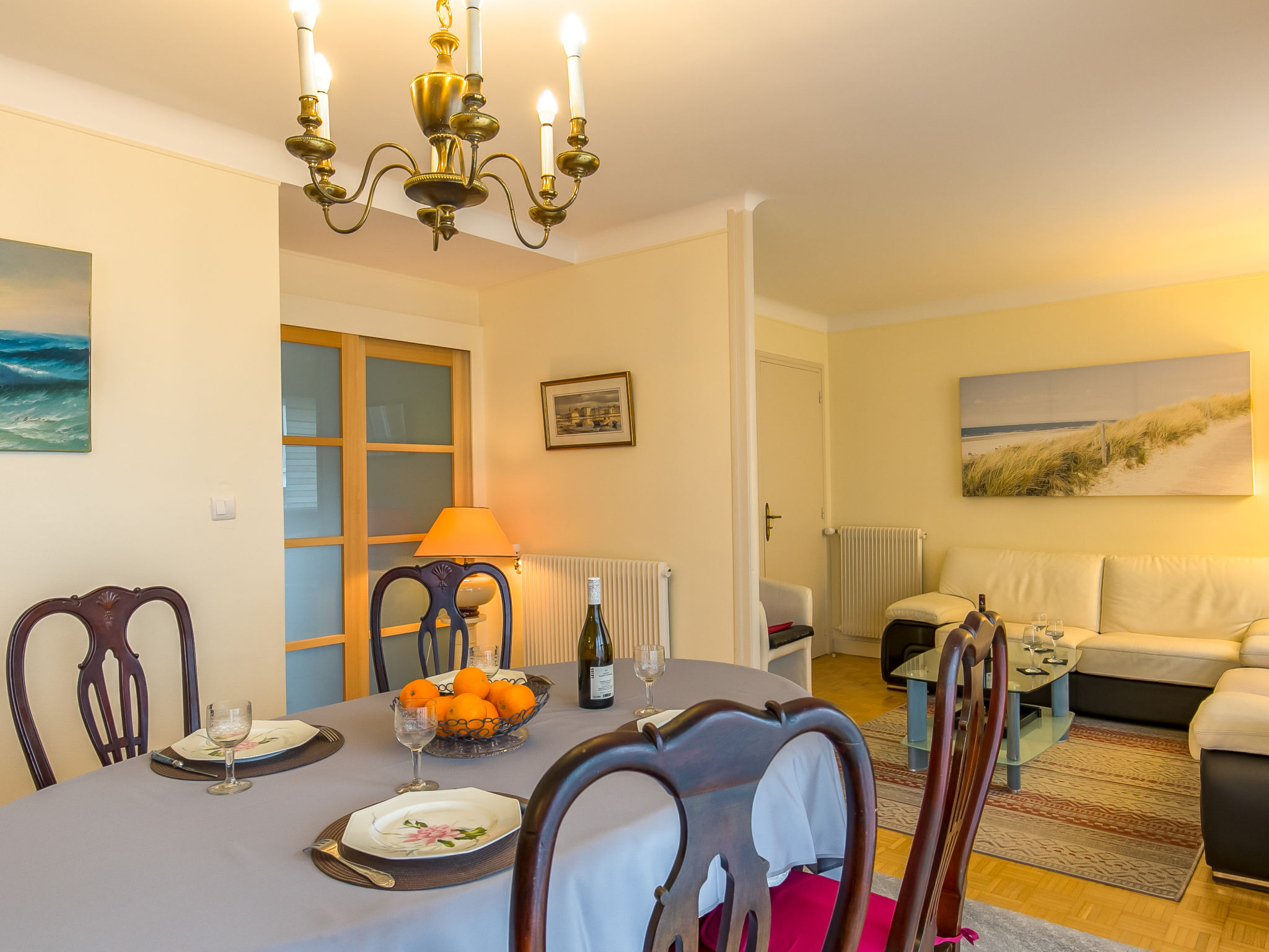 "Les Glénans (CCN113)", 3-Zimmer-Wohnung 65 m2 im 1. Stock. Renoviert im Jahre 2018, komfortabel und stilvoll eingerichtet: Wohn-/Esszimmer mit Esstisch, TV, CD und elektrischem Rollladen. Ausgang zum Balkon. 2 Zimmer, jedes Zimmer mit 1 franz. Bett (140 cm, Länge 190 cm), elektrischem Rollladen. Küche (Backofen, 3 Induktionskochplatten, Toaster, Wasserkocher, Mikrowelle, Tiefkühler, elektrische Kaffeemaschine). Dusche, sep. WC. G-Heizung. Parkettböden. Abstellkammer. Zur Verfügung: Waschmaschine, Wäschetrockner, Bügeleisen. Internet (Wireless LAN, gratis). Bitte beachten: Nichtraucher-Unterkunft. Rauchmelder, Feuerlöscher. Inserat einer Privatperson nach Artikel 155, IV, CGI.