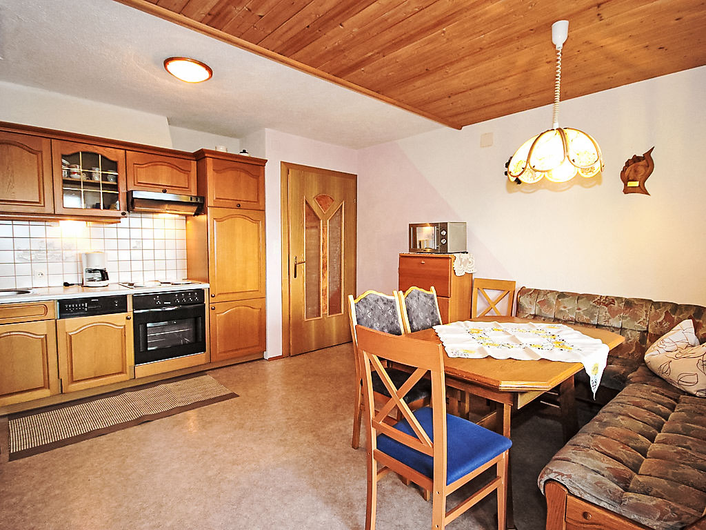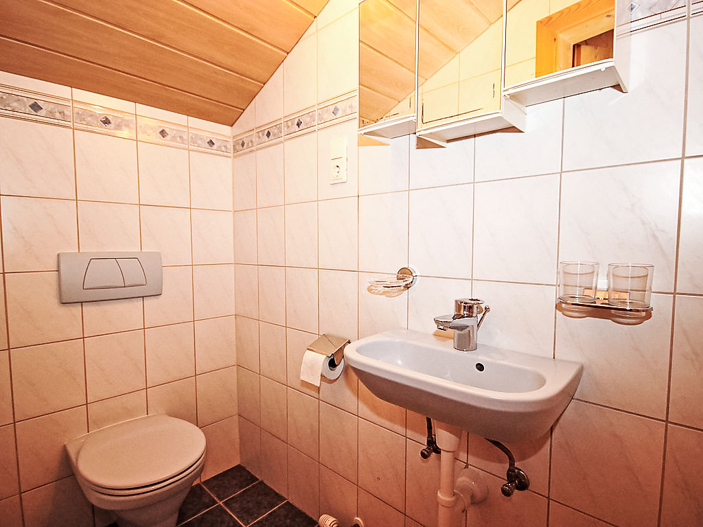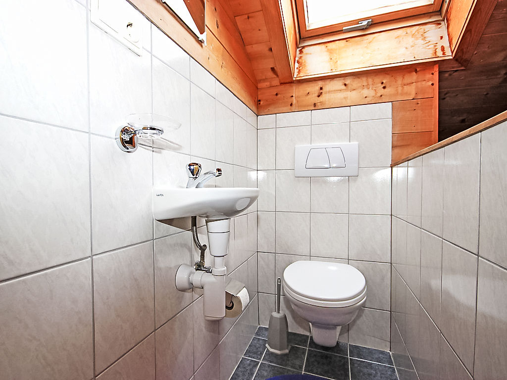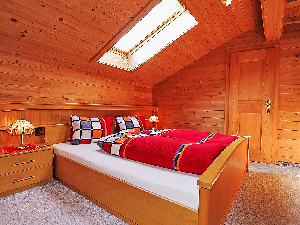 5-Zimmer-Wohnung 100 m2 auf 2 Stockwerken im 1. Stock. Rustikal und gemütlich eingerichtet: Eingang. Wohn-/Esszimmer mit Essecke und Sat-TV. Ausgang zum Balkon. 1 abgeschrägtes Zimmer mit Dachfenster mit 1 Diwanbett, 1 Doppelbett und Dusche/WC. 1 Doppelzimmer. Ausgang zum Balkon. 1 Zimmer mit 2 Betten und 1 x 1 Etagenbetten. Offene Küche (4 Kochplatten, Backofen, Geschirrspüler, Mikrowelle). Bad, sep. WC. Dachgeschoss: (steile Treppe) 1 abgeschrägtes Zimmer mit Dachfenster mit 1 franz. Bett (140 cm, Länge 200 cm), Waschbecken und sep. WC. 2 Balkone. Balkonmöbel. Herrliche Panoramasicht auf die Berge und die Landschaft. Zur Verfügung: Internet (Wireless LAN, extra). In einem 3 Bett Zimmer steht ein Etagenbett, unten können 2 Personen schlafen, eine Person schläft oben. Die Wohnung darf maximal mit 10 Personen belegt werden (inklusive Gitterbett). Bei Belegung mit weniger Personen als der maximalen Personenzahl stehen nicht alle Schlafzimmer zur Verfügung.
