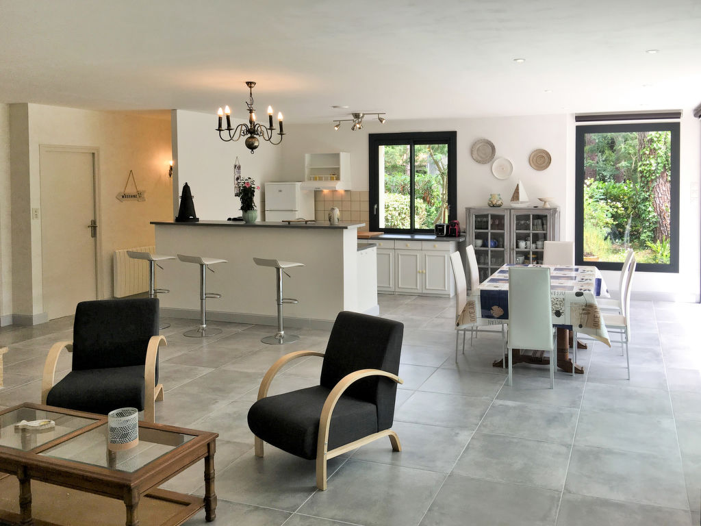 Einfamilienhaus "Les Narcisses". 500 m vom Zentrum von Ronce-les-Bains, 4 km vom Zentrum von La Tremblade, 29 km vom Zentrum von Royan, in einem Wohnquartier, 500 m vom Meer, in einer Sackgasse. Zur Alleinbenutzung: naturbelassenes Grundstück 600 m2 (eingezäunt) mit Pflanzen und Bäumen, Parkplatz (überdacht) auf dem Grundstück. Einkaufsgeschäft 500 m, Supermarkt 4 km, Sandstrand "Plage de Mus de Loup" 500 m. Ein Teil des Hauses ist abgeschlossen und unbewohnt.