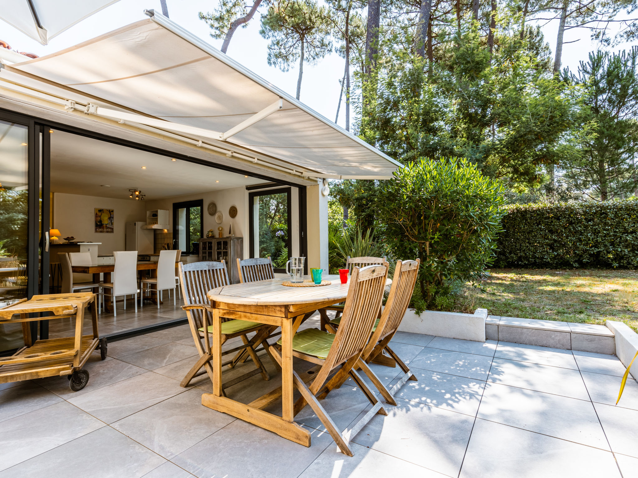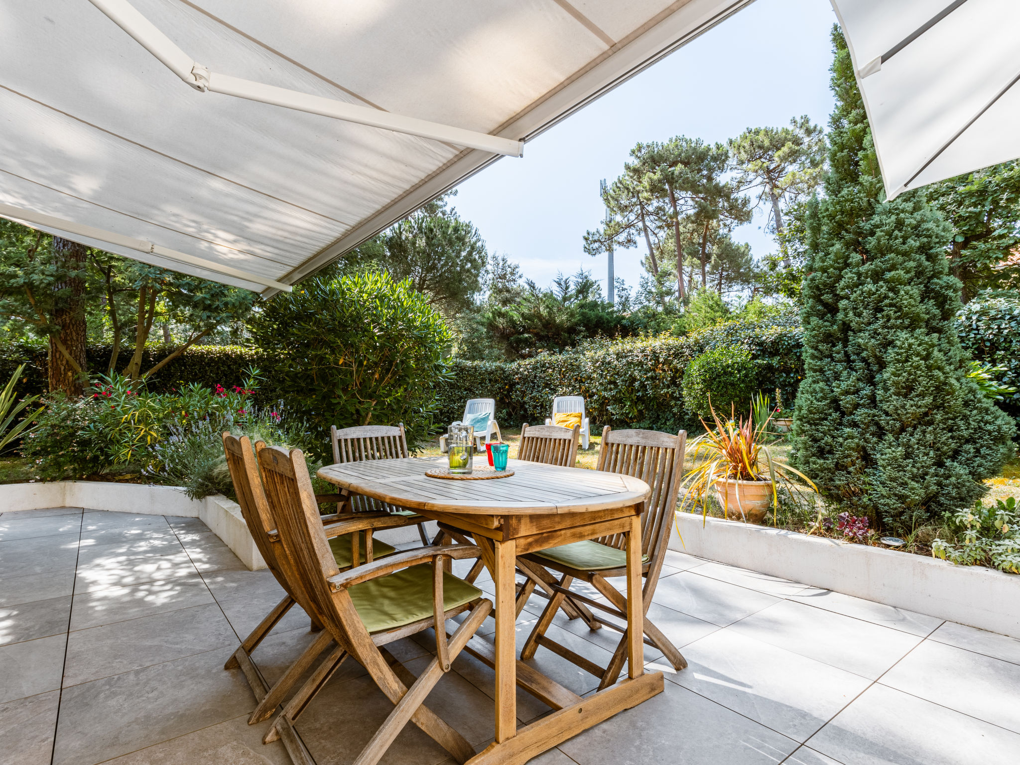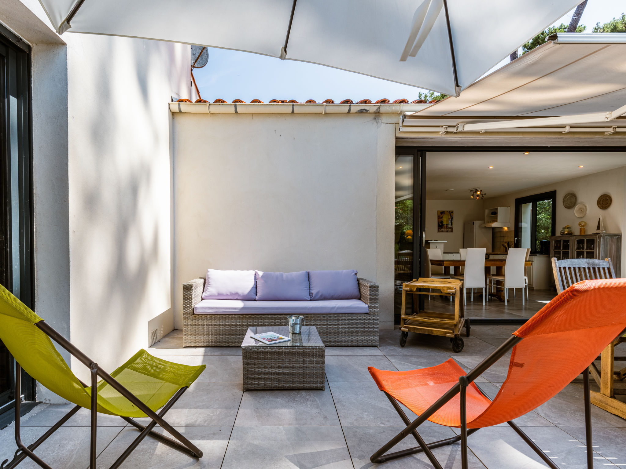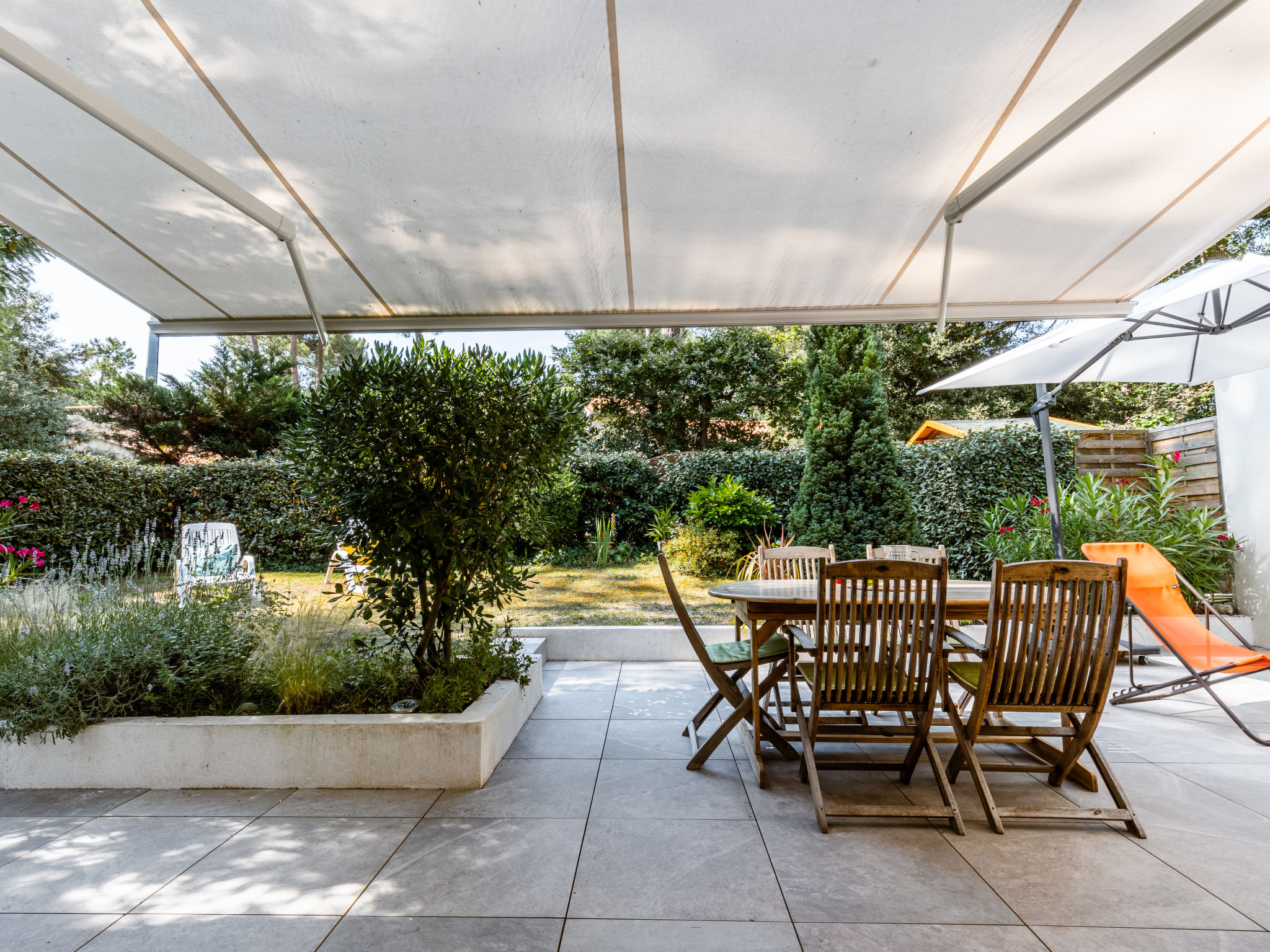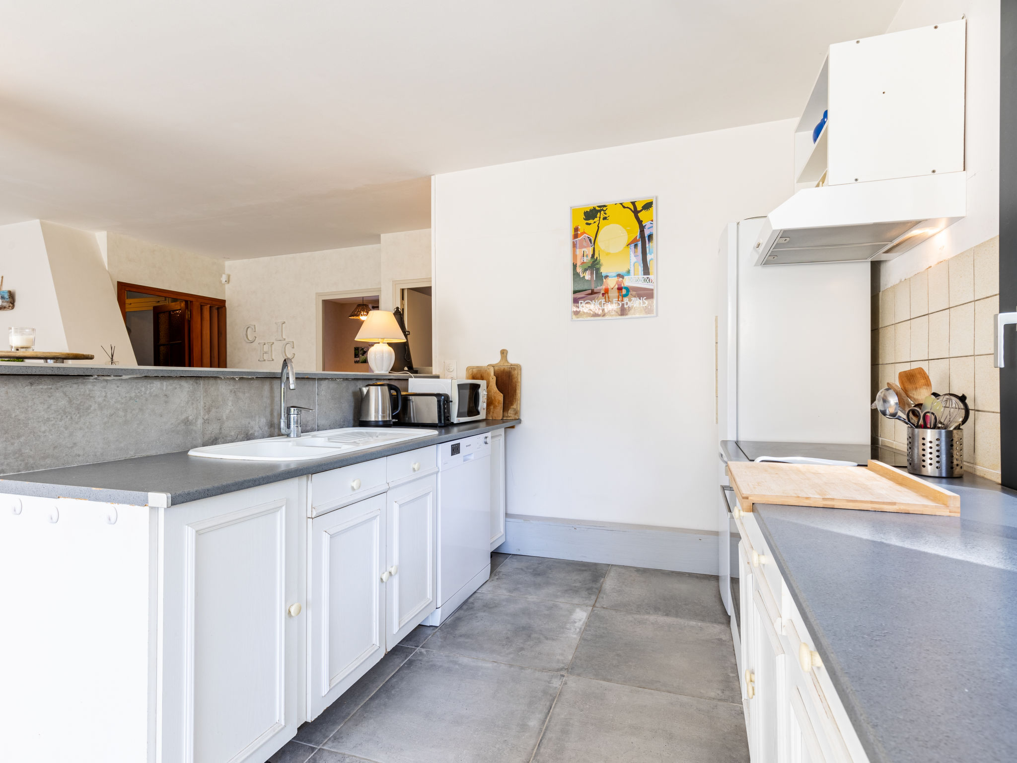 Einfamilienhaus "Les Narcisses". 500 m vom Zentrum von Ronce-les-Bains, 4 km vom Zentrum von La Tremblade, 29 km vom Zentrum von Royan, in einem Wohnquartier, 500 m vom Meer, in einer Sackgasse. Zur Alleinbenutzung: naturbelassenes Grundstück 600 m2 (eingezäunt) mit Pflanzen und Bäumen, Parkplatz (überdacht) auf dem Grundstück. Einkaufsgeschäft 500 m, Supermarkt 4 km, Sandstrand "Plage de Mus de Loup" 500 m. Ein Teil des Hauses ist abgeschlossen und unbewohnt.