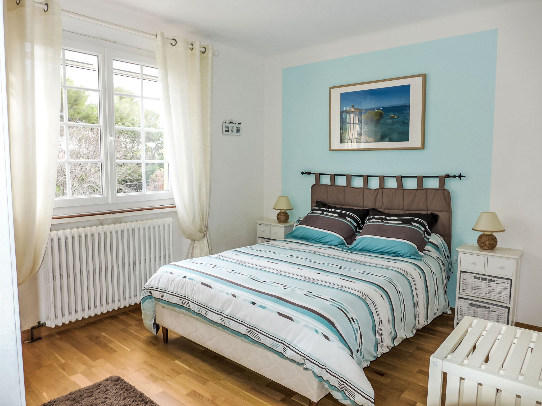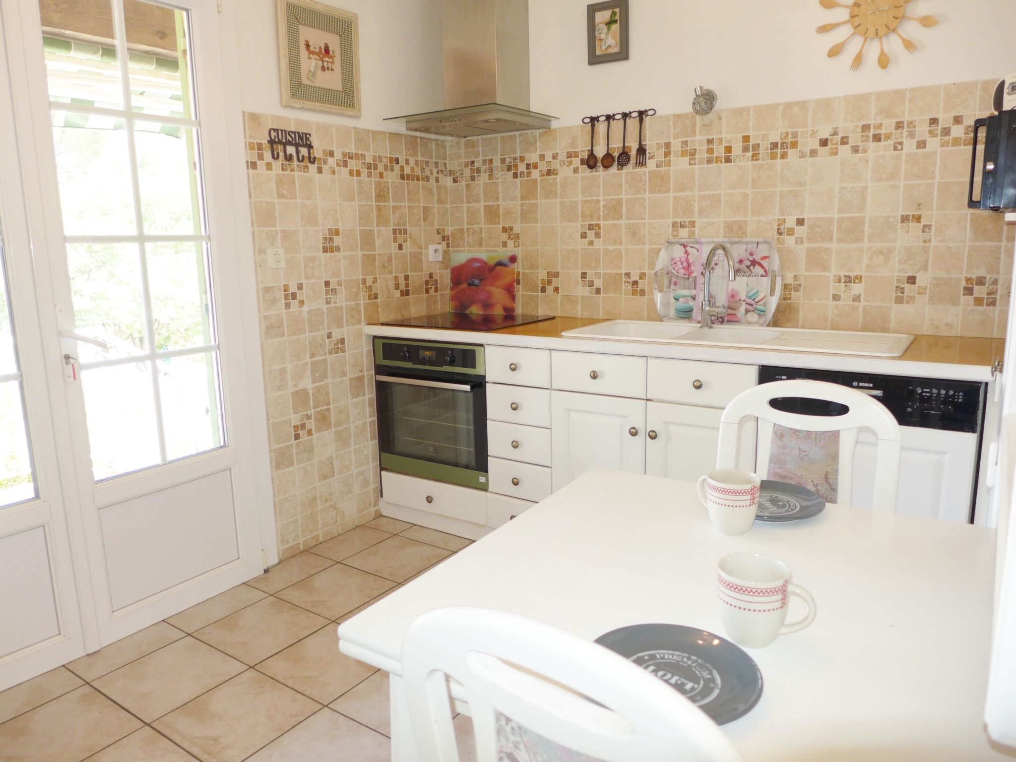 4-Zimmer-Haus 120 m2. Komfortabel eingerichtet: Esszimmer mit TV (Flachbildschirm), Klimaanlage. Ausgang zur Terrasse. 1 Zimmer mit 1 franz. Bett (140 cm, Länge 190 cm), Klimaanlage. 1 Zimmer mit 1 franz. Bett (160 cm, Länge 200 cm), Bad/WC und Klimaanlage. 1 Zimmer mit 1 franz. Bett (1 x 140 cm, Länge 190 cm). Küche (Backofen, Geschirrspüler, 4 Glaskeramikherd Platten, Toaster, Wasserkocher, Mikrowelle, Tiefkühler, elektrische Kaffeemaschine) mit Esstisch. Ausgang zur Terrasse. Dusche, sep. WC. Terrasse, Ostlage und Südlage. Terrassenmöbel. Zur Verfügung: Waschmaschine, Bügeleisen, Haartrockner. Internet (Wireless LAN, gratis). Parkplatz (eingezäunt, 1 Auto). Bitte beachten: Maximal 1 Haustier/Hund erlaubt. Rauchmelder. Inserat einer Privatperson nach Artikel 155, IV, CGI. 83107000214GT