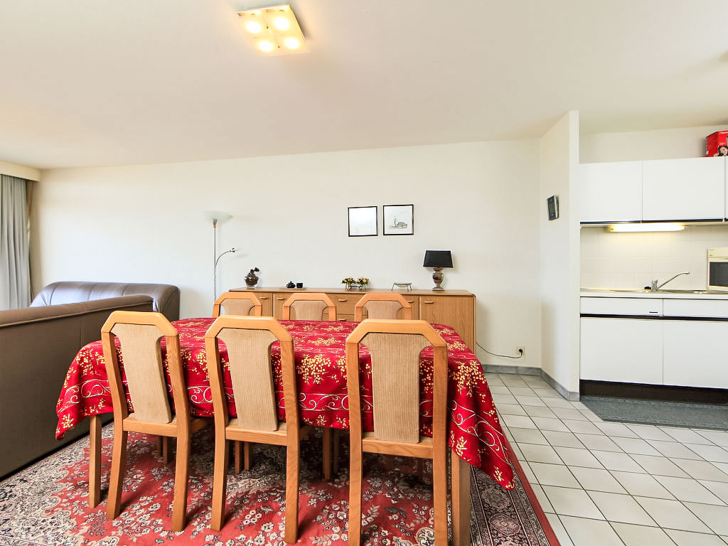 "Residentie Astrid app. 505", 2-Zimmer-Wohnung 60 m2 im 5. Stock. Komfortabel eingerichtet: Wohn-/Esszimmer mit Esstisch, TV und Digital-TV (Flachbildschirm), Radio, DVD und E-Heizung. Ausgang zum Balkon, Richtung Südwesten. 1 grosses Doppelzimmer mit 1 franz. Bett (1 x 180 cm, Länge 200 cm), 2 Klappbetten und E-Heizung. Ausgang zum Balkon, Richtung Südwesten. Offene Küche (4 Kochplatten, Wasserkocher, Tiefkühler, elektrische Kaffeemaschine, Kombinationsmikrowelle). Bad, sep. WC, Bad oder Dusche. E-Heizung. 2 Balkone, Südwestlage. Eingeschränkte Sicht auf das Meer. Blu-Ray Player. Geeignet für Familien.