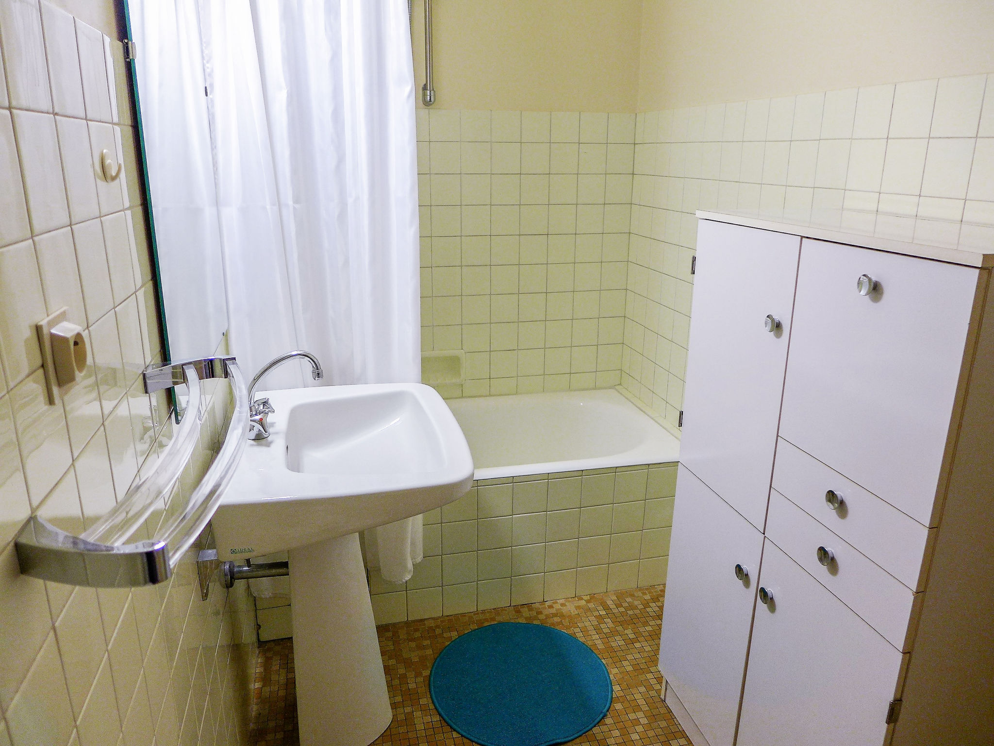 1-Zimmer-Studio 25 m2 im 5. Stock, Südwestlage. Wohn-/Esszimmer mit 1 Diwanbett (140 cm, Länge 190 cm), 1 Doppeldiwanbett (140 cm, Länge 190 cm), TV. Kochnische (Backofen, 2 Glaskeramikherd Platten, Wasserkocher, Mikrowelle, elektrische Kaffeemaschine). Bad/WC. Schöne Sicht auf die Berge. Zur Verfügung: Internet (Wireless LAN, extra). Parkplatz Nr. 13 au sous sol. Bitte beachten: Rauchmelder. Inserat einer Privatperson nach Artikel 155, IV, CGI.