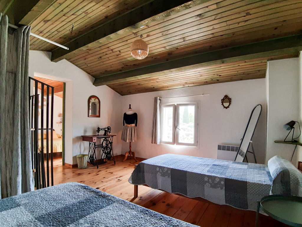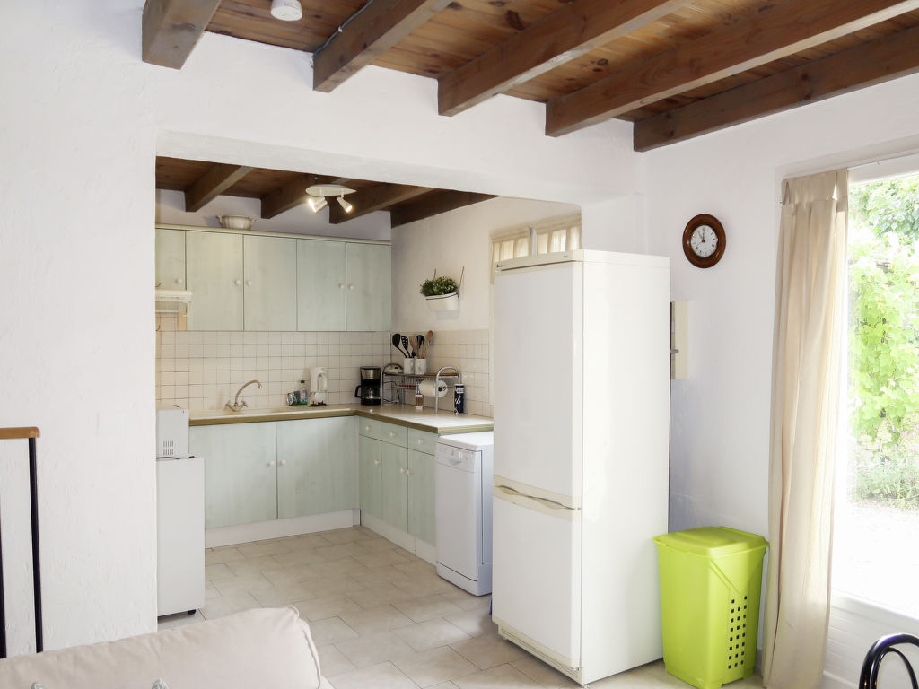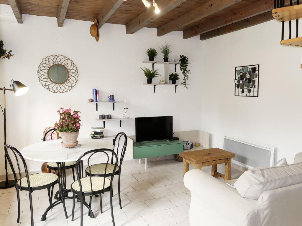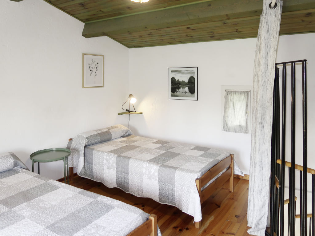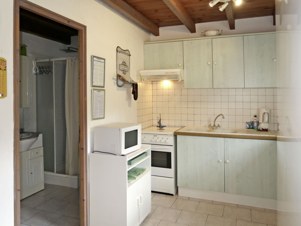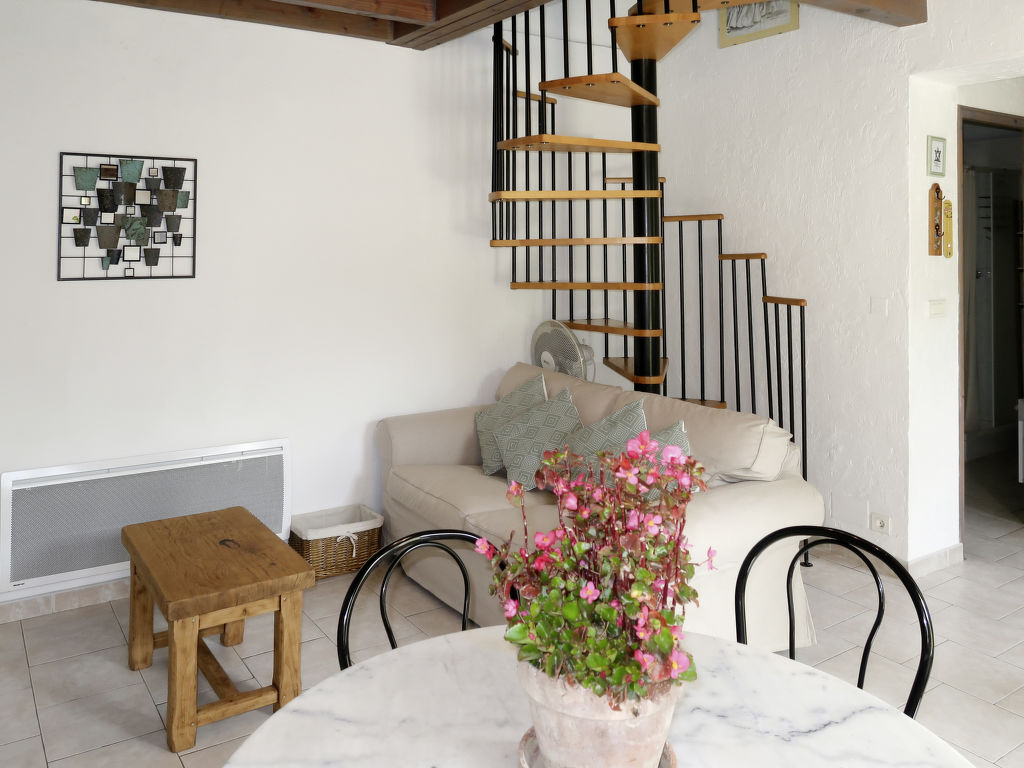 2½-Zimmer-Haus, 2 Etagen, ca. 60 m². Erdgeschoss: Wohnraum mit Sitzcouch, Essplatz. Kleine offene Küche (4 Flammen, Backofen, Mikrowelle, Geschirrspüler, Kühl-/Gefrierkombination, Kaffeemaschine, Wasserkocher, Toaster). Dusche/WC. Vom Wohnraum Wendeltreppe ins Obergeschoss: zur Treppe offene Galerie mit 2 Einzelbetten. Schlafzimmer mit franz. Bett. Inserat einer Privatperson nach Artikel 155, IV, CGI.