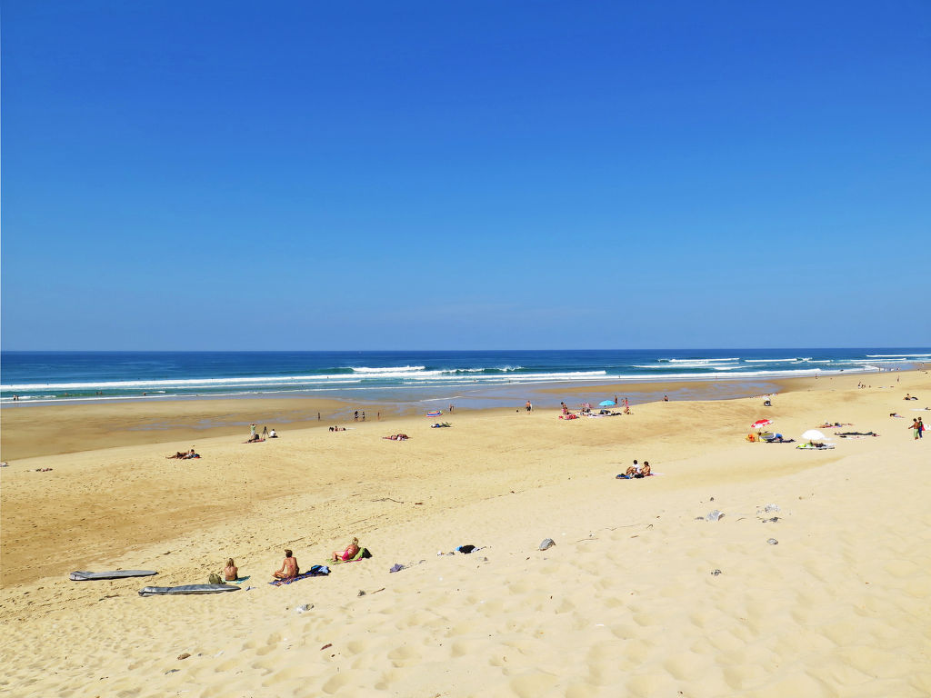 Residenz "Lagocéan", auf 3 Stockwerken. 29 Wohnungen in der Residenz. 800 m vom Zentrum von Vieux-Boucau, 10 km vom Zentrum von Soustons, 300 m vom Meer, 750 m vom See. Frühstück möglich (extra). Öffentliche Parkplätze auf der Strasse. Einkaufsgeschäft 100 m, Supermarkt 2.5 km, Sandstrand 300 m, Badesee "Lac Marin de Port d'Albret" 750 m. Golfplatz (18 Loch) 10 km, Tennis 500 m. Der Besitzer akzeptiert keine Jugendgruppen. Das Foto ist nur ein Wohnungsbeispiel. Die Mietobjekte können sich in Wohnfläche, Raumaufteilung, Ausstattung und Einrichtung unterscheiden.