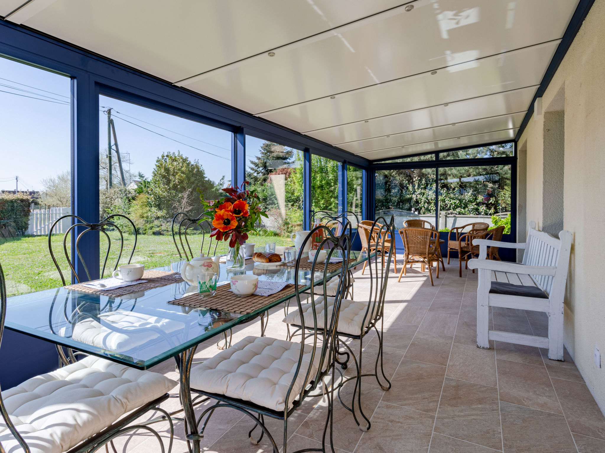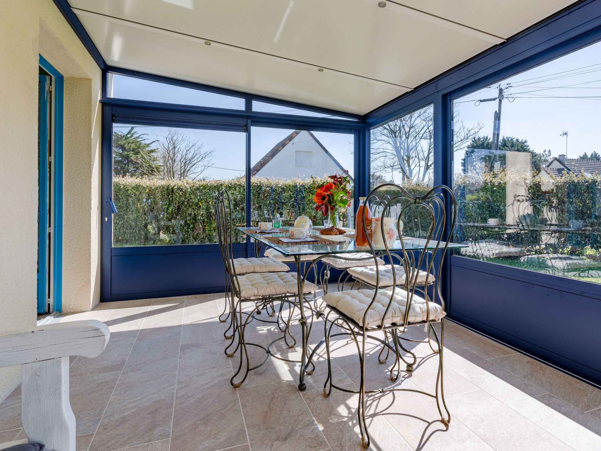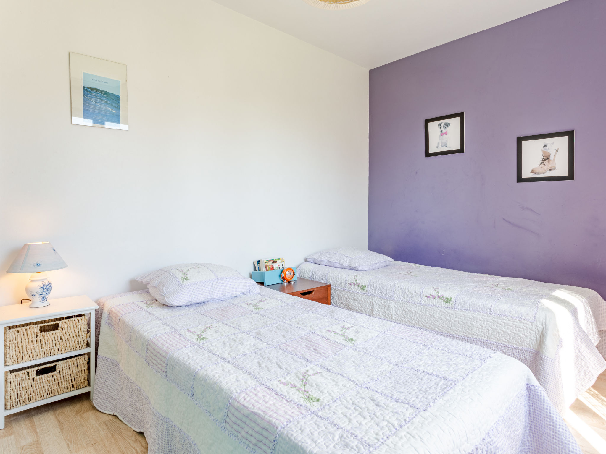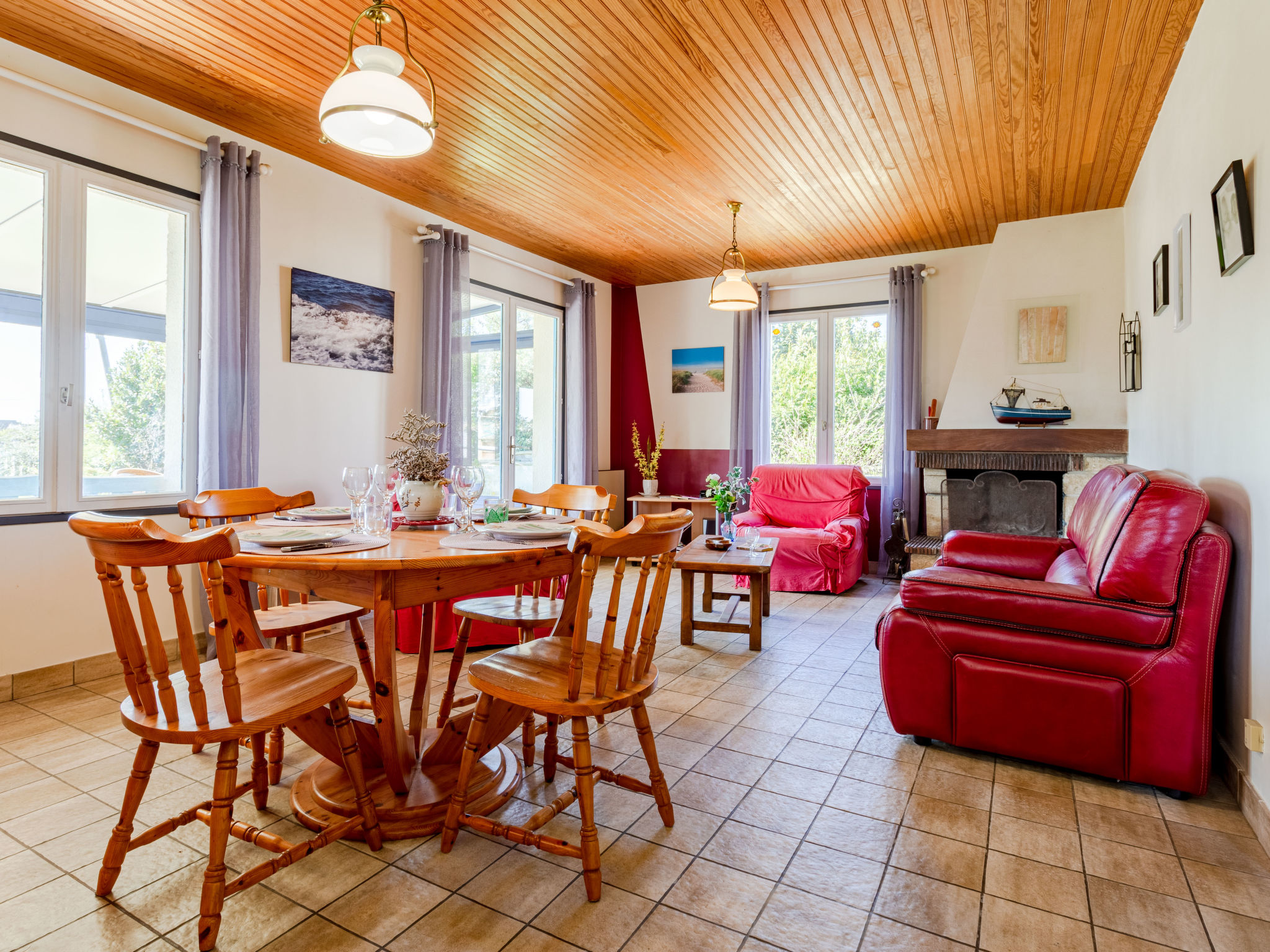 3-Zimmer-Haus, ca. 70 m². Wohnraum mit Sitzgruppe, Kamin (Holz inklusive), Essplatz und Terrassenausgang, durch Theke (3 Barhocker) abgeteilte Küche (3 Flammen, 1 Platte, Backofen, Mikrowelle, Geschirrspüler, Kühl-/Gefrierkombination, Kaffeemaschine, Wasserkocher, Toaster) mit Essplatz für 2 Personen und Terrassenausgang. Schlafzimmer mit franz. Bett. Zweibettzimmer. Bad. Sep.WC. Inserat einer Privatperson nach Artikel 155, IV, CGI.