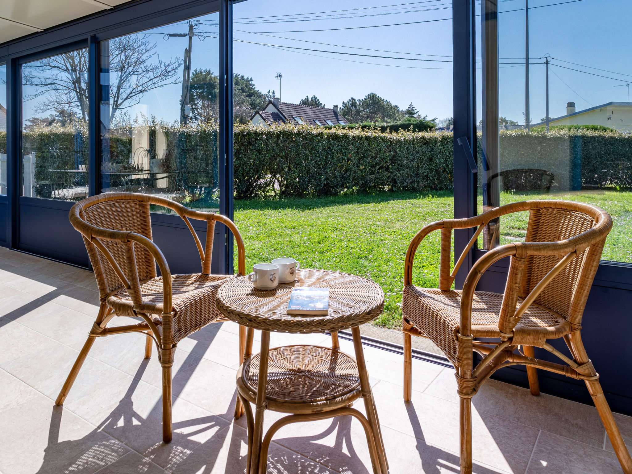 Das Ferienhaus steht ca. 300 m vom Sandstrand und 4,5 km von der Ortsmitte St. Germain-sur-Ay entfernt. Erste Einkaufsmöglichkeiten und Restaurants ca. 400 . 18-Loch-Golfplatz 27 km. Ca. 750 m² großes, durch Hecke, Zaun und Mauer abgeschlossenes Rasengrundstück. Möblierte Terrasse mit 4 Sonnenliegen, Markise und transportablem Grill. Parkmöglichkeit auf dem Grundstück, weitere Parkmöglichkeit an der Straße beim Haus. Feriengerechte Einrichtung. Fliesen- und Linoleumboden. Sat-TV (deutsche Programme). Internetzugang (WLAN, inklusive). Waschmaschine, Bügeleisen/-brett. Abstellraum (Garage). Elektroheizung. Hinweis: Rauchen ist im Haus nicht gestattet.