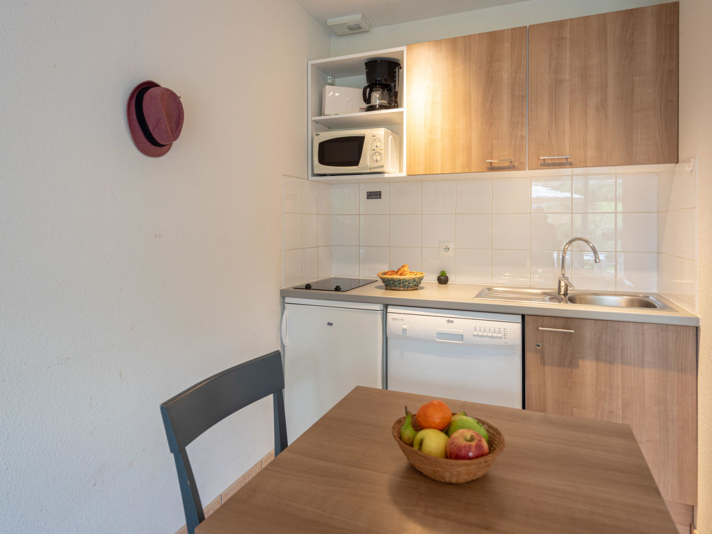 1-Zimmer-Reihenhaus, ca. 29 m2. Wohn-/Schlafzimmer mit Doppelbettcouch, Bettcouch, Essplatz und Kochnische (2 Platten, Mikrowelle, Kühlschrank, Kaffeemaschine, Toaster. Bad. Sep. WC.