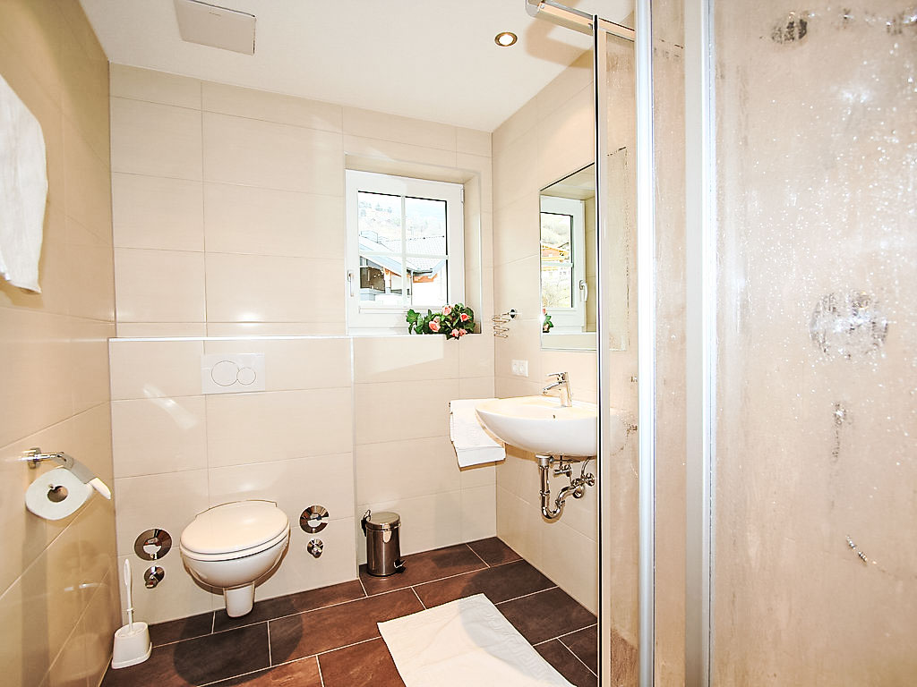 5-Zimmer-Wohnung 95 m2 im 2. Stock. Geschmackvoll eingerichtet: Eingang. 3 Doppelzimmer. 1 kleines Zimmer mit 1 franz. Bett (140 cm). Wohnküche (Backofen, Geschirrspüler, 4 Glaskeramikherd Platten, Mikrowelle) mit Essecke und Sat-TV (Flachbildschirm). Ausgang zum Balkon. 2 Duschen/WC. Fussbodenheizung. Grosser Balkon. Balkonmöbel. Schöne Sicht auf die Berge und die Ortschaft. Zur Verfügung: Internet (Wireless LAN, gratis). Bitte beachten: Nichtraucher-Unterkunft.