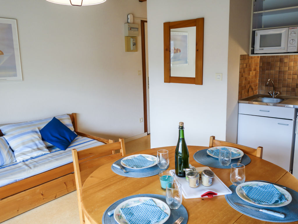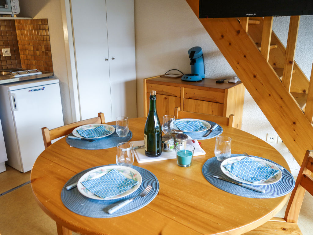 2-Zimmer-Wohnung 37 m2 auf 2 Stockwerken im 2. Stock. Objekt geeignet für 2 Erwachsene + 2 Kinder. Komfortabel und schön eingerichtet: Wohn-/Esszimmer mit TV (Flachbildschirm). Ausgang zum Balkon, Richtung Süden. 1 Zimmer mit 1 franz. Bett (140 cm). Kochnische (2 Kochplatten, Backofen, Mikrowelle, elektrische Kaffeemaschine, Kapseln für die Kaffeemaschine (Senseo) extra). Dusche, sep. WC. Obergeschoss: Galerie mit 2 Betten (80 cm). E-Heizung. Balkon 6 m2. Balkonmöbel. Zur Verfügung: Waschmaschine. Internet (Wireless LAN, gratis). Parkplatz Nr. 13. Bitte beachten: Wohnung auf Parkplatzseite. Rauchmelder. Inserat einer Privatperson nach Artikel 155, IV, CGI.