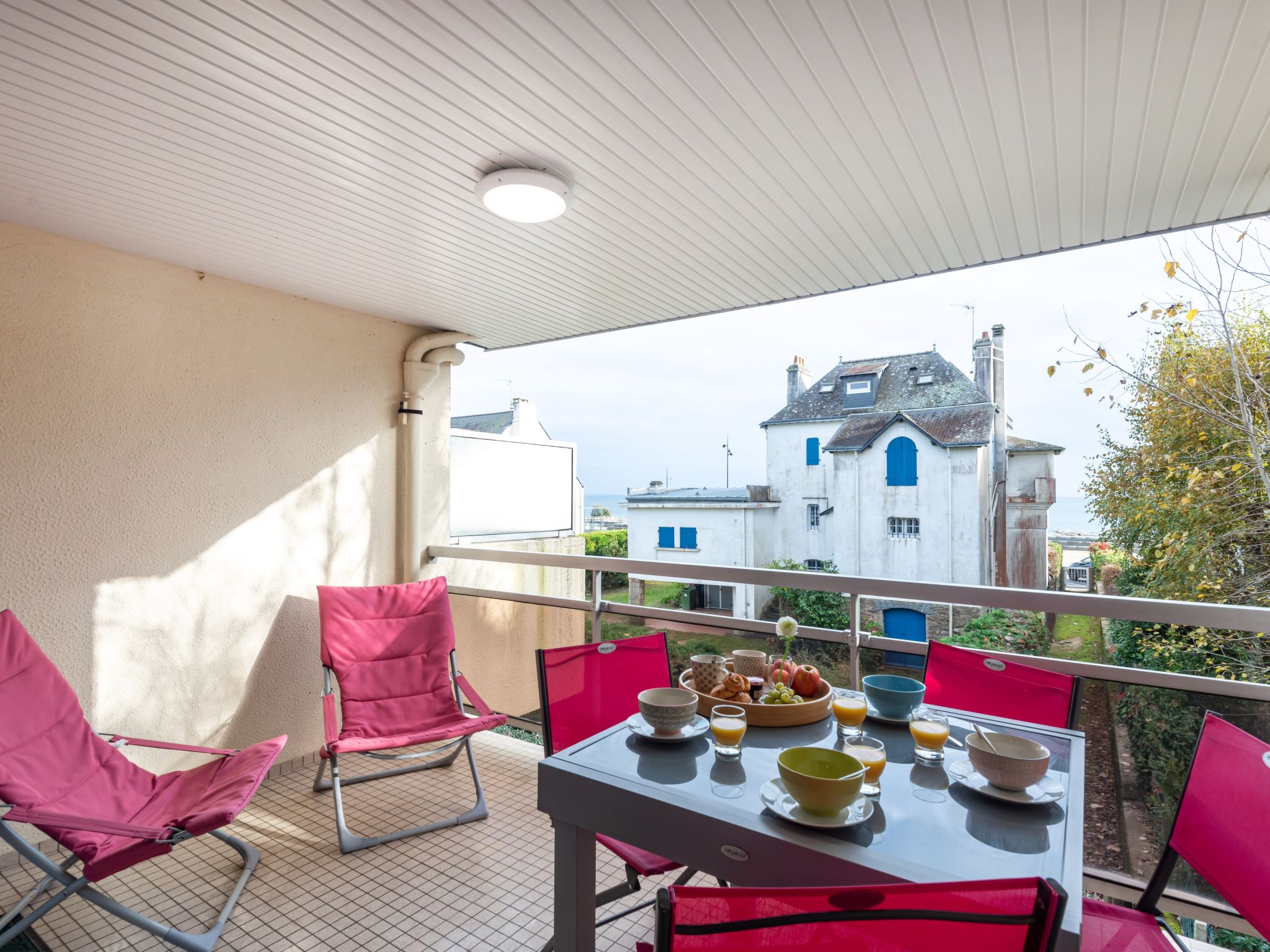 Appartementhaus "Ker Eol", auf 2 Stockwerken. Im Ortszentrum von Carnac Plage, 50 m vom Meer, 50 m vom Strand. In der Anlage: Einstellraum für Fahrräder. Parkplatz. Einkaufsgeschäft 50 m, Bäckerei 500 m, Café 150 m, Zentrum zu Fuss in 2 Minuten erreichbar, Sandstrand "Grande Plage de Carnac" 100 m, Thermalbad "Thalassothérapie Thalazur Carnac" 300 m. Golfplatz (18 Loch) 15 km, Surfschule 6 km, Segelschule 100 m. Nahe gelegene Sehenswürdigkeiten: Les alignements de Carnac 4 km, La Trinité sur Mer 4 km, Presqu'ile de Quiberon,Belle île en Mer 15 km, Vannes 35 km, Lorient 45 km. Wandergebiete: Le Golfe du Morbihan.