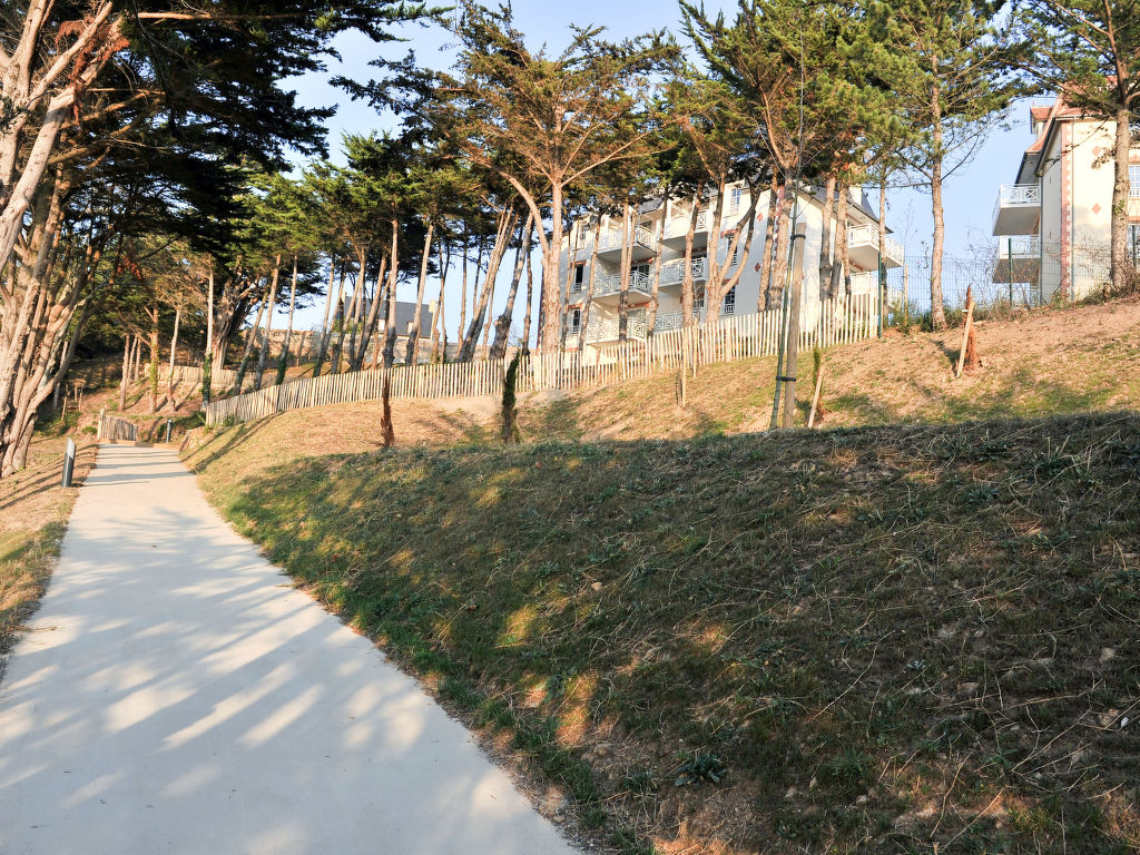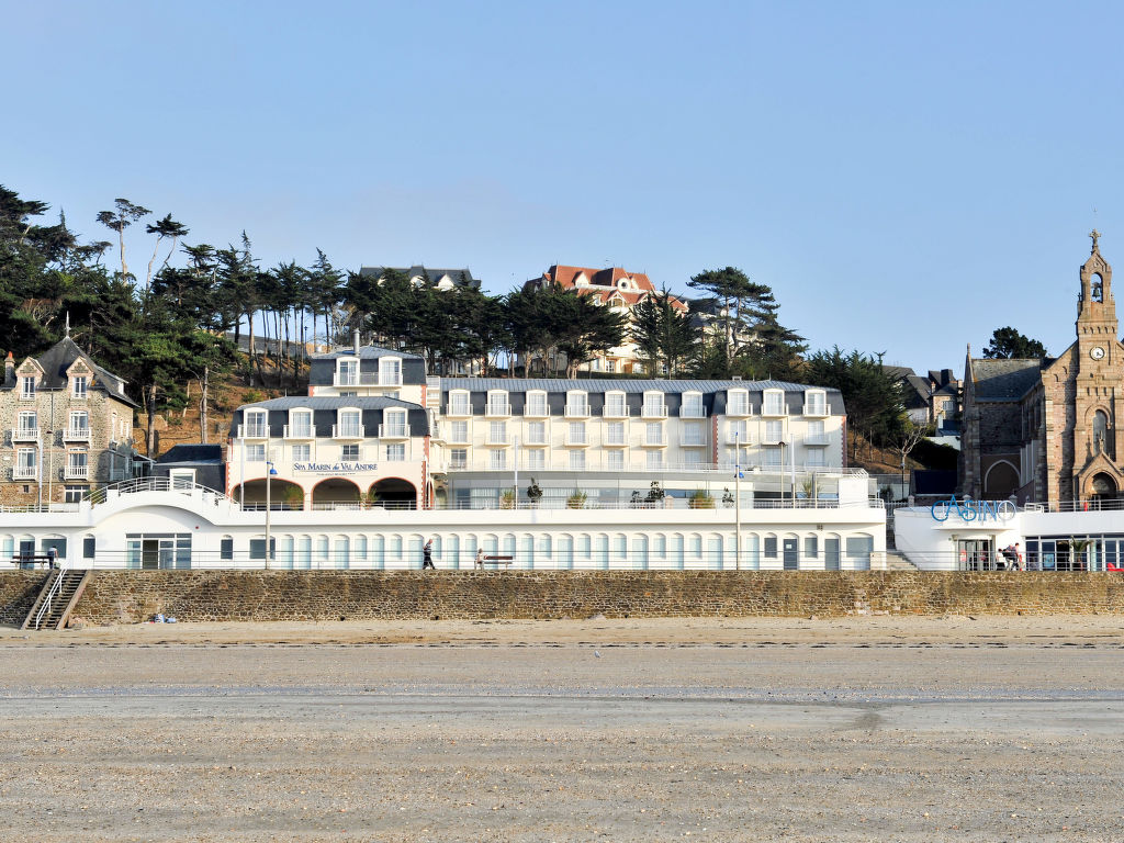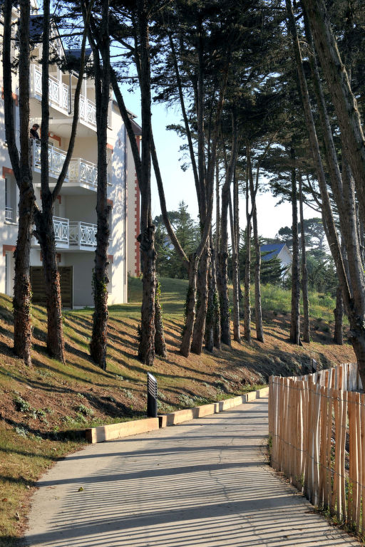 Ferienanlage "Villas du Spa". 3 Häuser in der Residenz. 53 Wohnungen in der Residenz. 200 m vom Zentrum von Pleneuf-Val-André, am Hang, 200 m vom Meer. Zur Mitbenutzung: Hallenbad (10 x 9 m, saisonale Verfügbarkeit: 01.Jan.-31.Dez.) mit Meerwasser. In der Anlage: Empfang, Restaurant, Bar, Fitnessraum (extra). Massage (extra). Dampfbad (extra). Fahrstuhl, Waschmaschine, Wäschetrockner (zur Mitbenutzung, extra). Treppenweg bis zum Haus. Parkplatz auf dem Grundstück. Einkaufsgeschäft 200 m, Supermarkt 1.2 km, Sandstrand 200 m. Golfplatz (18 Loch) 2 km, Segelschule 200 m, Tennis 700 m, Reitstall 2 km. Das Foto ist nur ein Wohnungsbeispiel. Die Mietobjekte können sich in Wohnfläche, Raumaufteilung, Ausstattung und Einrichtung unterscheiden. Das Hotelgebäude mit Rezeption, Restaurant und Bar ist über Treppen erreichbar. Der Wellnessbereich mit Meerwasserbecken, Dampfbad und Fitnessraum (Zutritt ab 18 Jahren erlaubt) ist nur zugänglich in Verbindung mit Anwendungen. INTERHOME GROUP Gäste erhalten 15% Ermäßigung auf die Anwendungen "À la carte" vom Spa Marin du Val André.