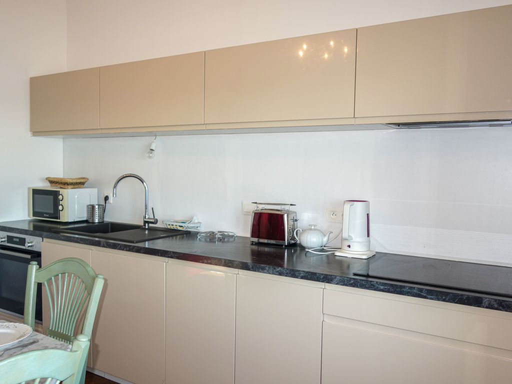 2-Zimmer-Wohnung 48 m2 im 2. Stock. Hell, renoviert im Jahre 2020, schön und geschmackvoll eingerichtet: Wohn-/Esszimmer mit Veranda, Panoramafenster mit 1 Doppeldiwanbett (1 x 140 cm, Länge 190 cm), TV (Flachbildschirm). 1 Zimmer mit 1 franz. Bett (1 x 140 cm, Länge 190 cm). Offene Küche (Backofen, Geschirrspüler, 4 Induktionskochplatten, Toaster, Wasserkocher, Mikrowelle, elektrische Kaffeemaschine). Bad/WC. E-Heizung. Sehr schöne Sicht auf das Meer. Zur Verfügung: Waschmaschine, Bügeleisen, Haartrockner. Internet (Wireless LAN, extra). Bitte beachten: Nichtraucher-Unterkunft. Rauchmelder. 35288001354FA