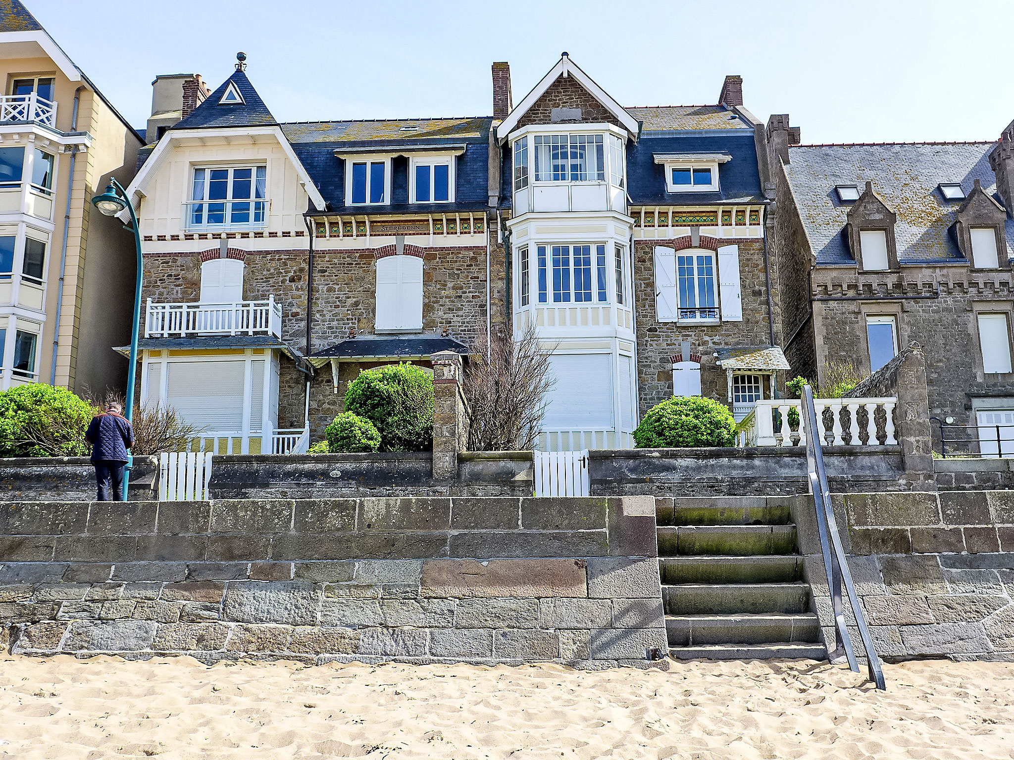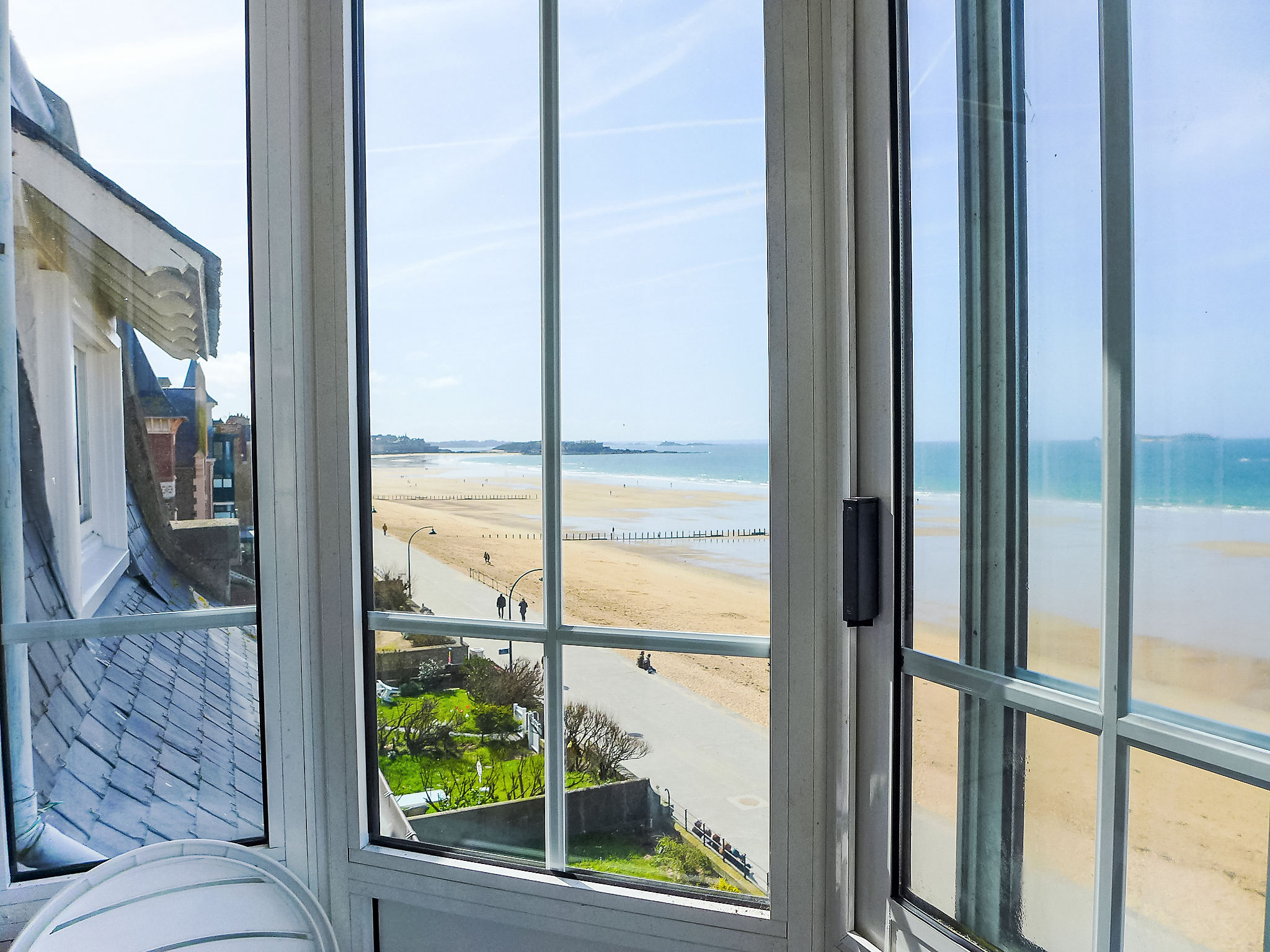 Dreifamilienhaus "Les Nielles", auf 2 Stockwerken. Im Ortsteil sillon, 10 m vom Meer, 10 m vom Strand, direkter Zugang zum Strand. Einkaufszentrum, Restaurant, Bäckerei 100 m, Sandstrand "Plage du Sillon" 20 m, Tauchzentrum 2 km, Hallenbad 2 km, Thermalbad "Les Thermes marins" 50 m. Jacht-Hafen 2 km, Golfplatz 16 km, Surfschule, Segelschule 20 m, Reitstall 5 km. Nahe gelegene Sehenswürdigkeiten: Le Mont St Michel 58 km, Dinard 15 km, Cancale 15 km, Dinan 30 km, Aquarium de St Malo 5 km, Zoo de la Bourbansais 50 km.