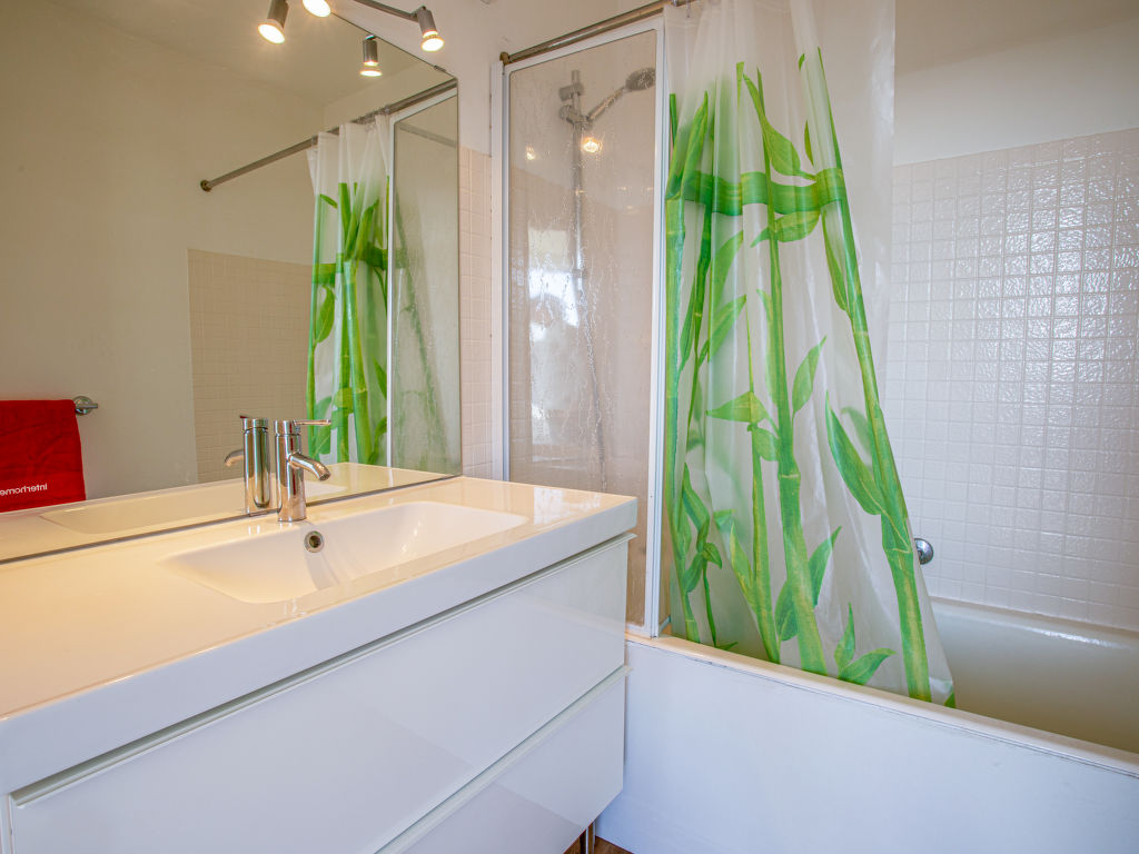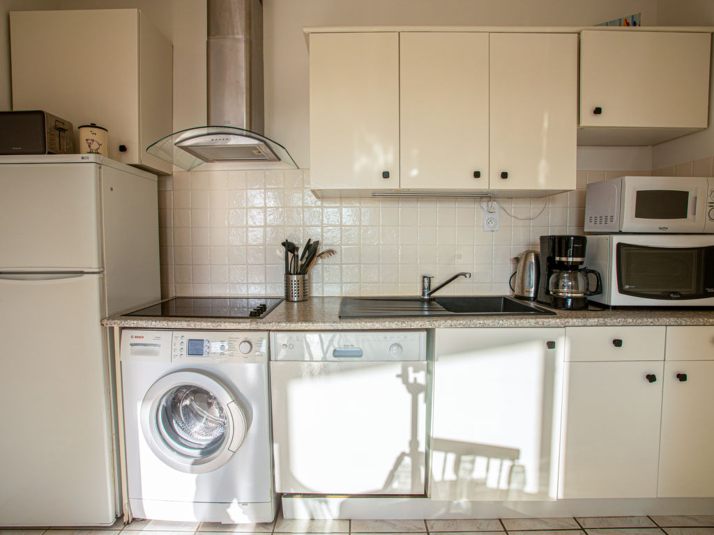 2-Zimmer-Wohnung 47 m2 im 3. Stock. Hell, komfortabel und schön eingerichtet: Wohnzimmer mit 1 Doppeldiwanbett (140 cm, Länge 190 cm), TV (Flachbildschirm). Ausgang zur Terrasse. 1 Zimmer mit 1 franz. Bett (160 cm, Länge 200 cm). Ausgang zur Terrasse. Offene Küche (Backofen, Geschirrspüler, 4 Glaskeramikherd Platten, Toaster, Wasserkocher, Mikrowelle, elektrische Kaffeemaschine). Bad, sep. WC. E-Heizung. 2 Terrassen, Südlage. Terrassenmöbel. Zur Verfügung: Waschmaschine, Bügeleisen, Haartrockner. Internet (Wireless LAN, gratis). Bitte beachten: Nichtraucher-Unterkunft. 1 kleines Haustier/Hund erlaubt. Rauchmelder. Inserat einer Privatperson nach Artikel 155, IV, CGI.