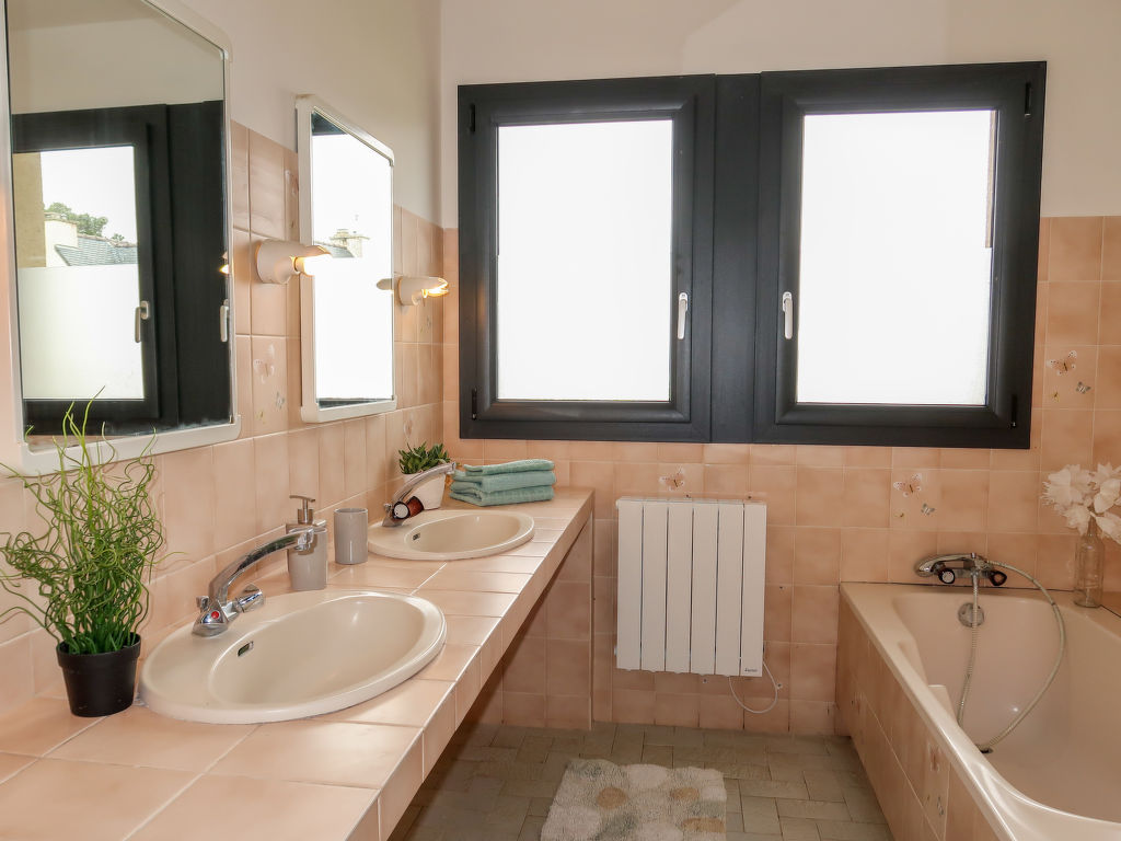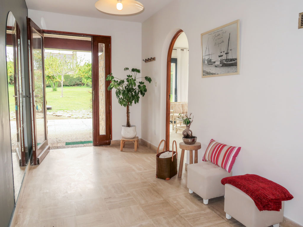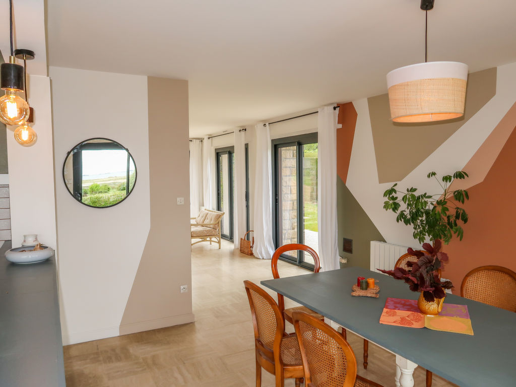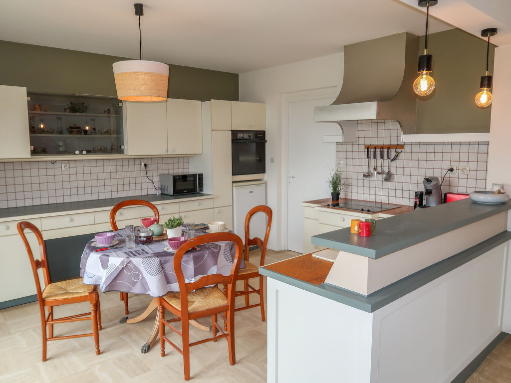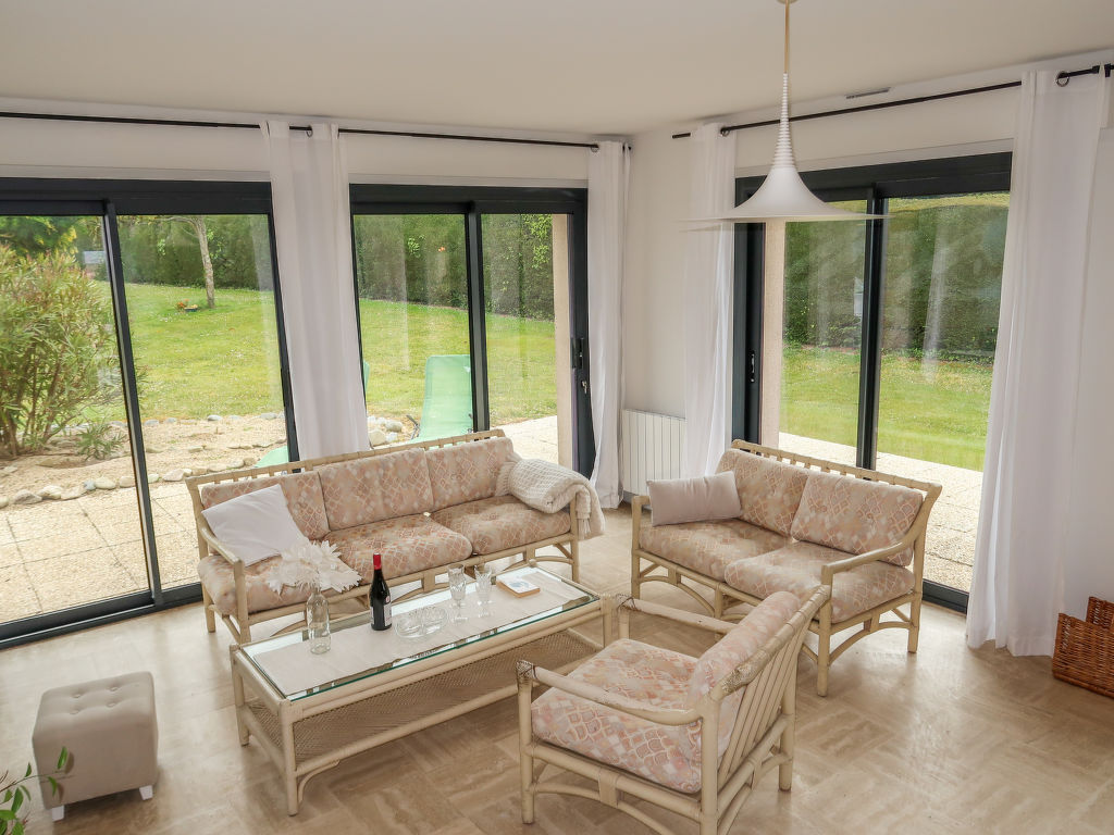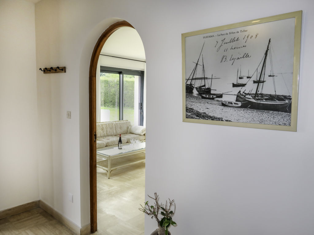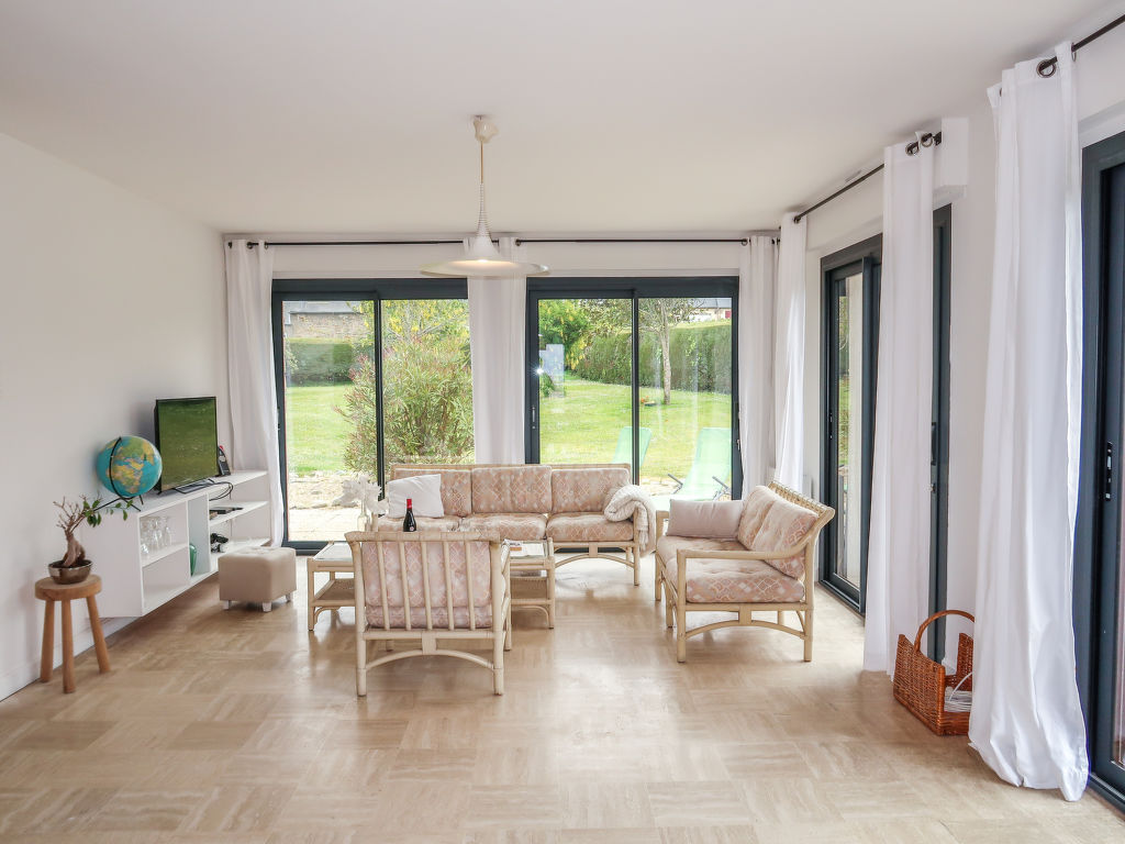 "Sillon de Talbert", 4-Zimmer-Haus im Erdgeschoss. Hell, schön eingerichtet: Wohn-/Esszimmer mit Panoramafenster mit offenem Kamin, Esstisch und TV (Flachbildschirm). 3 Zimmer, jedes Zimmer mit 1 franz. Bett (140 cm, Länge 190 cm). Offene Küche (Geschirrspüler, 4 Glaskeramikherd Platten, Toaster, Wasserkocher, Mikrowelle, elektrische Kaffeemaschine) mit Esstisch. Ausgang zur Terrasse. Bad, sep. WC, Doppelwaschbecken. Grosse Terrasse 110 m2, Nordlage und Südlage. Terrassenmöbel, Gartengrill, Liegestühle (2), Abstellkammer. Sicht auf das Meer. Zur Verfügung: Waschmaschine, Wäschetrockner, Bügeleisen, Babybett. Internet (Wireless LAN, gratis). Bitte beachten: Nichtraucher-Haus. 2 Haustiere/Hunde erlaubt. Rauchmelder. Inserat einer Privatperson nach Artikel 155, IV, CGI.