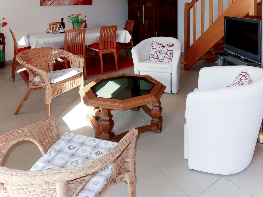 "Saint Gonval (PPB104)", 4-Zimmer-Haus 80 m2 auf 2 Stockwerken. Renoviert im Jahre 2019, schön und gemütlich eingerichtet: Wohn-/Esszimmer mit Esstisch, TV, Radio und DVD. Ausgang zur Terrasse. 1 Zimmer mit 1 franz. Bett (140 cm, Länge 190 cm). Küche (Backofen, Geschirrspüler, 4 Flammen, Toaster, Wasserkocher, Mikrowelle, Tiefkühler, elektrische Kaffeemaschine) mit Esstisch. Ausgang zur Terrasse. Dusche, sep. WC. Obergeschoss: 1 abgeschrägtes Zimmer mit Dachfenster mit 1 franz. Bett (140 cm, Länge 190 cm). 1 abgeschrägtes Zimmer mit Dachfenster mit 2 Betten (80 cm, Länge 190 cm). Bad, sep. WC. E-Heizung. Terrasse 35 m2, Südlage, Gartensitzplatz. Terrassenmöbel, Gartengrill, Liegestühle (4), Abstellkammer. Zur Verfügung: Waschmaschine, Kinderhochstuhl, Babybett. Internet (Wireless LAN, gratis). Bitte beachten: Nichtraucher-Haus. Rauchmelder, Feuerlöscher. Inserat einer Privatperson nach Artikel 155, IV, CGI.