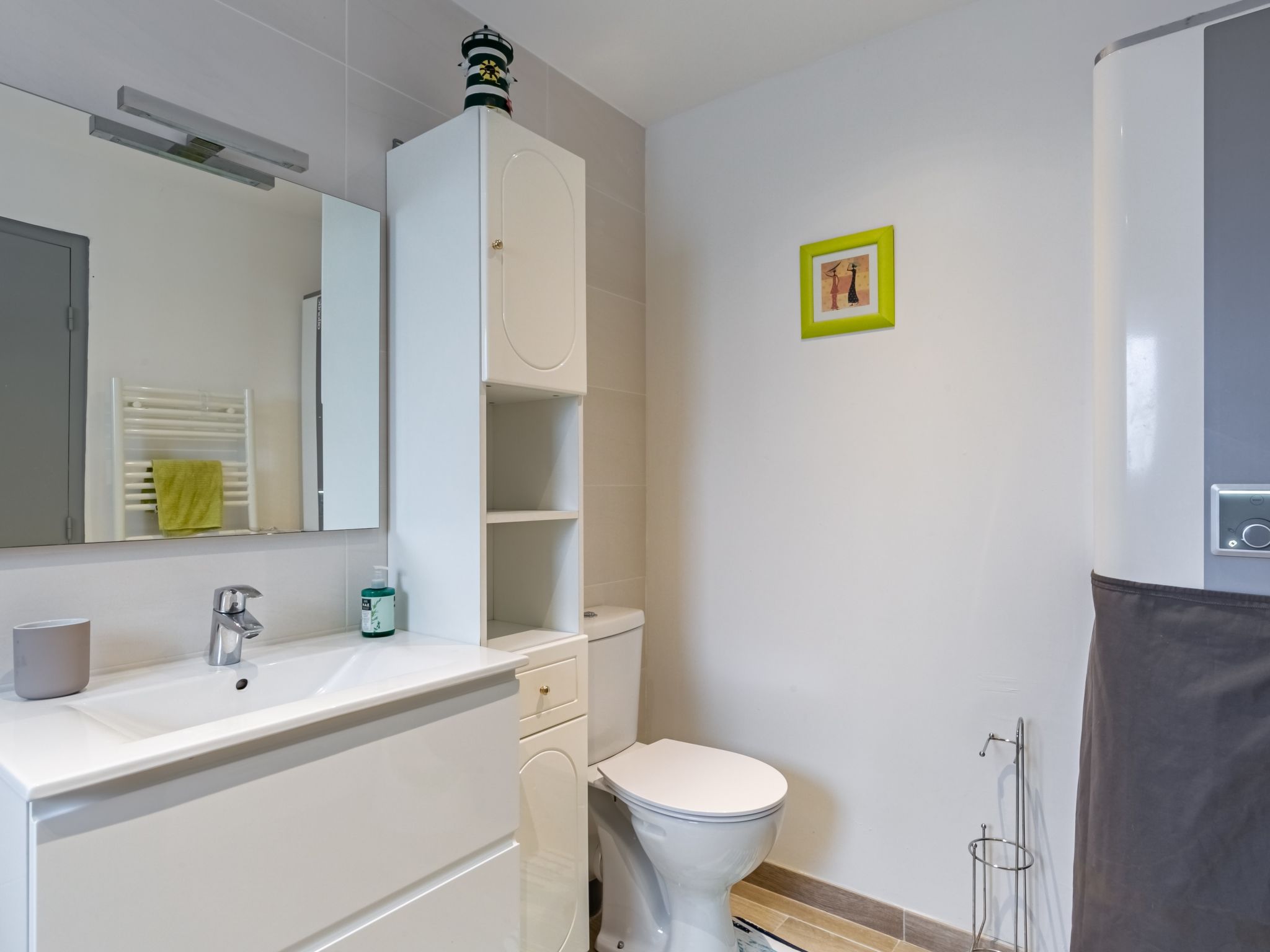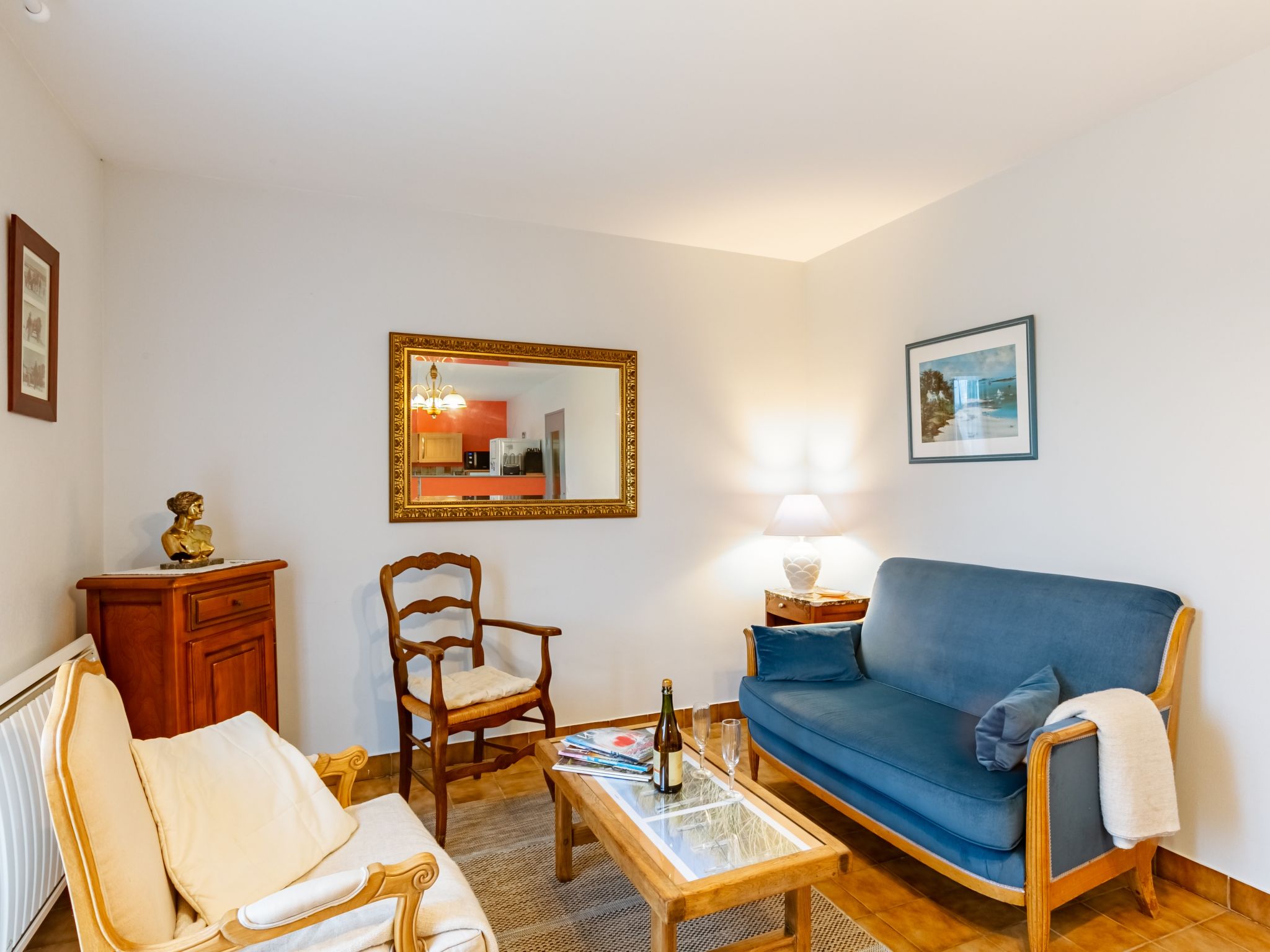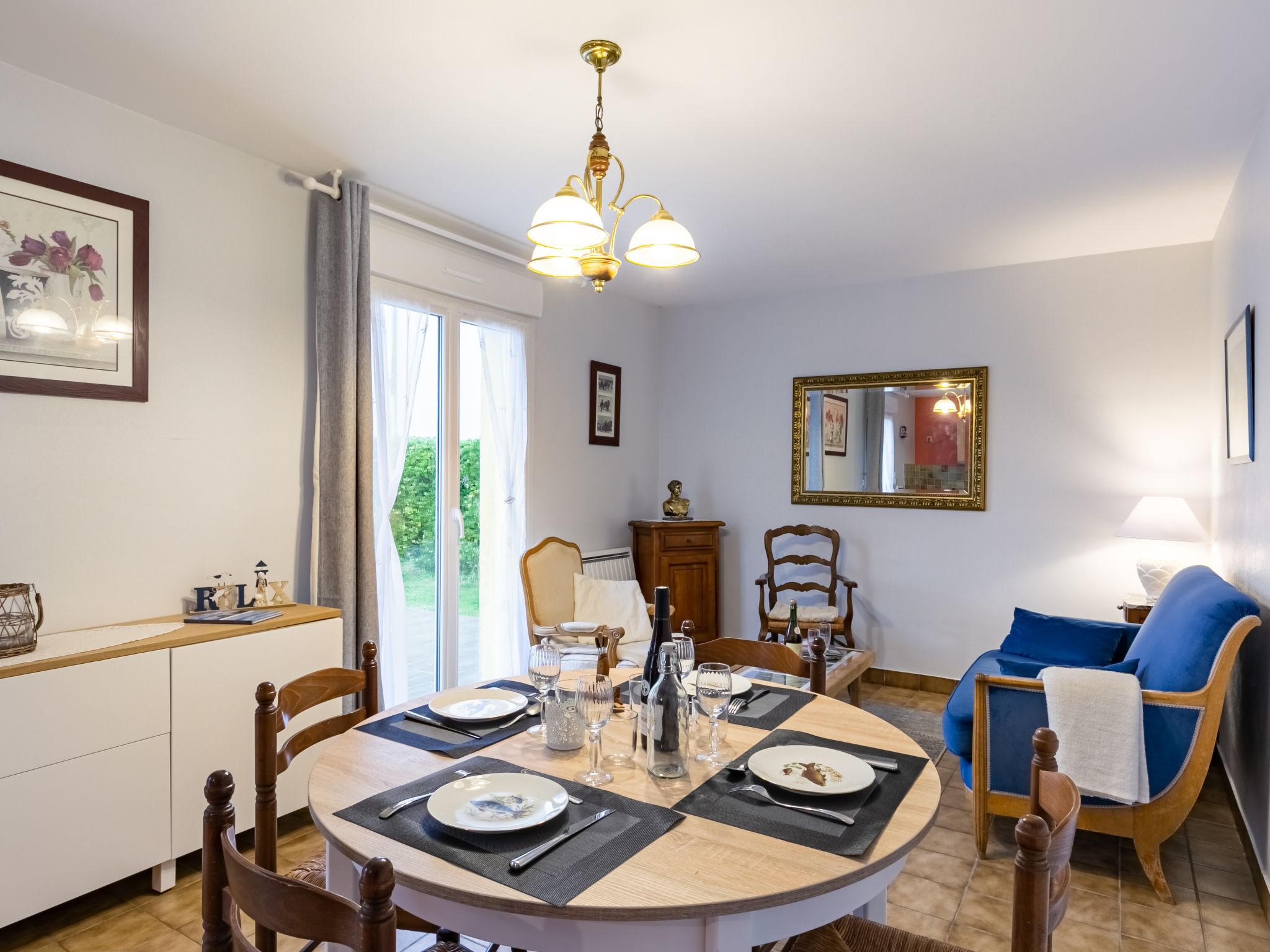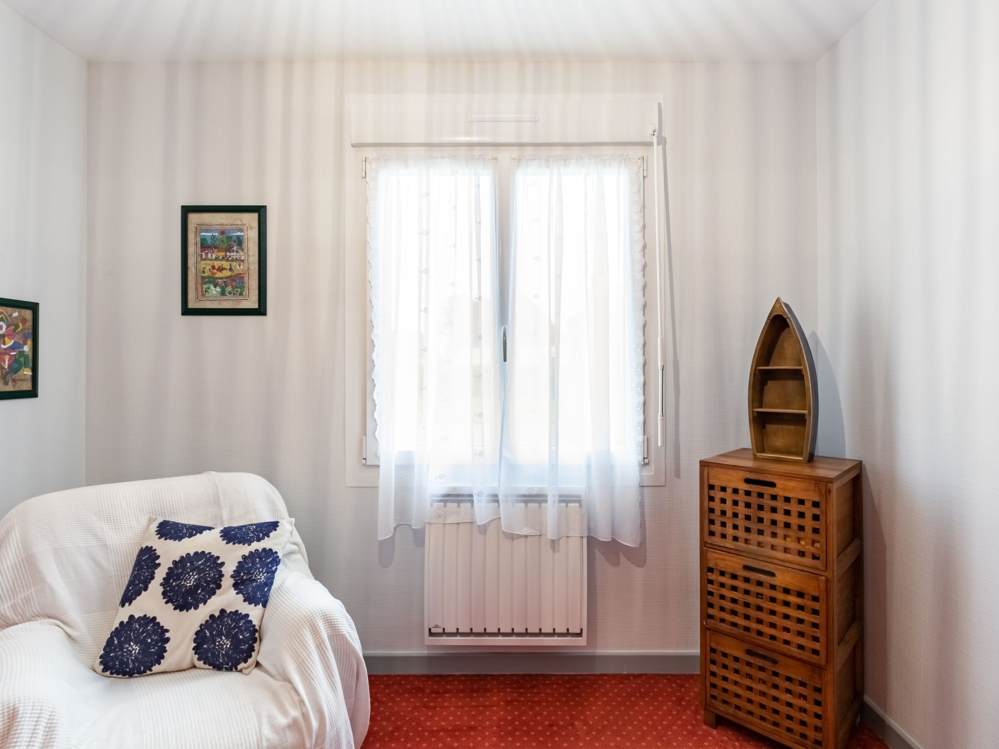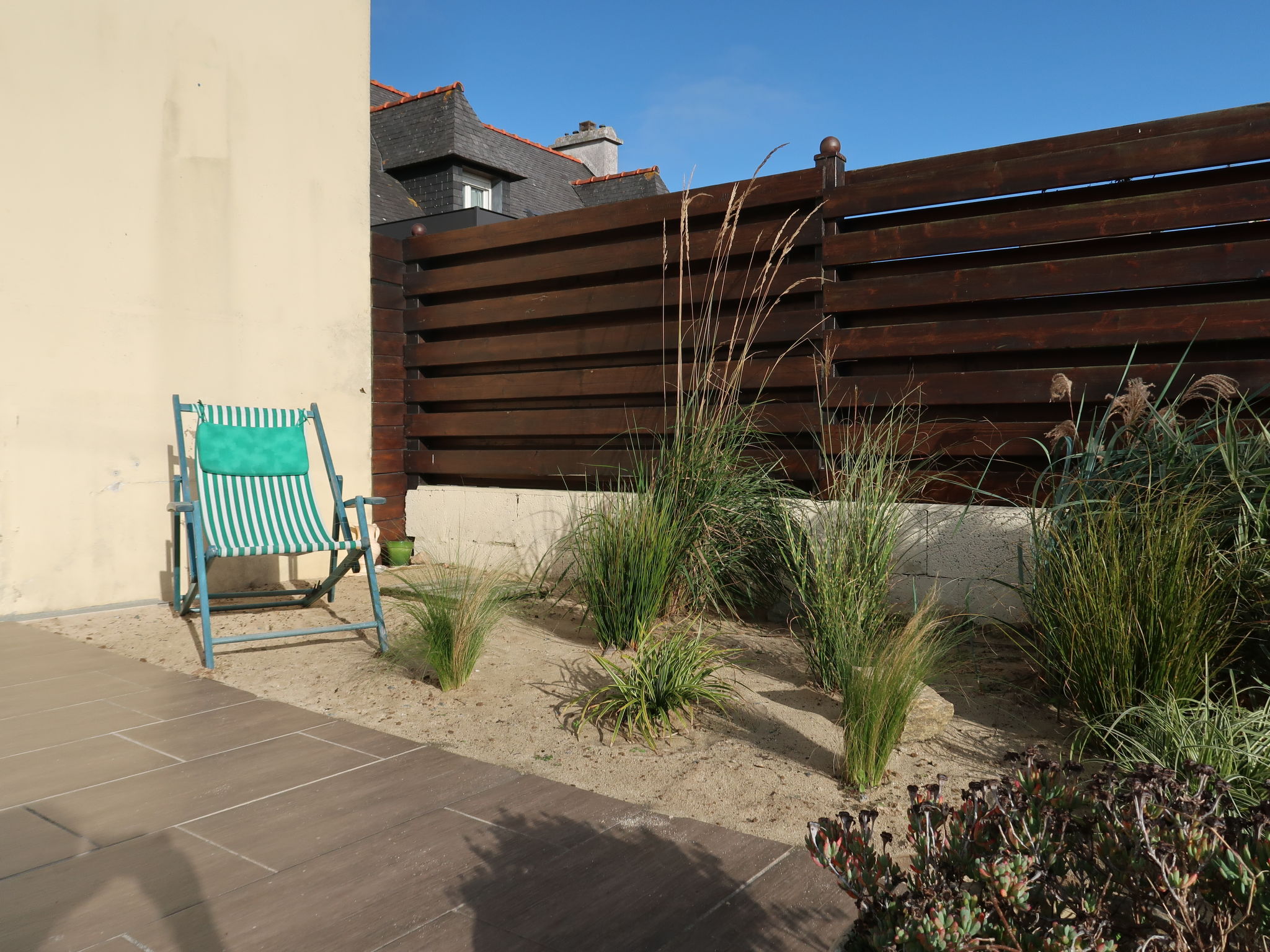 3-Zimmer-Haus 60 m2 auf 2 Stockwerken, Südwestlage. Geschmackvoll eingerichtet: Wohn-/Esszimmer mit Esstisch, Digital-TV, Internationale TV-Sender und Radio. Ausgang zum Garten, zur Terrasse. Offene Küche (3 Induktionskochplatten, Toaster, Wasserkocher, Mikrowelle, elektrische Kaffeemaschine). Ausgang zur Terrasse. Dusche/WC. E-Heizung. Obergeschoss: 1 Zimmer mit 1 franz. Bett (140 cm, Länge 190 cm). 1 Zimmer mit 1 Bett (90 cm, Länge 190 cm), 1 Diwanbett (120 cm, Länge 190 cm). Terrasse 24 m2, Südlage und Westlage. Terrassenmöbel, Gartengrill (mobil), Liegestühle (3). Zur Verfügung: Waschmaschine, Bügeleisen, Kinderhochstuhl. Internet (Wireless LAN, gratis). Bitte beachten: Nichtraucher-Haus. Rauchmelder. Inserat einer Privatperson nach Artikel 155, IV, CGI.