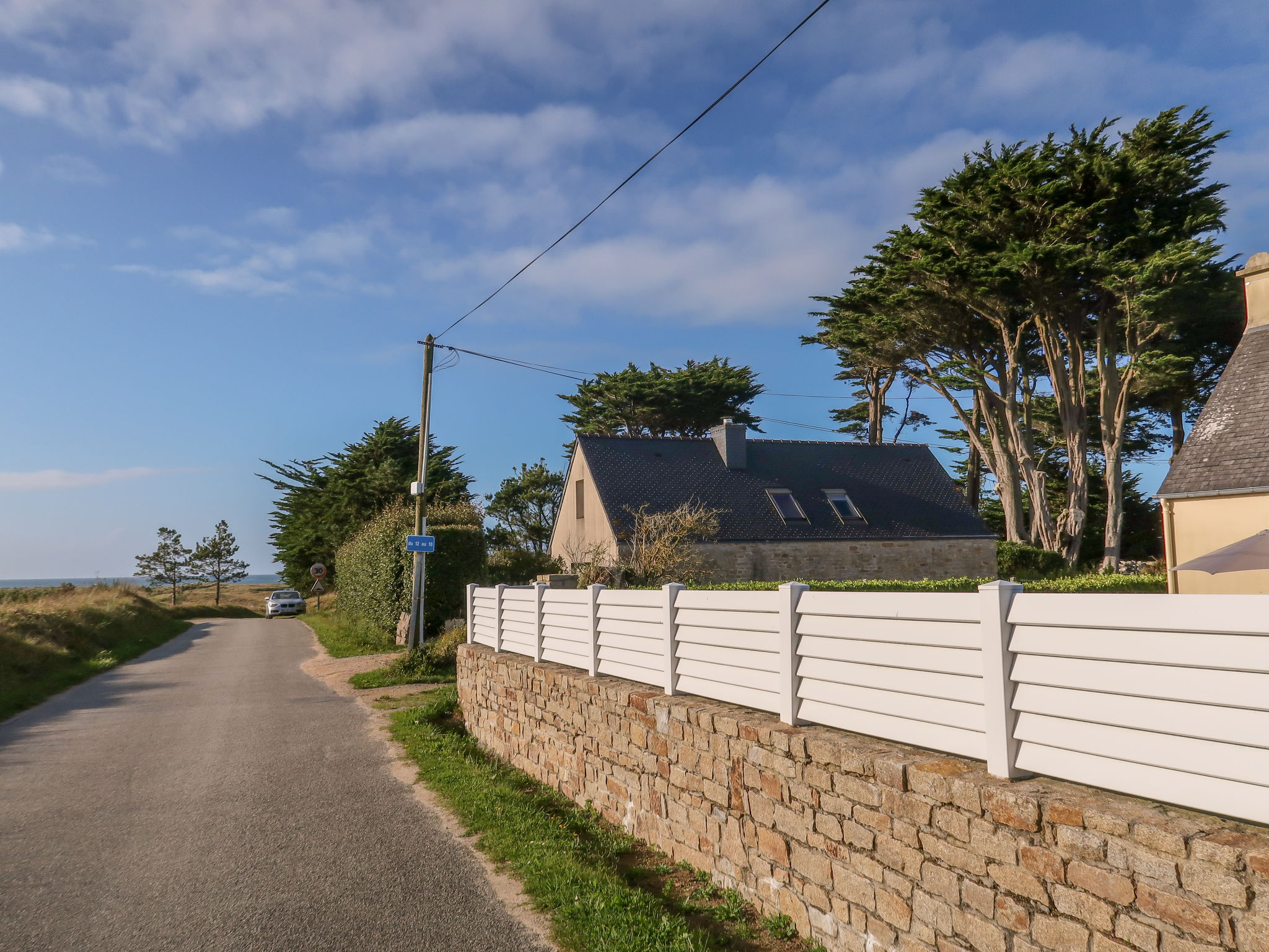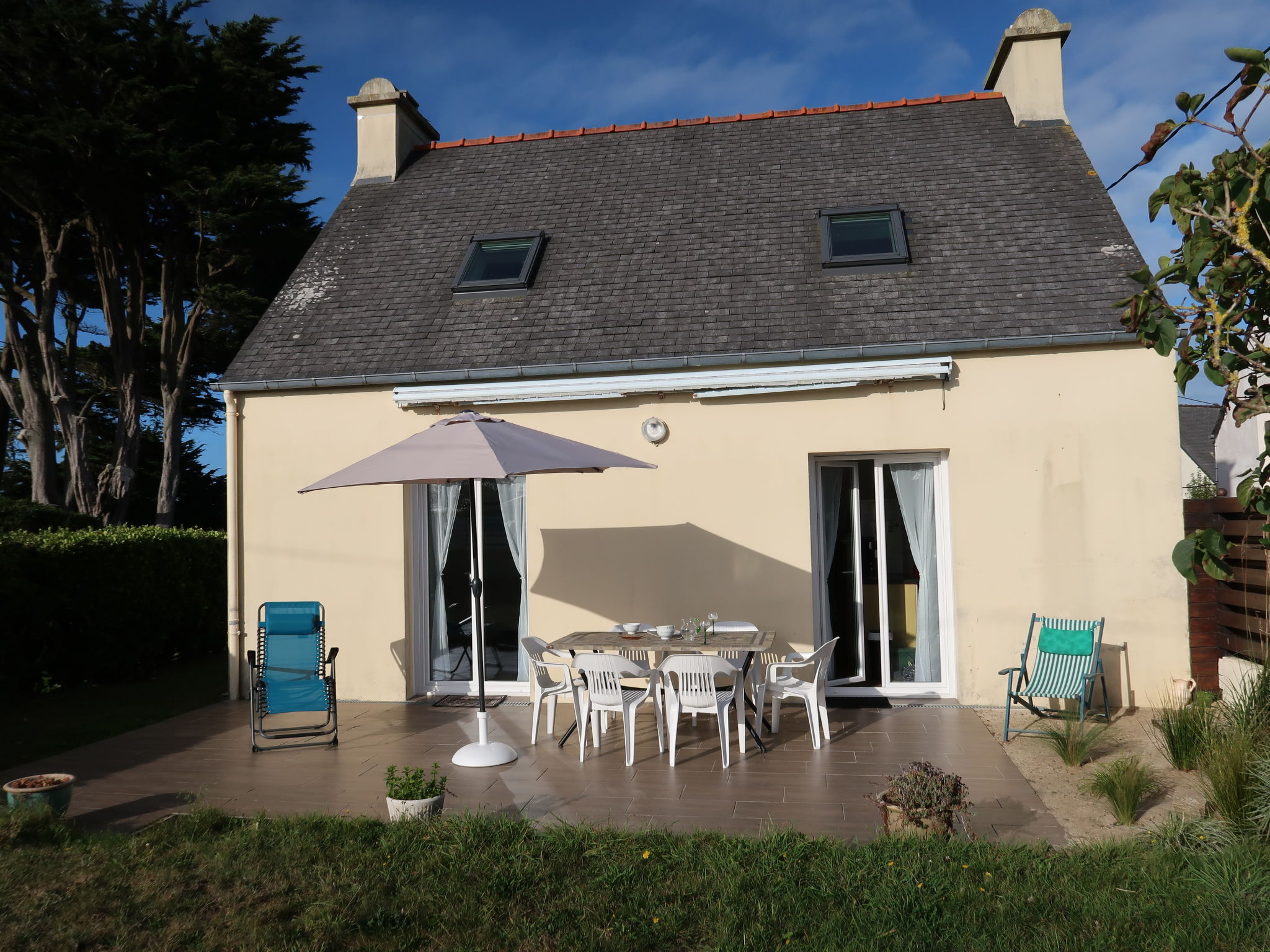 Gemütliches Einfamilienhaus "Les Dunes", auf 2 Stockwerken, Baujahr 1980, renoviert im Jahre 2020. Im Ortsteil Erléac'h, Saint Pabu, in einem Wohnquartier, 400 m vom Meer, 400 m vom Strand, in einer Sackgasse, Richtung Südwesten. Zur Alleinbenutzung: Grundstück 600 m2 mit Rasen und Pflanzen, Parkplatz (für 2 Autos) auf dem Grundstück. Einkaufsgeschäft 3 km, Lebensmittelgeschäft 3 km, Supermarkt 5.5 km, Einkaufszentrum 18 km, Restaurant 3 km, Bäckerei 3 km, Sandstrand "Erléac'h" 400 m. Golfplatz (18 Loch) 18 km, Tennis 500 m, Reitstall 8 km, Wanderwege ab Haus 400 m. Nahe gelegene Sehenswürdigkeiten: Aber Benoît 500 m, La Maison des Abers 600 m, Parc d'attractions La Récré des 3 Curés 15 km.