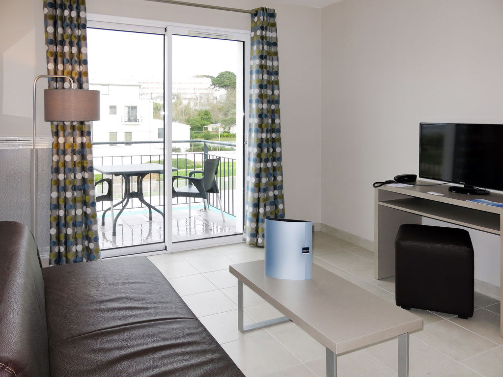 "Thalasso Concarneau (CCN400)", 2-Zimmer-Wohnung 45 m2. Objekt geeignet für 2 Erwachsene + 2 Kinder. Schön und modern eingerichtet: Wohn-/Esszimmer mit Esstisch und Sat-TV. 1 Zimmer mit 1 franz. Bett (160 cm). Eingang mit 1 x 2 Etagenbetten. Kleine, offene Küche (Geschirrspüler, 4 Glaskeramikherd Platten, Toaster, elektrische Kaffeemaschine, Kombinationsmikrowelle). Bad, sep. WC. E-Heizung. Teppichboden. Balkon oder Terrasse. Terrassenmöbel, Balkonmöbel. Sicht auf das Meer. Zur Verfügung: Safe, Bügeleisen. Internet (Wireless LAN, gratis). Parkplatz (1 Auto). Bitte beachten: Nichtraucher-Unterkunft. Maximal 1 Haustier/Hund erlaubt. Rauchmelder, Feuerlöscher. Bedingt durch das Coronavirus (COVID-19) ergreift diese Unterkunft Maßnahmen, um die Sicherheit der Gäste und Mitarbeiter zu gewährleisten. Einige Services und Einrichtungen können daher nur eingeschränkt bzw. teilweise auch gar nicht nutzbar sein.