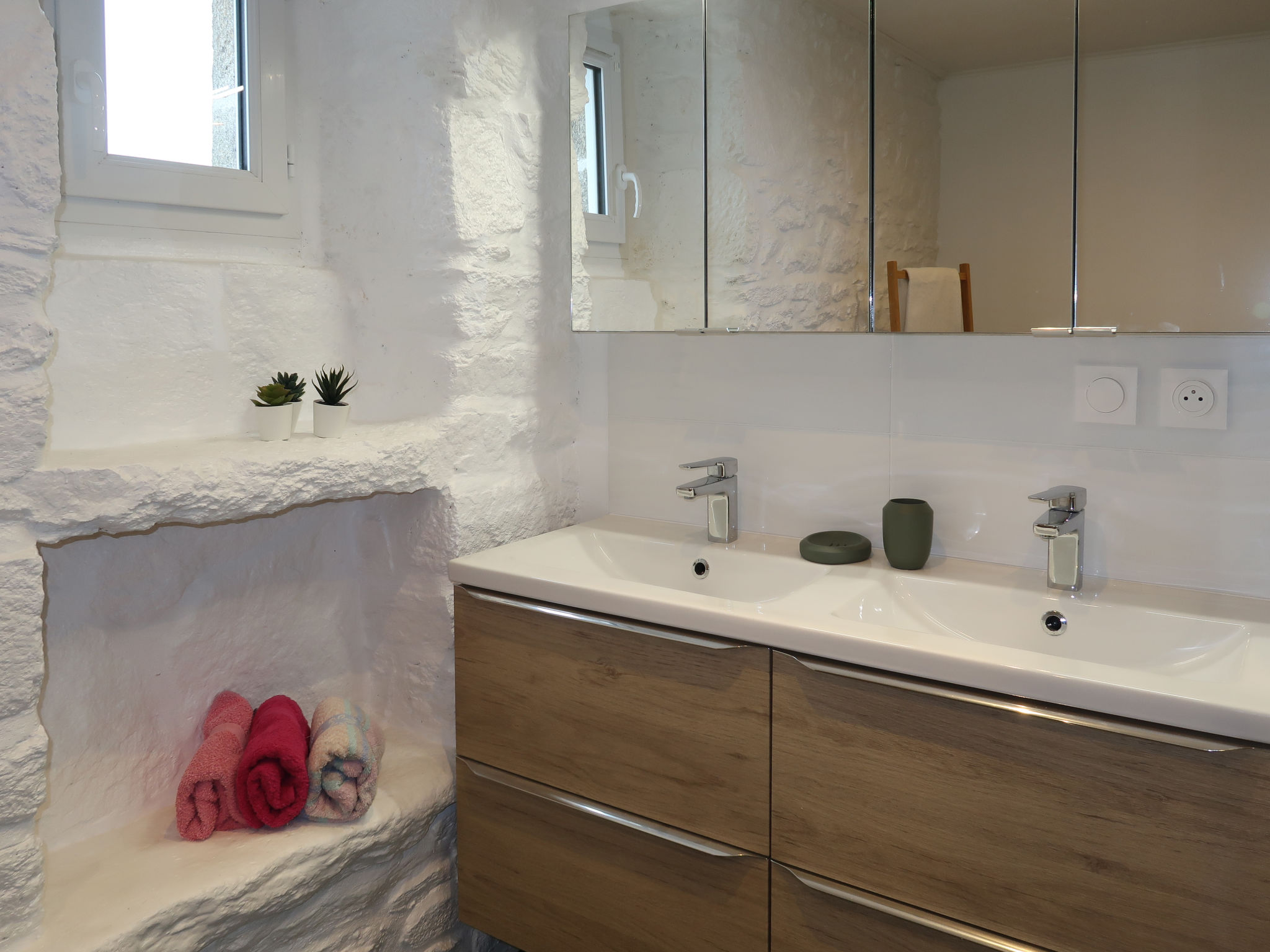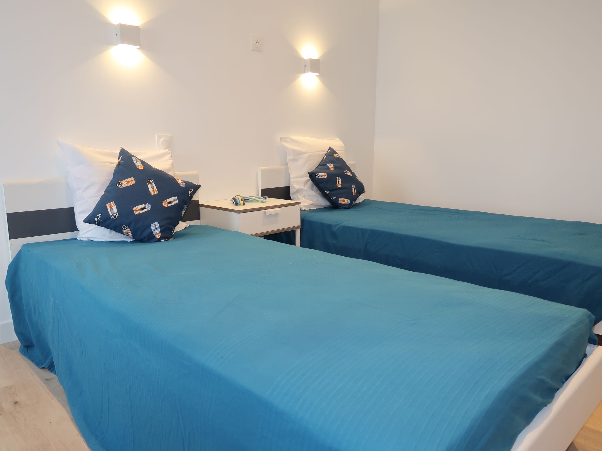 4-Zimmer-Hausteil, ca. 70 m². Wohnraum mit Sitzcouch, Essplatz, Kochzeile (4 Flammen, Backofen, Mikrowelle, Kühl-/Gefrierkombination, Kaffeemaschine, Wasserkocher, Toaster), Ausgang ins Freie. 2 Schlafzimmer, jeweils mit franz. Bett und Ausgang ins Freie. Schlafzimmer mit Etagenbett. Dusche. Sep.WC. Inserat einer Privatperson nach Artikel 155, IV, CGI.
