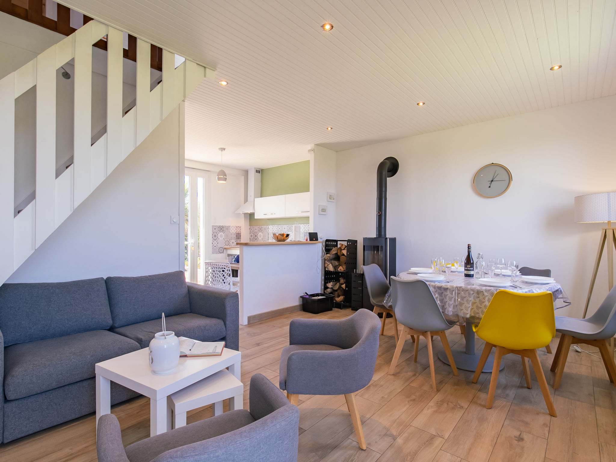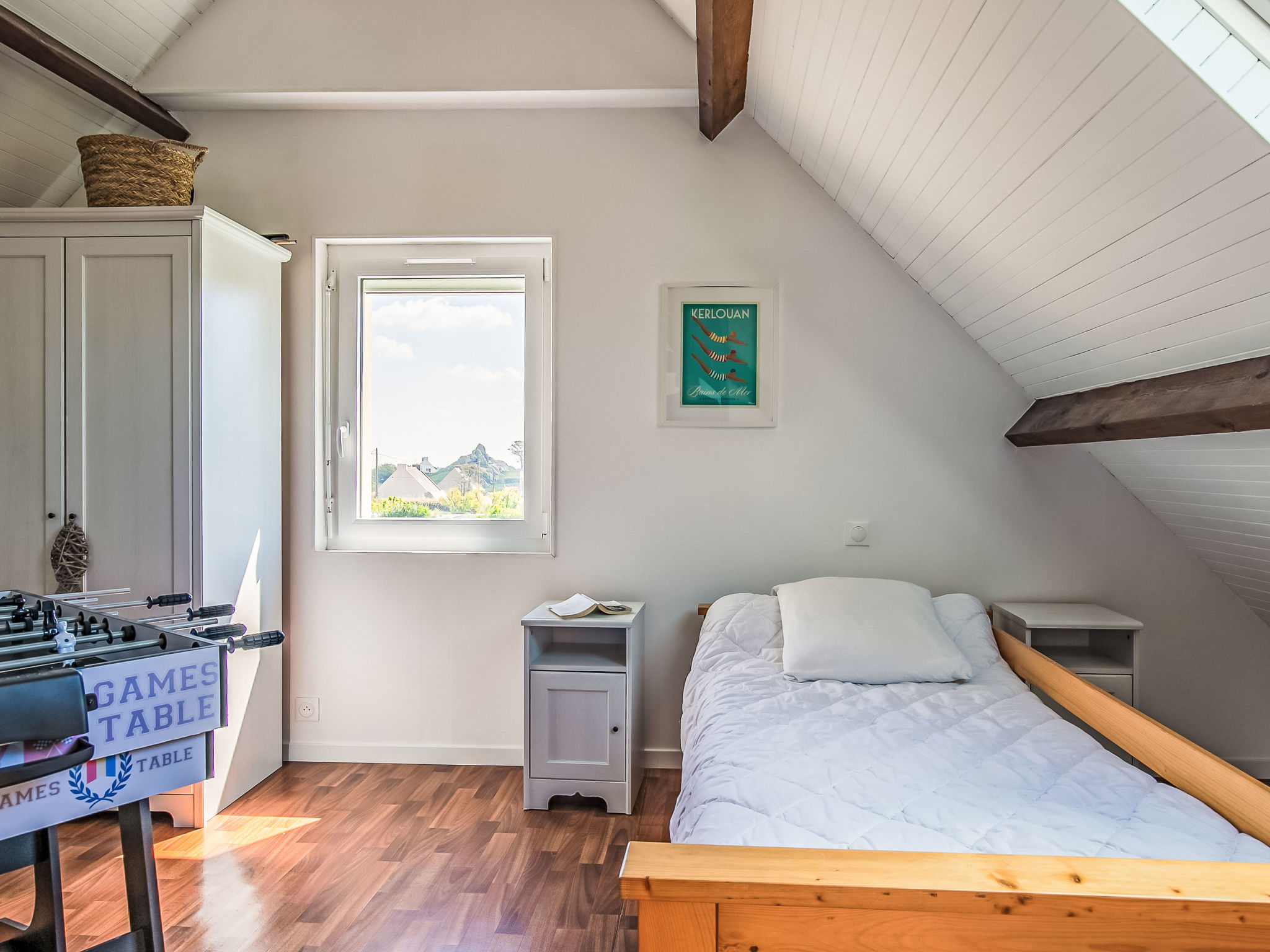 "Le Bruit de la Mer - Trouz ar Mor", 4-Zimmer-Haus 90 m2. Hell, vollständig renoviert im Jahre 2021, komfortabel und geschmackvoll eingerichtet: Wohn-/Esszimmer mit Sat-TV, Internationale TV-Sender und Holzofen. Ausgang zum Garten, zur Terrasse. 2 Zimmer, jedes Zimmer mit 1 franz. Bett (140 cm, Länge 190 cm). Offene Küche (Backofen, Geschirrspüler, 4 Glaskeramikherd Platten, Toaster, Wasserkocher, Mikrowelle, Tiefkühler, elektrische Kaffeemaschine) mit kleinem Esstisch. Ausgang zur Terrasse. Dusche, sep. WC. Obergeschoss: (steile Treppe) abgeschrägtes, offenes Wohn-/Schlafzimmer 20 m2 mit 2 Betten (90 cm, Länge 190 cm), E-Heizung. Parkettböden. Terrasse, Südlage und Westlage. Terrassenmöbel, Gartengrill (mobil), Liegestühle (2), Abstellkammer. Zur Verfügung: Waschmaschine, Wäschetrockner, Bügeleisen. Internet (Wireless LAN, gratis). Bitte beachten: Nichtraucher-Haus. 1 Haustier/Hund erlaubt. Rauchmelder. Inserat einer Privatperson nach Artikel 155, IV, CGI.