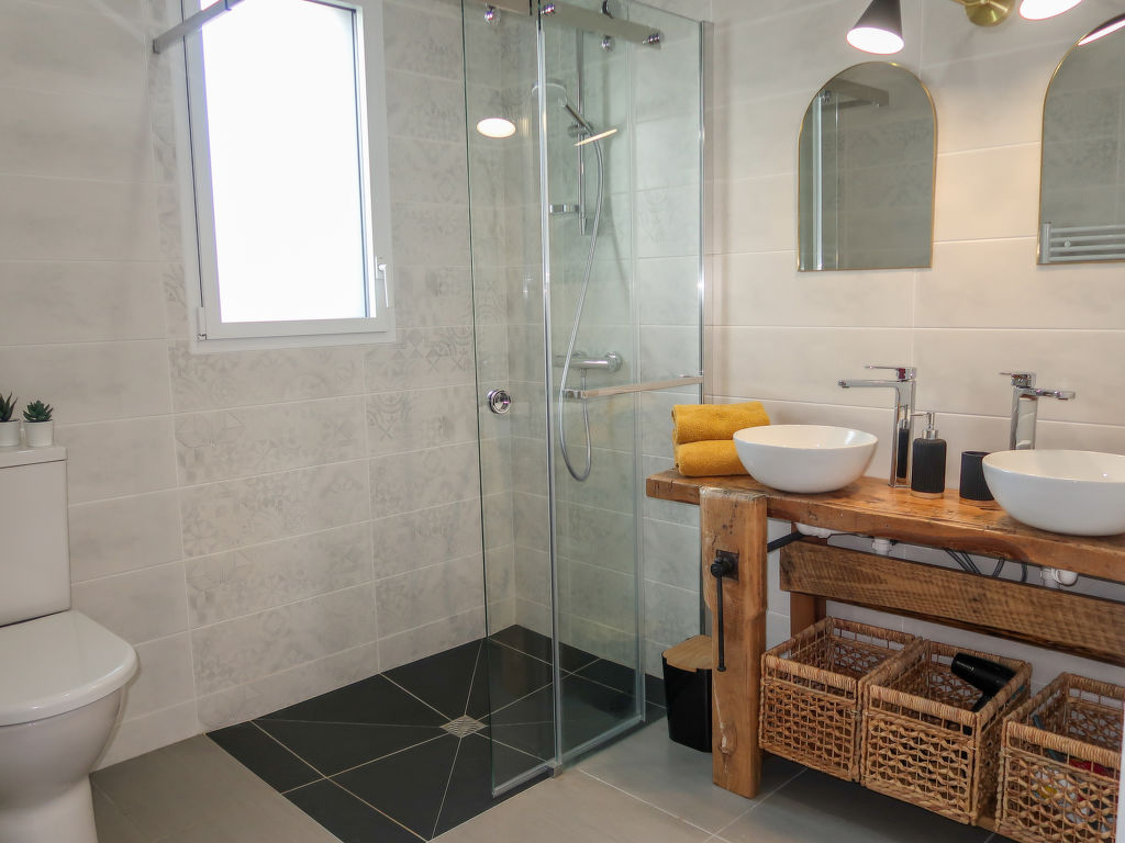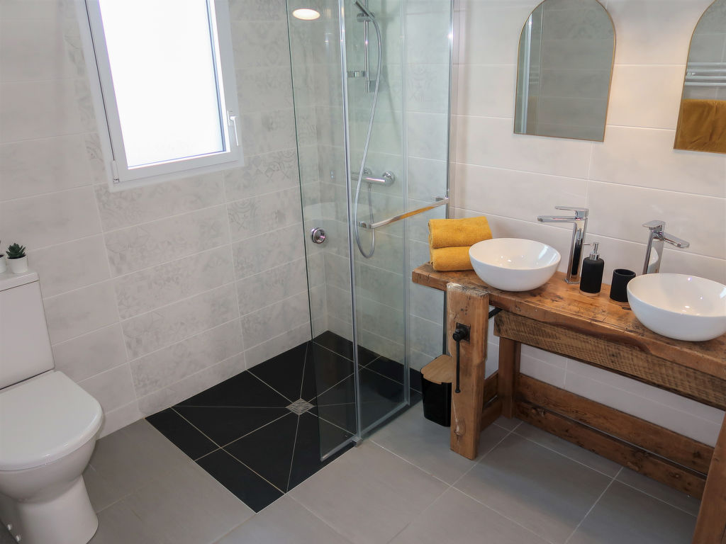 "Les Lagons du Lividic", 5-Zimmer-Haus 117 m2. Modern und geschmackvoll eingerichtet: grosses Wohn-/Esszimmer 53 m2 mit TV (Flachbildschirm). Ausgang zur Terrasse, zum Schwimmbad. 1 Zimmer mit 1 franz. Bett (160 cm, Länge 200 cm), elektrischem Rollladen. Ausgang zur Terrasse. 1 Zimmer mit 1 x 2 Etagenbetten (90 cm, Länge 200 cm), elektrischem Rollladen mit Dusche/WC und Doppelwaschbecken. 1 Zimmer mit 1 franz. Bett (140 cm, Länge 190 cm), elektrischem Rollladen. Ausgang zur Terrasse. 1 Zimmer mit 2 Betten (80 cm, Länge 200 cm), elektrischem Rollladen mit sep. WC, Dusche und Doppelwaschbecken. Grosse, offene Küche (Backofen, Geschirrspüler, 3 Induktionskochplatten, Toaster, Wasserkocher, Tiefkühler, elektrische Kaffeemaschine). G-Heizung. Grosse Terrasse 100 m2, Südlage, Rasen. Terrassenmöbel, Gartengrill (mobil), Liegestühle (8). Zur Verfügung: Waschmaschine, Wäschetrockner, Haartrockner. Internet (Wireless LAN, gratis). Bitte beachten: Nichtraucher-Haus. 1 Haustier/Hund erlaubt. Rauchmelder, Feuerlöscher. Das Schlafzimmer mit dem Bett 160x200 und die Dusche/Wc in diesem Teil des Hauses sind für Rollstuhlfahrer geeignet. Inserat einer Privatperson nach Artikel 155, IV, CGI.