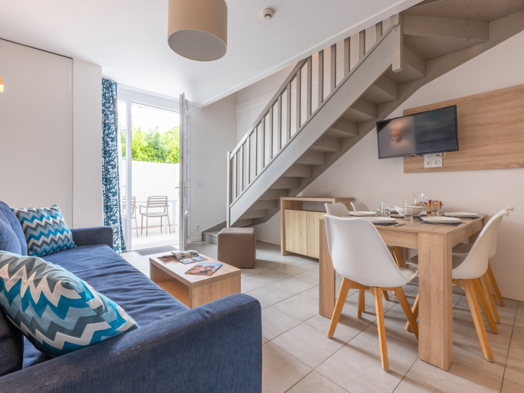 Ferienanlage "Rêve d'Ile", Baujahr 2018. 87 Wohnungen in der Residenz. 150 m vom Zentrum von Rivedoux, 3.5 km vom Zentrum von Sainte-Marie-en-Ré, 14 km vom Zentrum von La Rochelle, 300 m vom Meer. Zur Mitbenutzung: Grundstück 4'000 m2 mit Pflanzen und Bäumen, Schwimmbad beheizt, eingezäunt (15 x 7 m, 160 cm tief, saisonale Verfügbarkeit: 15.Apr.-15.Sep.). Kinderbecken, Terrasse. In der Anlage: Empfang, Frühstücksraum, Sauna (extra). Fitnessraum (extra). Dampfbad (extra). Tischtennis, Einstellraum für Fahrräder, Waschmaschine, Wäschetrockner (zur Mitbenutzung, extra), Fahrradverleih. Frühstück möglich (extra). Fussweg bis zum Haus. Parkplatz auf dem Grundstück. Einkaufsgeschäft, Restaurant 300 m. Bitte beachten: autofreie Ferienanlage. Das Foto ist nur ein Wohnungsbeispiel. Die Mietobjekte können sich in Wohnfläche, Raumaufteilung, Ausstattung und Einrichtung unterscheiden.