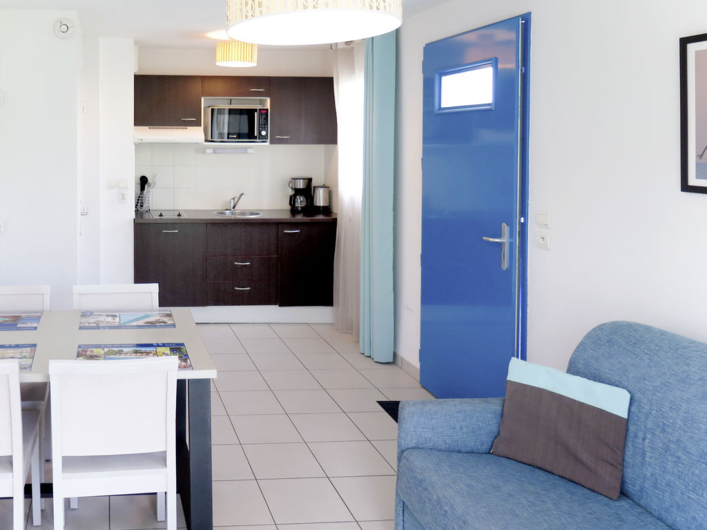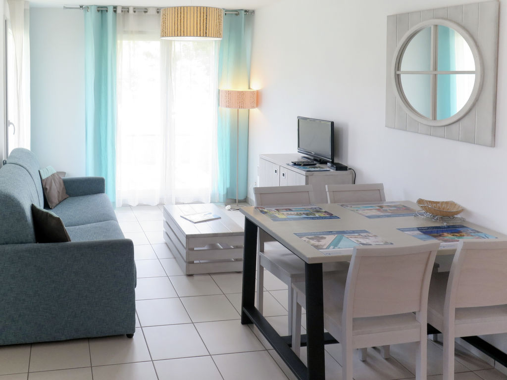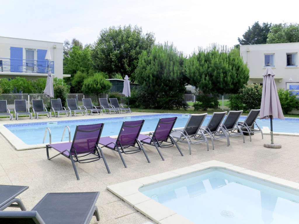 Ferienanlage "Les Carrelets". 7 Häuser im Ferienresort. 71 Wohnungen in der Residenz. 2.5 km vom Zentrum von Saint Palais-sur-Mer, 700 m vom Meer. Zur Mitbenutzung: Grundstück, Schwimmbad beheizt (9 x 4 m, 75 - 130 cm tief, saisonale Verfügbarkeit: 15.Mai.-15.Sep.). Sprudelbad, Boccia, Kinderspielplatz. In der Anlage: Empfang, Sauna (extra). Sprudelbad, Waschmaschine, Wäschetrockner (zur Mitbenutzung, extra). Parkplatz (beschränkte Anzahl). Einkaufsgeschäft 100 m, Supermarkt 2.5 km, Sandstrand 1 km, Felsstrand 700 m. Das Foto ist nur ein Wohnungsbeispiel. Die Mietobjekte können sich in Wohnfläche, Raumaufteilung, Ausstattung und Einrichtung unterscheiden.