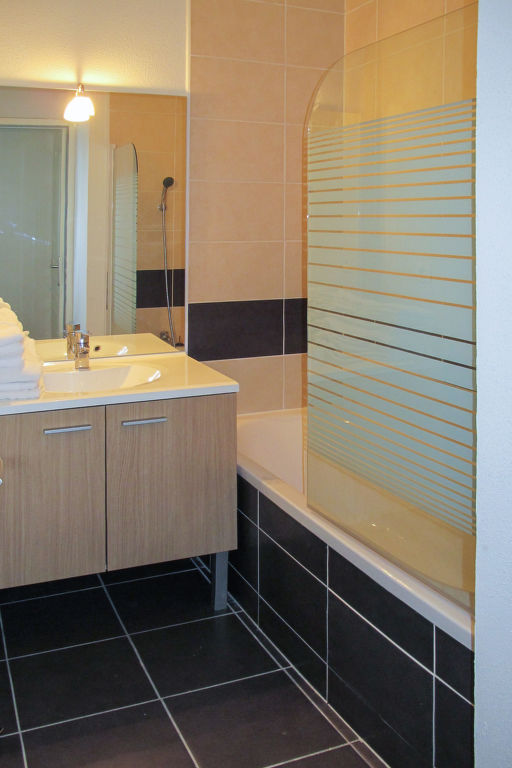 Ferienanlage. 11 Häuser in der Residenz. 37 Wohnungen in der Residenz. 6 km vom Zentrum von Lacanau, 6 km vom Zentrum von Lacanau-Océan, 55 km vom Zentrum von Bordeaux, 7 km vom Meer, 150 m vom See. Zur Mitbenutzung: Grundstück mit Pflanzen und Bäumen, Schwimmbad beheizt (9 x 6 m, 120 cm tief, saisonale Verfügbarkeit: 04.Apr.-30.Sep.). Boccia, Terrasse. In der Anlage: Empfang, Wireless LAN, Sauna, Dampfbad, Waschmaschine (extra), Wäschetrockner (zur Mitbenutzung, extra). Brötchenservice. Parkplatz (beschränkte Anzahl). Supermarkt 6 km, Restaurant 200 m, Sandstrand "Lac de Lacanau/Plage Le Moutchic" 400 m. Golfplatz (18 Loch) 4 km, Reitstall 4 km. Das Foto ist nur ein Wohnungsbeispiel. Die Mietobjekte können sich in Wohnfläche, Raumaufteilung, Ausstattung und Einrichtung unterscheiden. Kein Zutritt für Kinder unter 18 Jahren zu Sauna und Dampfbad.