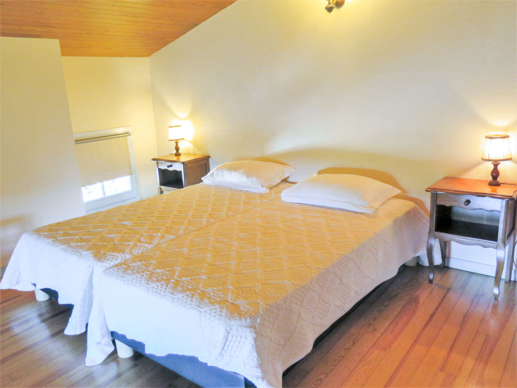 "Le Presbytère", 3-Zimmer-Reihenhaus 98 m2 auf 2 Stockwerken. Schön eingerichtet: Wohn-/Esszimmer mit offenem Kamin (nur Deko), Esstisch, TV, Flachbildschirm und DVD. Ausgang zum Garten. 1 Zimmer mit 1 franz. Bett (140 cm, Länge 190 cm). Ausgang zum Gartensitzplatz. Offene Küche (Backofen, Geschirrspüler, 4 Glaskeramikherd Platten, Toaster, Wasserkocher, Mikrowelle, Tiefkühler, elektrische Kaffeemaschine). Dusche, sep. WC. Obergeschoss: abgeschrägte, offene Galerie mit 1 franz. Bett (140 cm, Länge 190 cm). 1 abgeschrägtes Zimmer mit 2 Betten (90 cm, Länge 190 cm). Dusche/WC. E-Heizung. Grosse Terrasse, Westlage, kleine Terrasse, Nordlage. Terrassenmöbel, Gartengrill (mobil), Liegestühle (6). Zur Verfügung: Waschmaschine, Bügeleisen, Kinderhochstuhl, Haartrockner. Internet (Wireless LAN, gratis). Bitte beachten: Nichtraucher-Haus. Maximal 2 Haustiere/Hunde erlaubt. Rauchmelder.