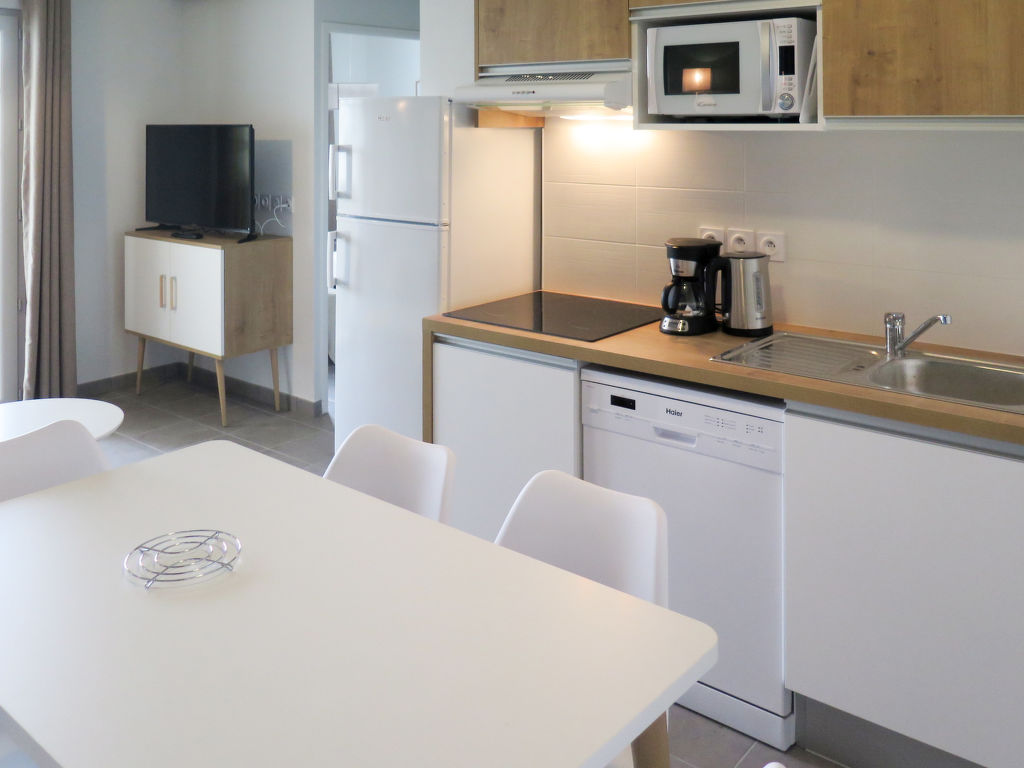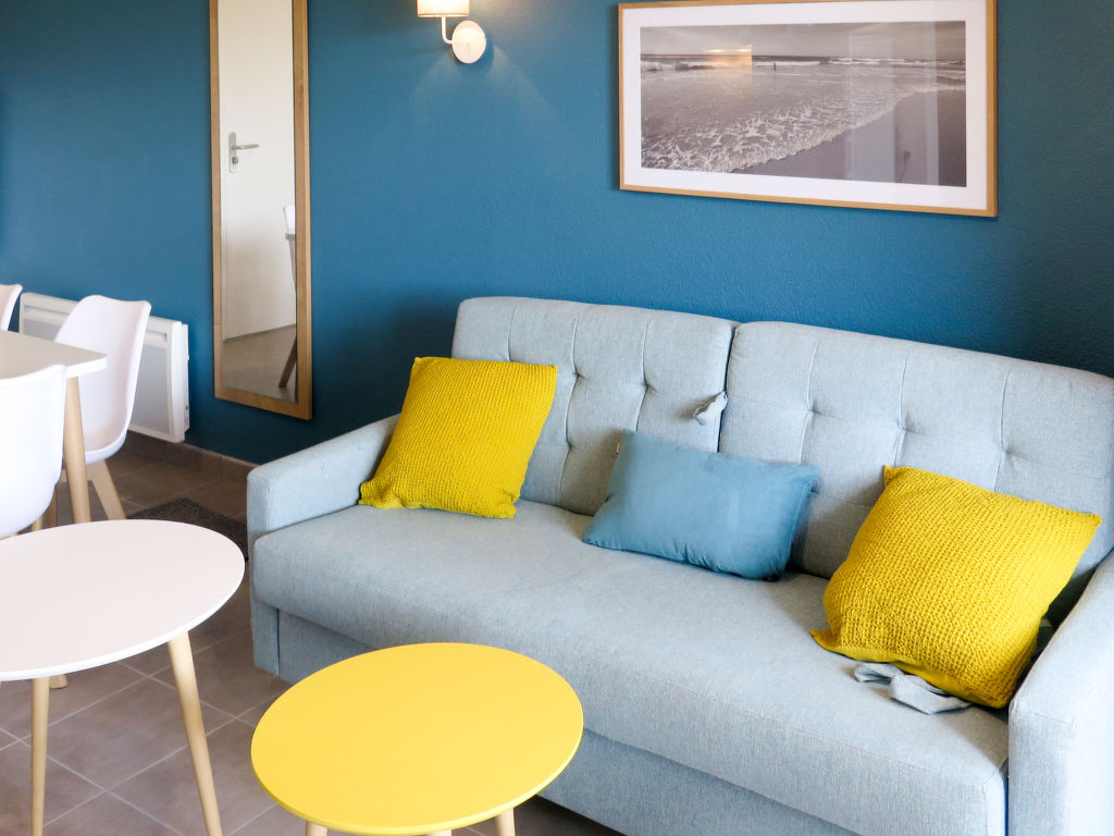 Kleine Ferienanlage "Le Marché de la Plage", auf 4 Stockwerken, Baujahr 2017. 37 Wohnungen in der Residenz. Im Ortszentrum von Mimizan-Plage, 6 km vom Zentrum von Mimizan-Bourg, 70 km vom Zentrum von Arcachon, 250 m vom Meer. Zur Mitbenutzung: Schwimmbad beheizt, eingezäunt (9 x 4 m, 140 cm tief, saisonale Verfügbarkeit: 25.Apr.-26.Sep.) mit Innentreppe. Aussendusche, Sprudelbad, Terrasse. In der Anlage: Empfang, Internetzugang, Wireless LAN, Fitnessraum, Fahrstuhl, Einstellraum für Fahrräder, Waschmaschine, Wäschetrockner (zur Mitbenutzung, extra). Frühstück möglich (extra). Gemeinschaftsgarage (extra), öffentliche Parkplätze. Einkaufsgeschäft 50 m, Supermarkt 250 m, Restaurant 50 m, Sandstrand 250 m. Das Foto ist nur ein Wohnungsbeispiel. Die Mietobjekte können sich in Wohnfläche, Raumaufteilung, Ausstattung und Einrichtung unterscheiden.