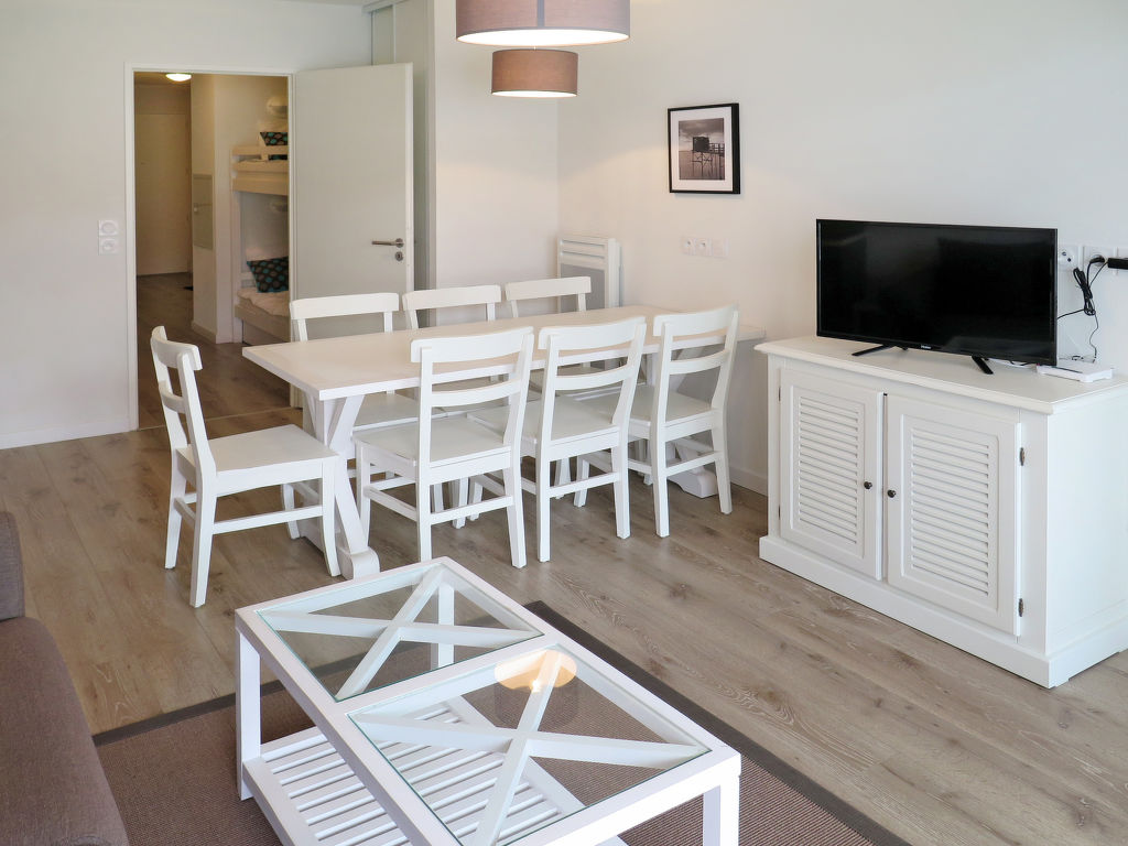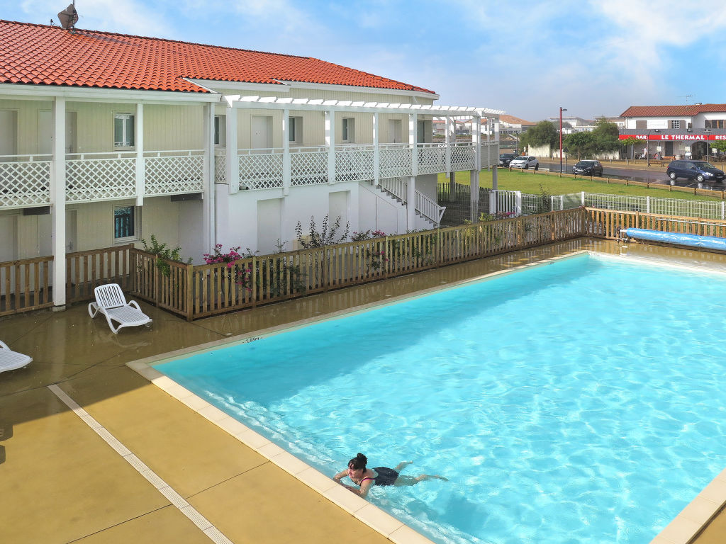 Ferienanlage "Les Balcons des Pêcheurs", auf 3 Stockwerken. 5 Häuser in der Residenz. 65 Wohnungen in der Residenz. 250 m vom Zentrum von Mimizan-Plage, 6 km vom Zentrum von Mimizan-Bourg, 70 km vom Zentrum von Arcachon, 300 m vom Meer, 300 m vom Strand, 50 m vom Fluss. Zur Mitbenutzung: Schwimmbad, Hallenbad beheizt (150 - 155 cm tief, saisonale Verfügbarkeit: 21.Mar.-07.Nov.). Kinderbecken. In der Anlage: Empfang, Wireless LAN, Sauna, Fitnessraum, Dampfbad, Sprudelbad, Einstellraum für Fahrräder, Waschmaschine, Wäschetrockner (zur Mitbenutzung, extra). Parkplatz auf dem Grundstück. Supermarkt 500 m, Sandstrand "Courant" 50 m. Das Foto ist nur ein Wohnungsbeispiel. Die Mietobjekte können sich in Wohnfläche, Raumaufteilung, Ausstattung und Einrichtung unterscheiden.