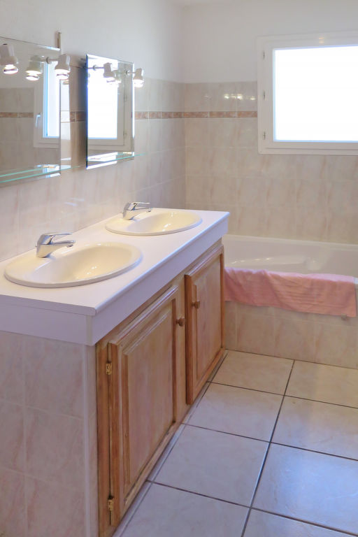 "Les Perlières (BPL440)", 4-Zimmer-Haus 90 m2. Hell, schön und gemütlich eingerichtet: Wohn-/Esszimmer mit offenem Kamin (nur Deko), Esstisch und Sat-TV (Flachbildschirm), Stereoanlage und DVD. Ausgang zur Terrasse. 2 Zimmer, jedes Zimmer mit 1 franz. Bett (140 cm, Länge 190 cm). 1 Zimmer mit 1 franz. Bett (160 cm, Länge 200 cm). Offene Küche (Backofen, Geschirrspüler, 3 Glaskeramikherd Platten, Toaster, Wasserkocher, Mikrowelle, Tiefkühler, elektrische Kaffeemaschine) mit Bar. Ausgang zur Terrasse. Bad/Dusche, sep. WC, Doppelwaschbecken. E-Heizung. 2 Terrassen. Terrassenmöbel, Gartengrill, Liegestühle (2), Abstellkammer. Zur Verfügung: Waschmaschine, Bügeleisen, Kinderhochstuhl, Babybett (extra). Internet (Wireless LAN, gratis). Bitte beachten: Nichtraucher-Haus. Rauchmelder.