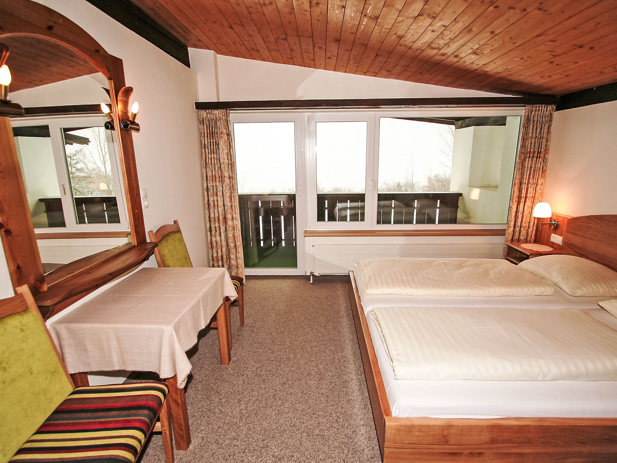 Kleine, alleinstehende Feriensiedlung. Oberhalb von Telfs, ruhige, erhöhte Lage. Zur Mitbenutzung: Grundstück 2'000 m2, Garten, Hallenbad beheizt (10 x 4 m, 130 cm tief). In der Anlage: Sauna, Solarium (extra). Einstellraum für Fahrräder, Skiraum, Waschmaschine, Wäschetrockner (zur Mitbenutzung, extra). Parkplatz, Gemeinschaftsgarage. Lebensmittelgeschäft 500 m, Bushaltestelle 400 m. Golfplatz 6 km, Tennis 1 km, Skilift 12 km, Skibushaltestelle 1 km, Skischule 12 km, Langlaufloipe 7 km, Eisfeld 2 km. Nahe gelegene Sehenswürdigkeiten: Outdoor Park 'Area 47' 20 km. Bekannte Skigebiete sind gut erreichbar: Seefeld 12 km, Hochötz 25 km. Bitte beachten: Ferienwohnung Ref. AT6410.305 befindet sich auf dem gleichen Grundstück. Hallenbad, Sauna und Solarium befinden sich im Haupthaus. Die Bettwäsche ist pro Person und pro Wechsel bezahlbar (bitte bei der Buchung bestellen).