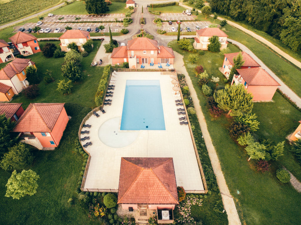 Residenz "Le Domaine de Claire Rive", auf 2 Stockwerken, umgeben von Wiesen. 28 Häuser im Ferienresort. 108 Wohnungen in der Residenz. Im Weiler Balat-Grand, 1.2 km vom Zentrum von Prayssac, 22 km vom Zentrum von Fumel, 28 km vom Zentrum von Cahors, 100 m vom Fluss. Zur Mitbenutzung: naturbelassenes Grundstück 7 ha (eingezäunt) mit Pflanzen, Schwimmbad beheizt, eingezäunt (20 x 11 m, 60 - 140 cm tief, saisonale Verfügbarkeit: 21.Mai.-24.Sep.). WC im Poolbereich, Kinderbecken, Aussendusche, Tischtennis, Boccia, Kinderspielplatz. In der Anlage: Empfang, Wireless LAN, Waschmaschine, Wäschetrockner (zur Mitbenutzung, extra). Parkplatz (beschränkte Anzahl) auf dem Grundstück. Einkaufsgeschäft 1.2 km, Supermarkt 1.2 km. Bitte beachten: autofreie Ferienanlage. Die Residenz wird durch elektrische Tore geschlossen.