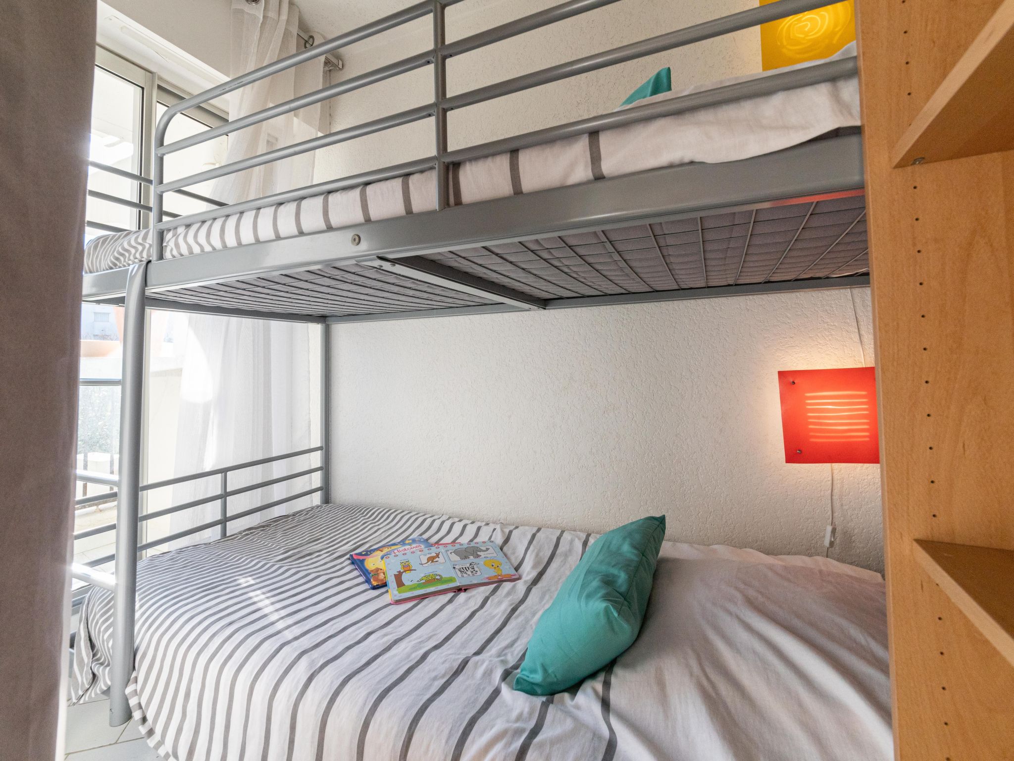 "Ulysse plage 1", 1-Zimmer-Wohnung 30 m2 im 1. Stock. Wohn-/Esszimmer mit 1 Doppeldiwanbett (140 cm, Länge 190 cm), TV (Flachbildschirm). Kabine mit 1 x 2 Etagenbetten (90 cm, Länge 190 cm). Wohnküche (Backofen, 3 Induktionskochplatten, Toaster, Wasserkocher, Mikrowelle, elektrische Kaffeemaschine, Kapseln für die Kaffeemaschine (NESPRESSO) extra). Bad, sep. WC. E-Heizung. Terrasse 7 m2, Südlage. Terrassenmöbel. Sicht auf den Garten. Zur Verfügung: Waschmaschine. Internet (Wireless LAN, extra). Parkplatz Nr. 508 (1 Auto). Bitte beachten: Maximal 1 kleines Haustier/Hund erlaubt. Rauchmelder. Inserat einer Privatperson nach Artikel 155, IV, CGI.