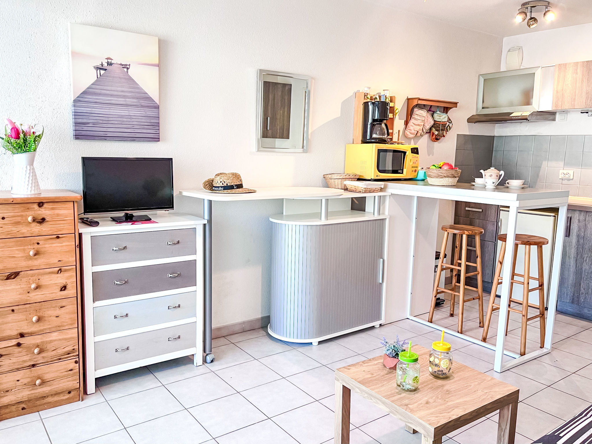 1-Zimmer-Studio 26 m2 im 3. Stock. Renoviert im Jahre 2016, komfortabel und schön eingerichtet: Wohnzimmer mit 1 Ausziehbett (2 Pers. 2 x 90 cm, Länge 190 cm), TV (Flachbildschirm), E-Heizofen. Ausgang zur Loggia. Offene Kabine mit 1 Doppeldiwanbett (1 x 140 cm, Länge 190 cm). Offene Küche (2 Kochplatten, Mini-Backofen, Mikrowelle). Dusche, sep. WC. Terrassenmöbel, Balkonmöbel, Loggia. Seitliche Sicht auf das Meer. Zur Verfügung: Waschmaschine. Internet (Wireless LAN, extra). Bitte beachten: geeignet für Familien. Kühlschrank ohne Gefrierfach, Nichtraucher-Unterkunft, kein Parkplatz. Rauchmelder. Inserat einer Privatperson nach Artikel 155, IV, CGI.
