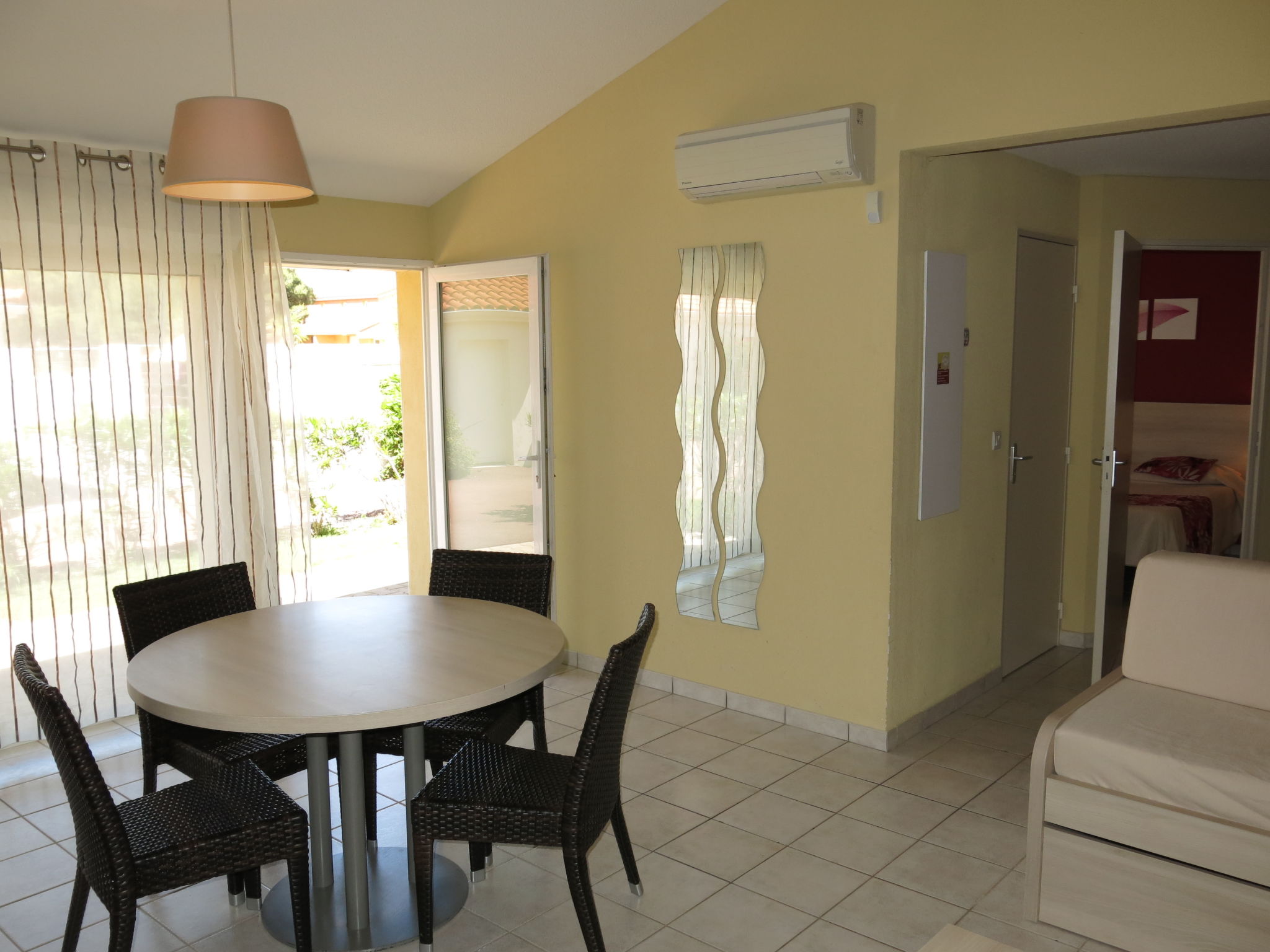 "Le Mas de Torreilles (TRR103)", 3-Zimmer-Reihenhaus 72 m2 auf 2 Stockwerken. Objekt geeignet für 6 Erwachsene + 2 Kinder. Schön und modern eingerichtet: Wohn-/Schlafzimmer mit 1 Diwanbett (80 cm, Länge 140 cm), 2 Schlafmöglichkeiten, Esstisch, Sat-TV und Klimaanlage. Ausgang zur Terrasse. 1 Zimmer mit 1 franz. Bett (160 cm, Länge 200 cm), Klimaanlage. Offene Küche (Geschirrspüler, 2 Glaskeramikherd Platten, Mikrowelle, Tiefkühler). Dusche/WC. Obergeschoss: 1 abgeschrägtes Zimmer mit 2 Betten (90 cm, Länge 200 cm), Klimaanlage. Offene Schlafnische mit Vorhang, ohne Fenster mit 1 Schlafmöglichkeit. Bad/WC. Terrasse teilweise überdacht, Gartensitzplatz. Terrassenmöbel. Zur Verfügung: Waschmaschine, Safe, Kinderhochstuhl, Babybett (extra). Internet (Wireless LAN, extra). Bitte beachten: Nichtraucher-Unterkunft. Maximal 2 Haustiere/Hunde erlaubt. Rauchmelder, Feuerlöscher. Bedingt durch das Coronavirus (COVID-19) ergreift diese Unterkunft Maßnahmen, um die Sicherheit der Gäste und Mitarbeiter zu gewährleisten. Einige Services und Einrichtungen können daher nur eingeschränkt bzw. teilweise auch gar nicht nutzbar sein. Flexibilität bei der Bettenaufteilung: Es stehen mehr Schlafmöglichkeiten zur Verfügung als die maximal zugelassene Personenzahl, diese darf dennoch nicht überschritten werden.